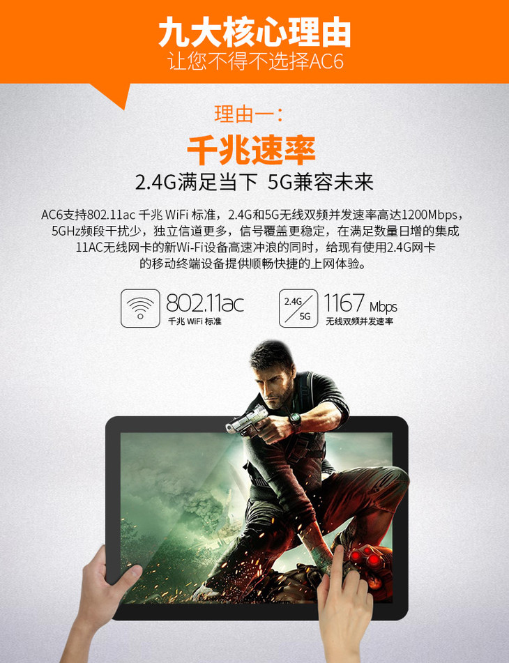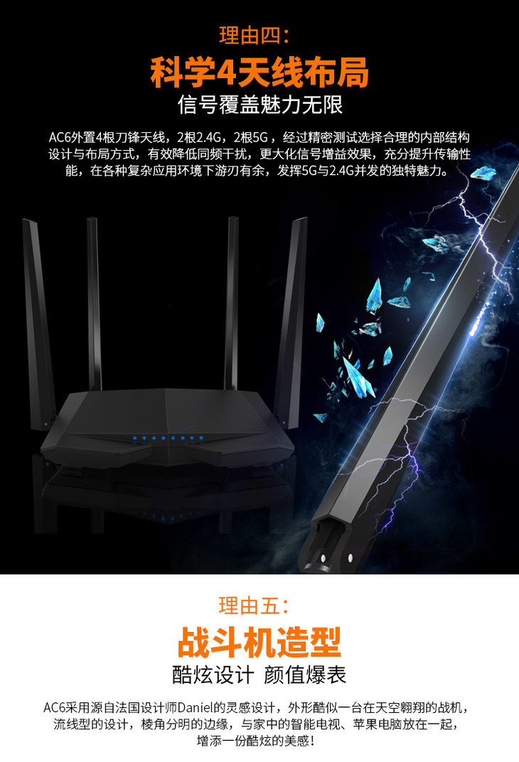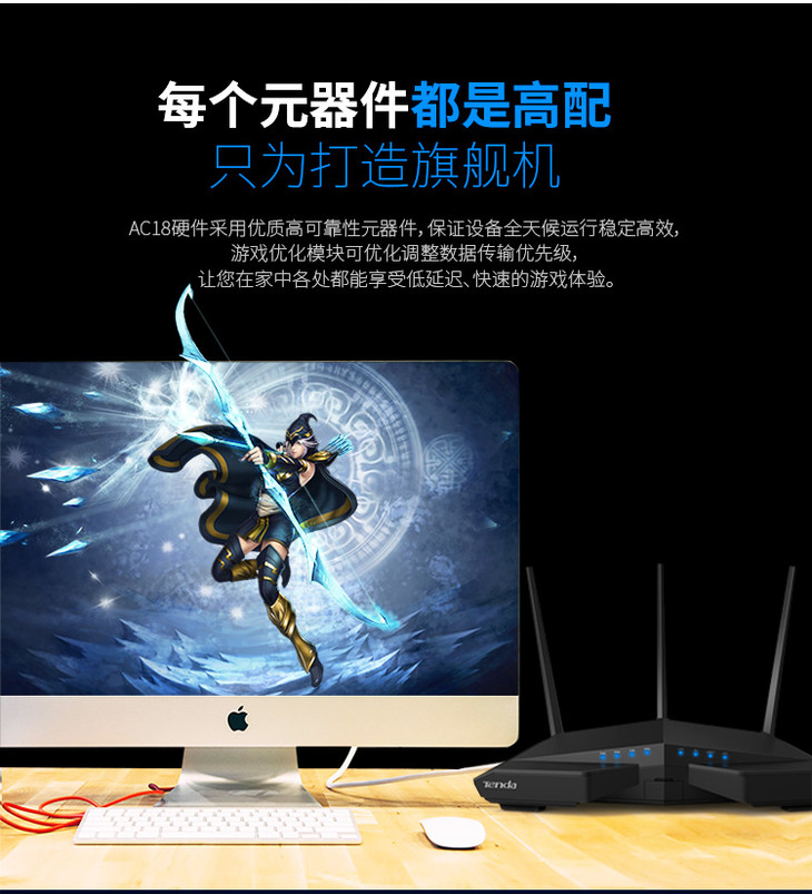 腾达(Tenda)AC18 1900M游戏路由 双千兆路由器 5G双频 有线无线全千兆 WiFi无线
