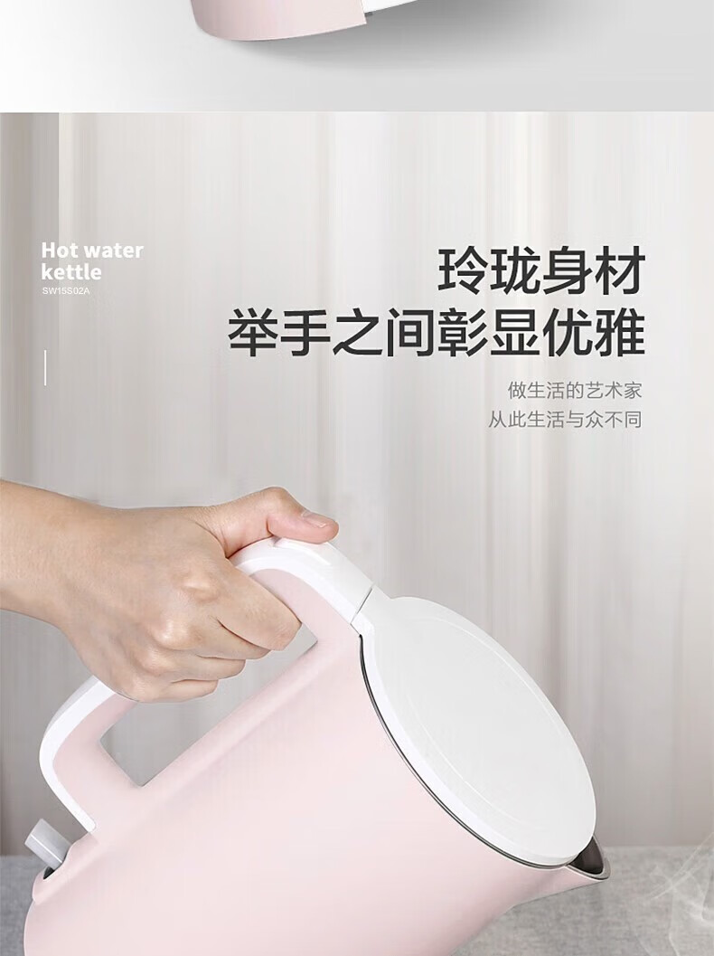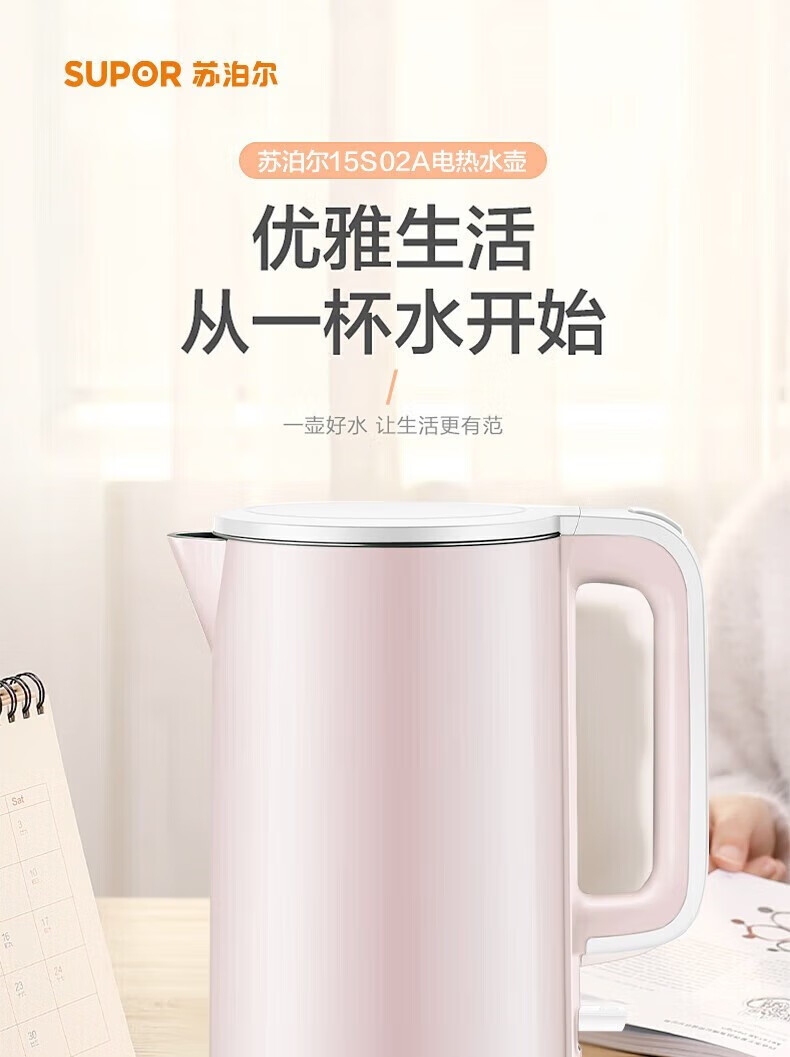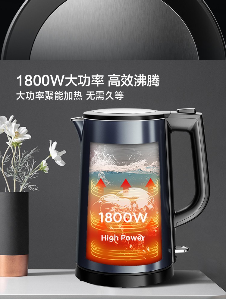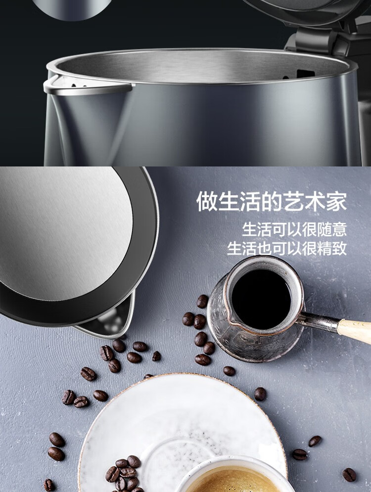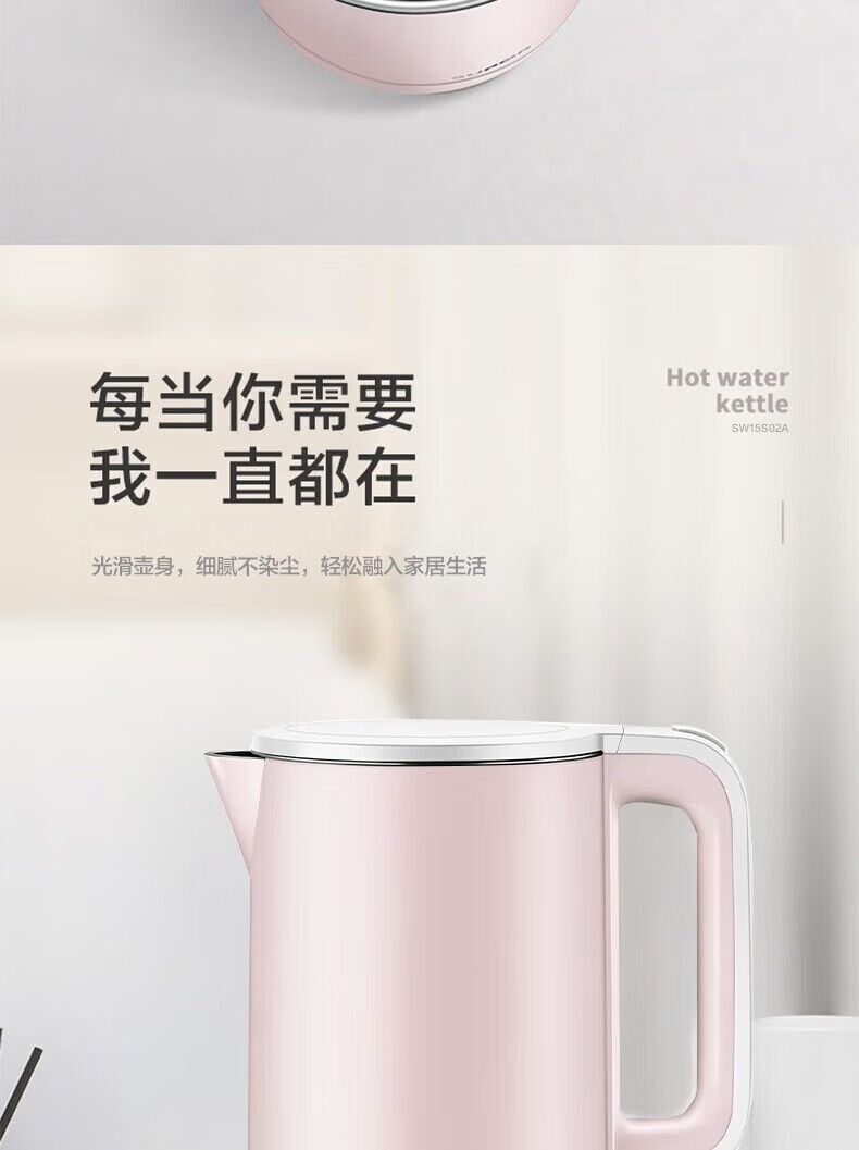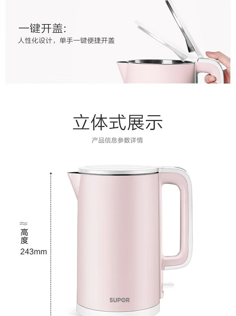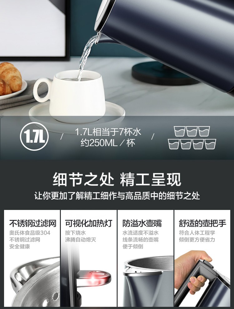 苏泊尔(SUPOR)电热水壶水壶家用1.7L大容量双层保温炫酷彩钢防烫烧水壶开水壶 SW-17S36A