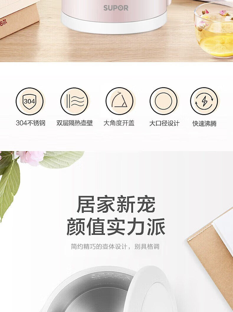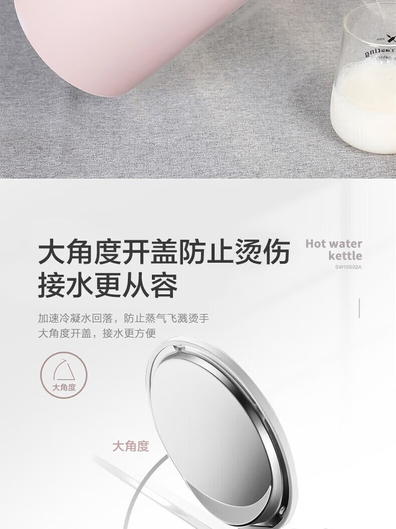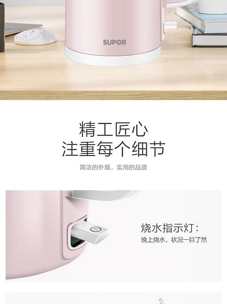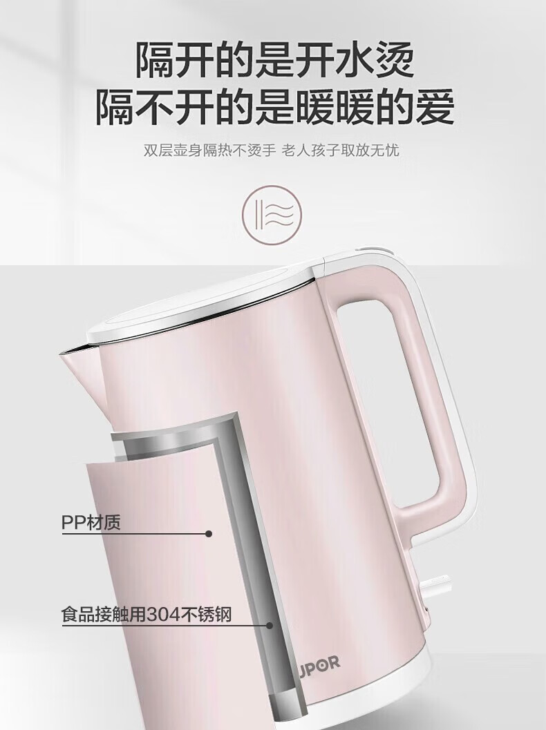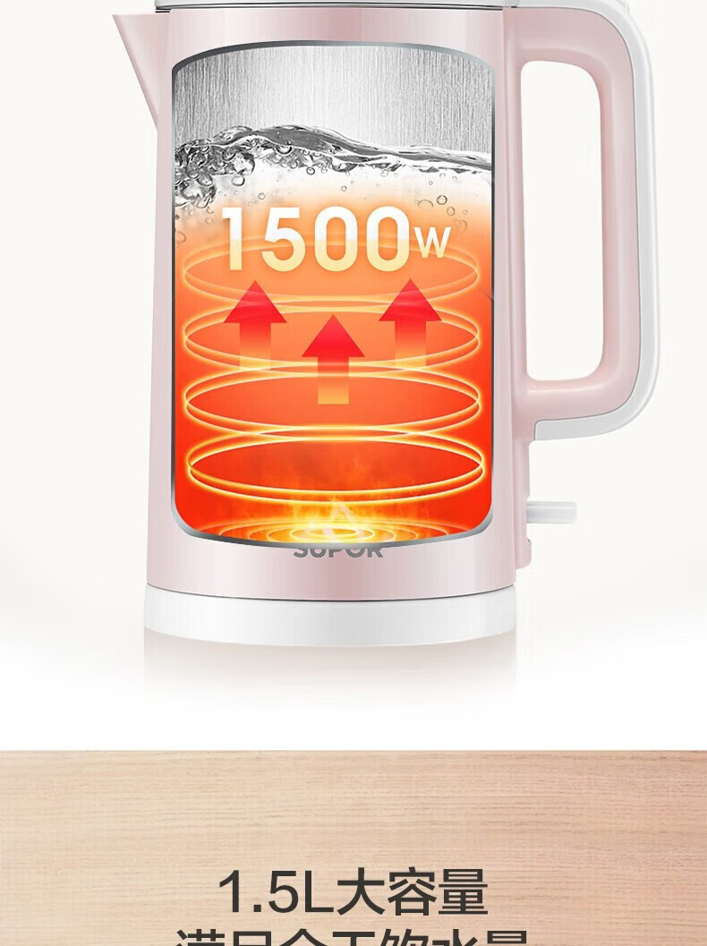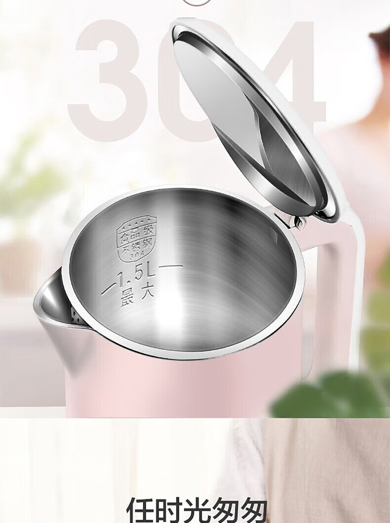 苏泊尔(SUPOR)电热水壶水壶家用1.7L大容量双层保温炫酷彩钢防烫烧水壶开水壶 SW-17S36A