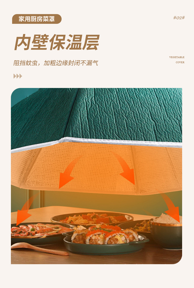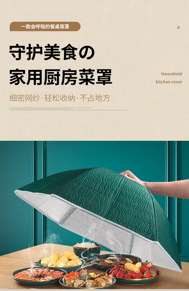 【守护美食!家用厨房菜罩】保温菜罩家用可拆洗餐桌罩可折叠饭菜罩子加厚遮菜防尘厨房食物罩。ry