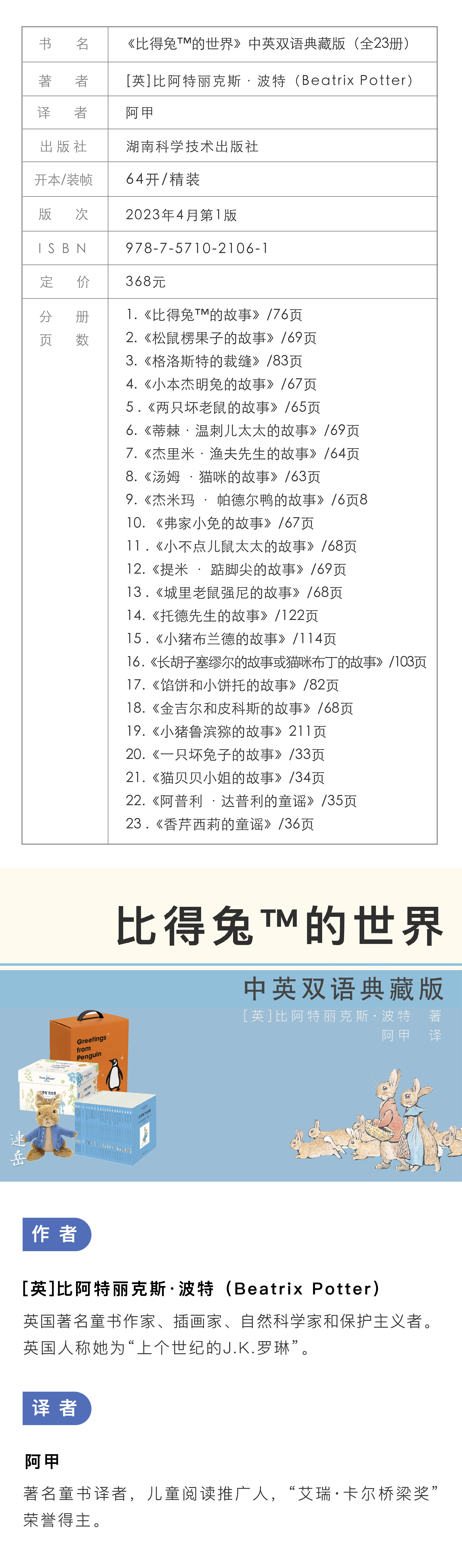 《比得兔的世界》中英双语典藏(全23册)