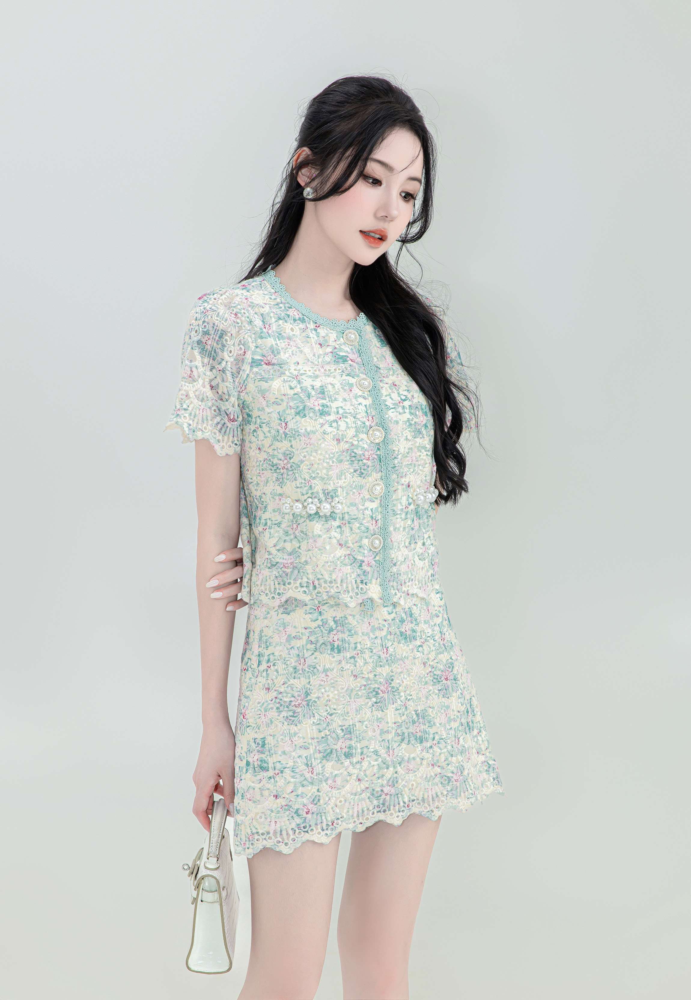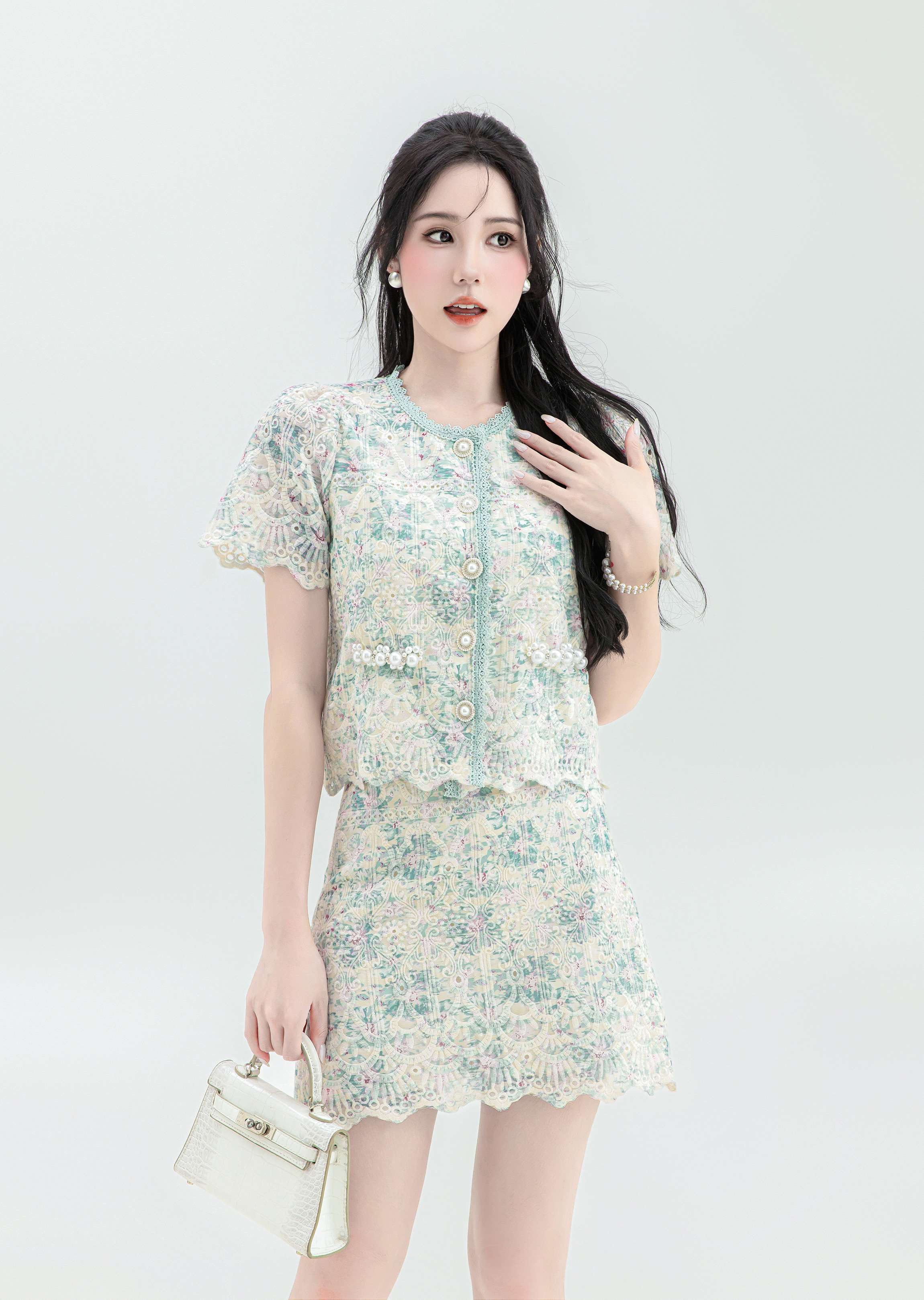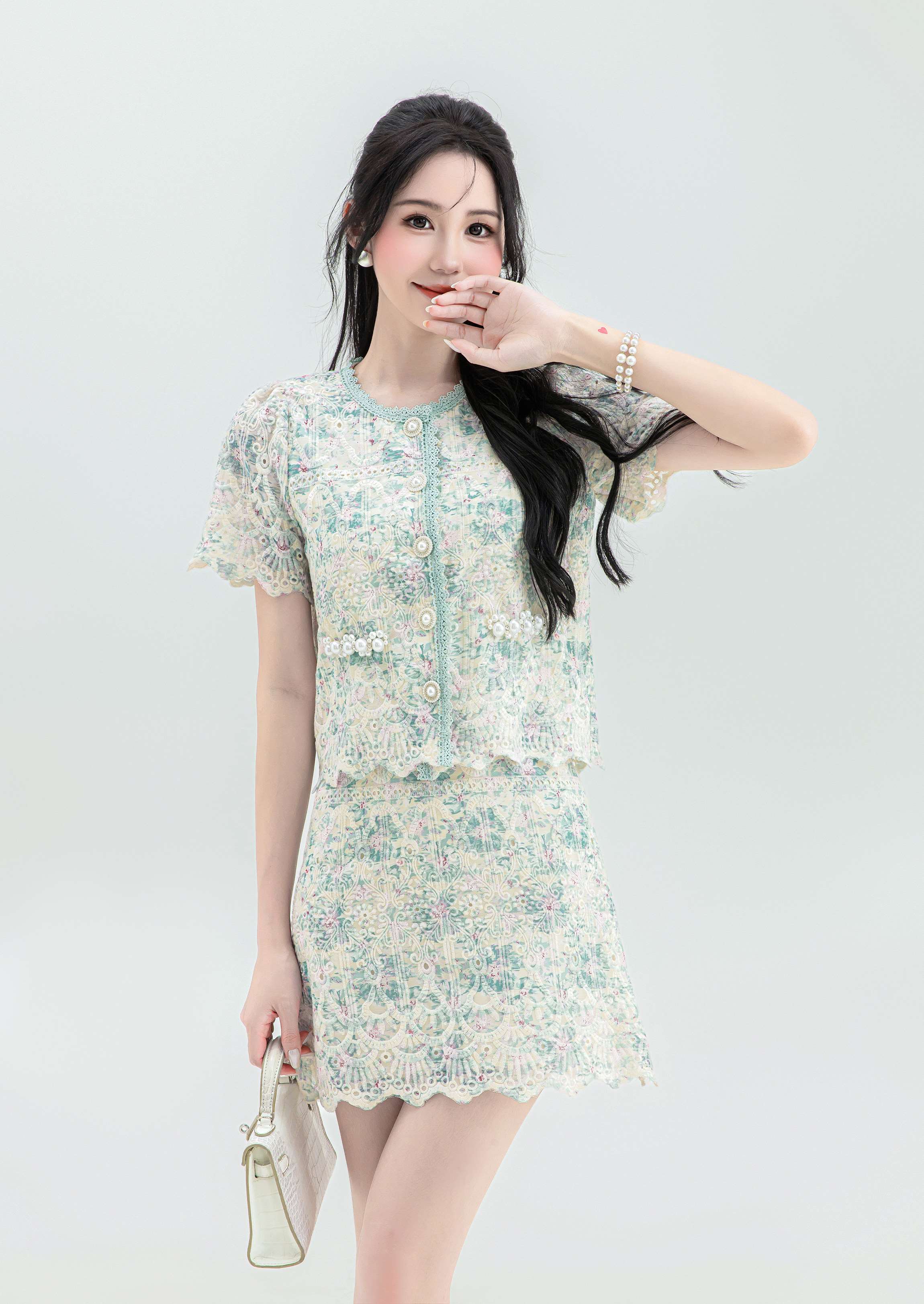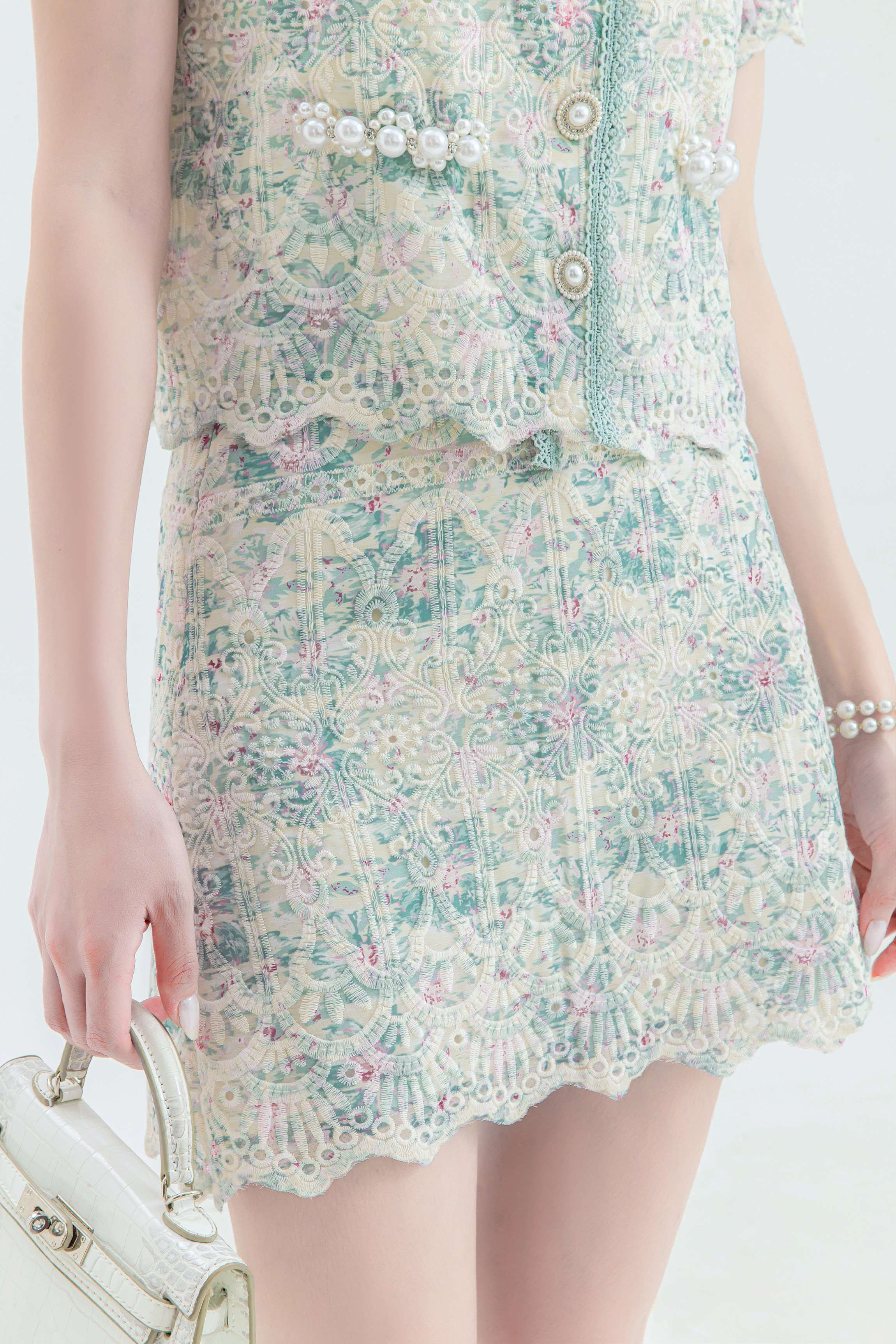 【非质量问题不支持退换】张心子【花间集】宫廷风刺绣水溶蕾丝套装女2023夏季小香风两件套 U2307001