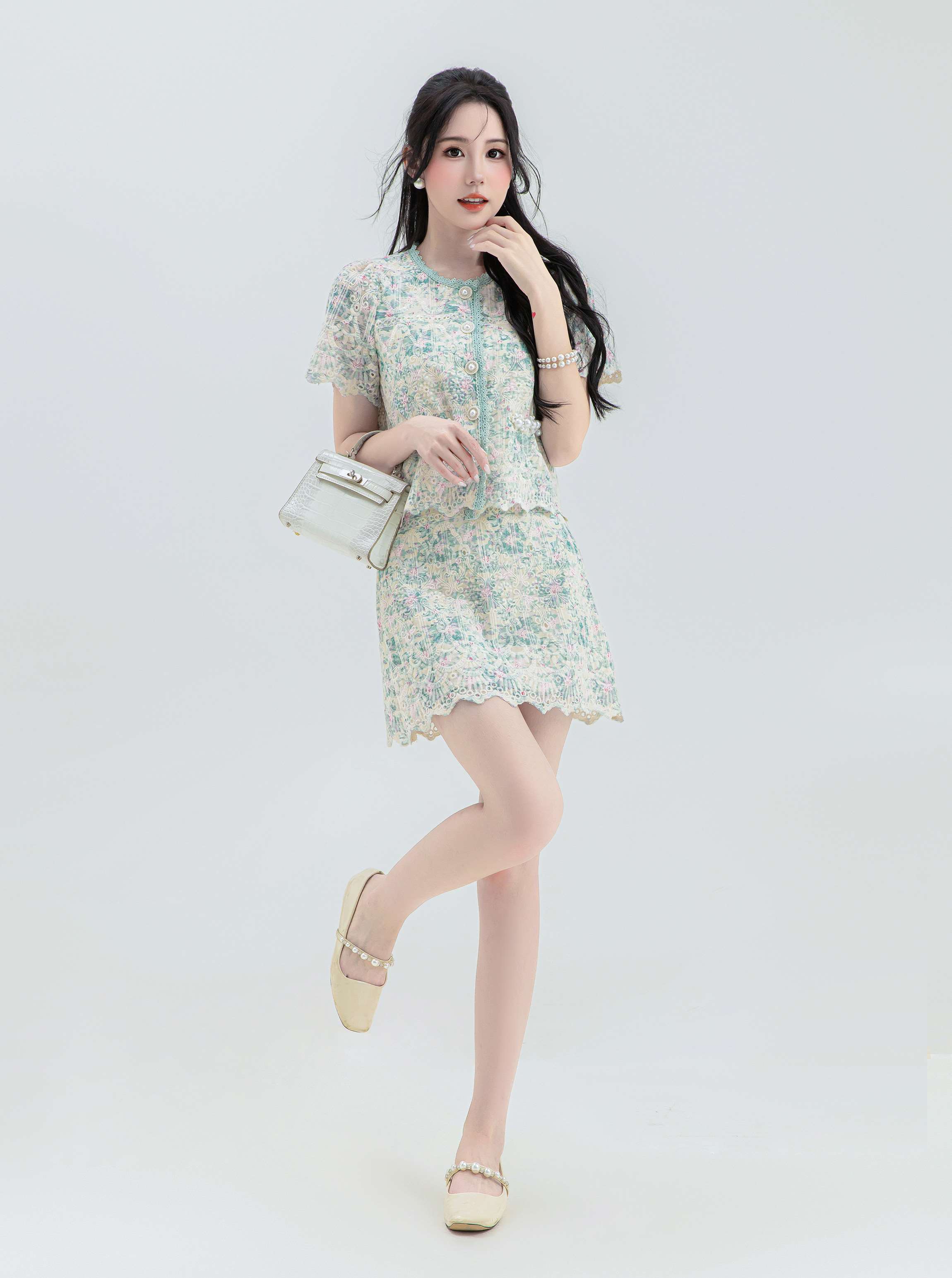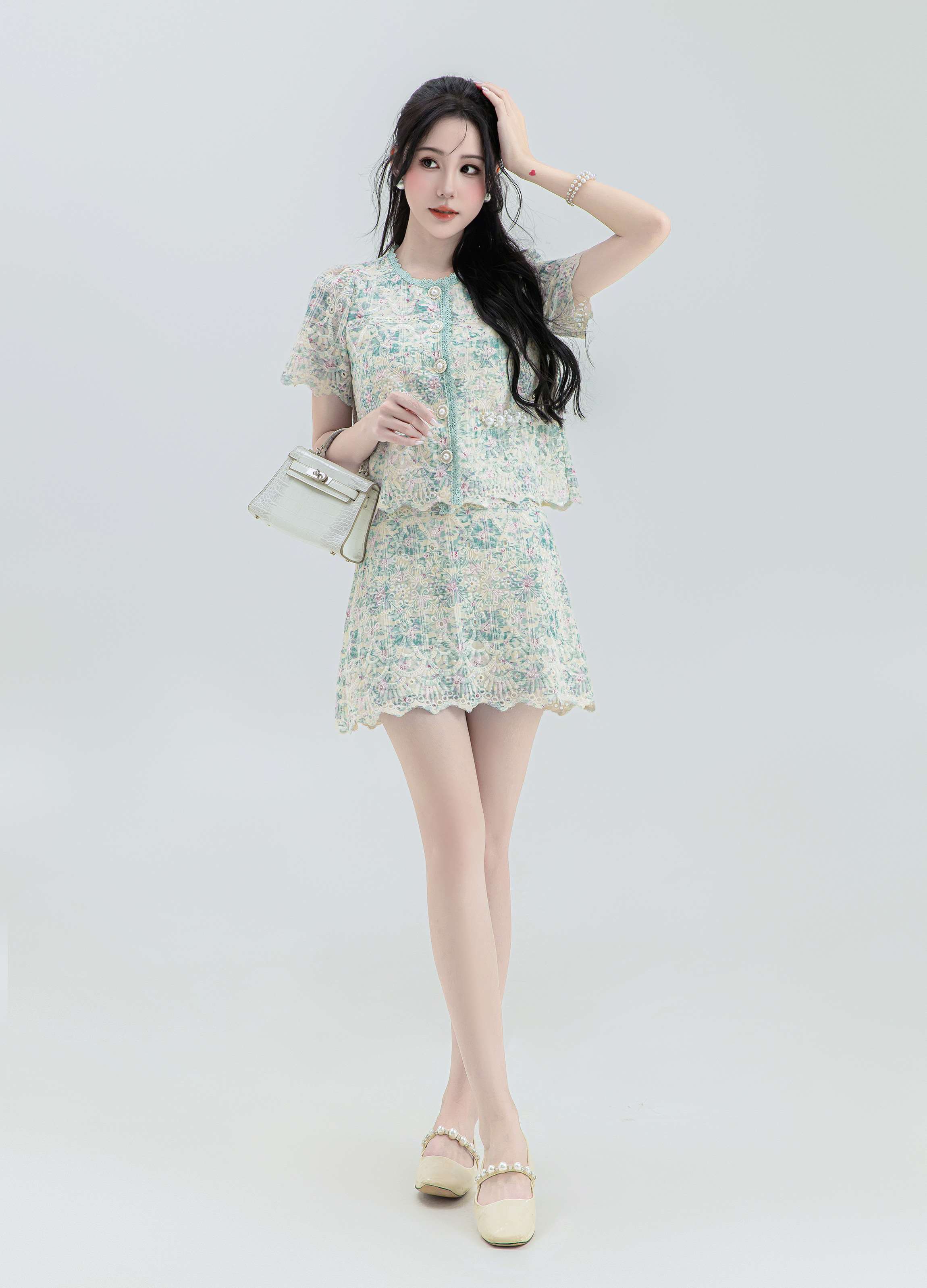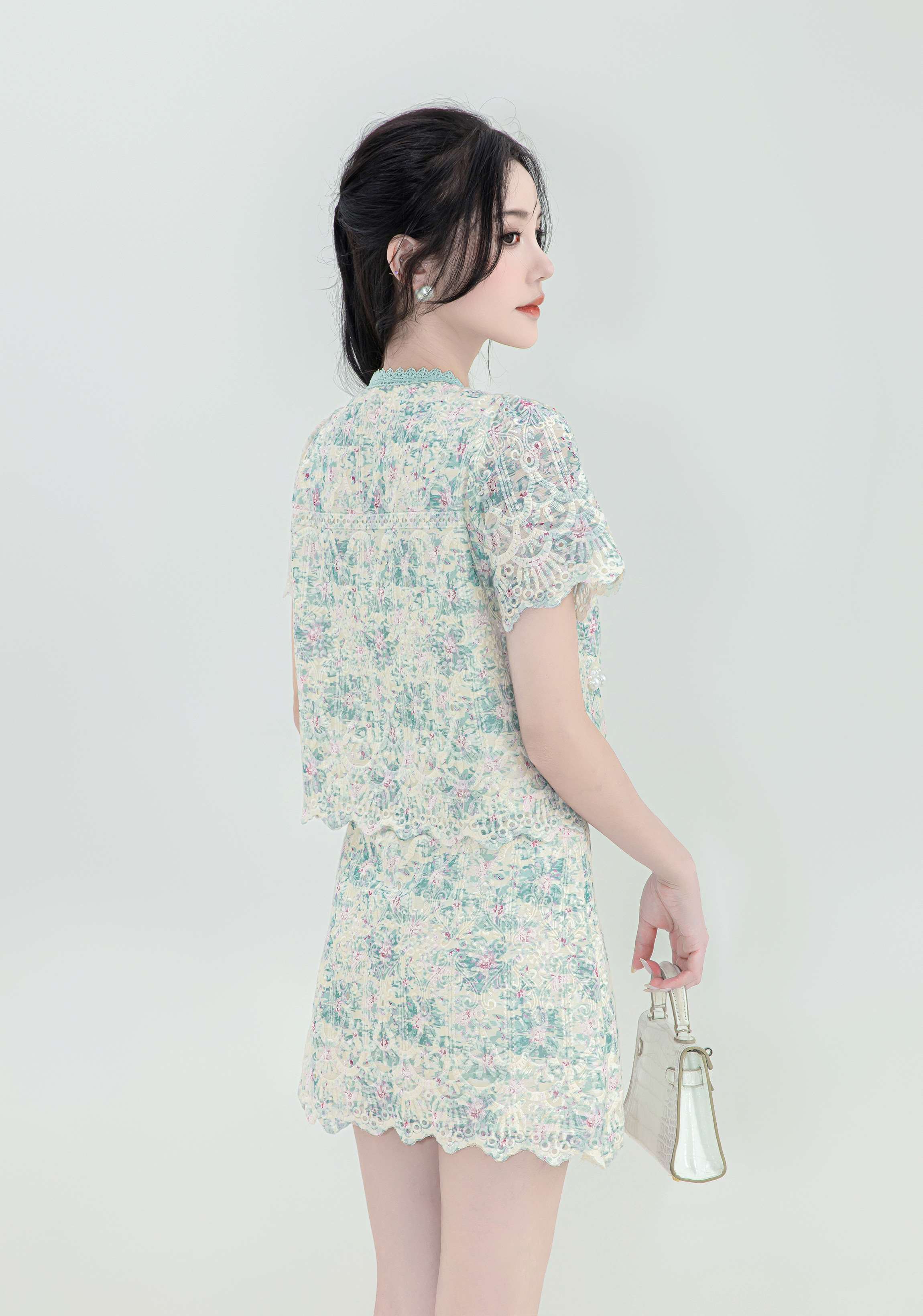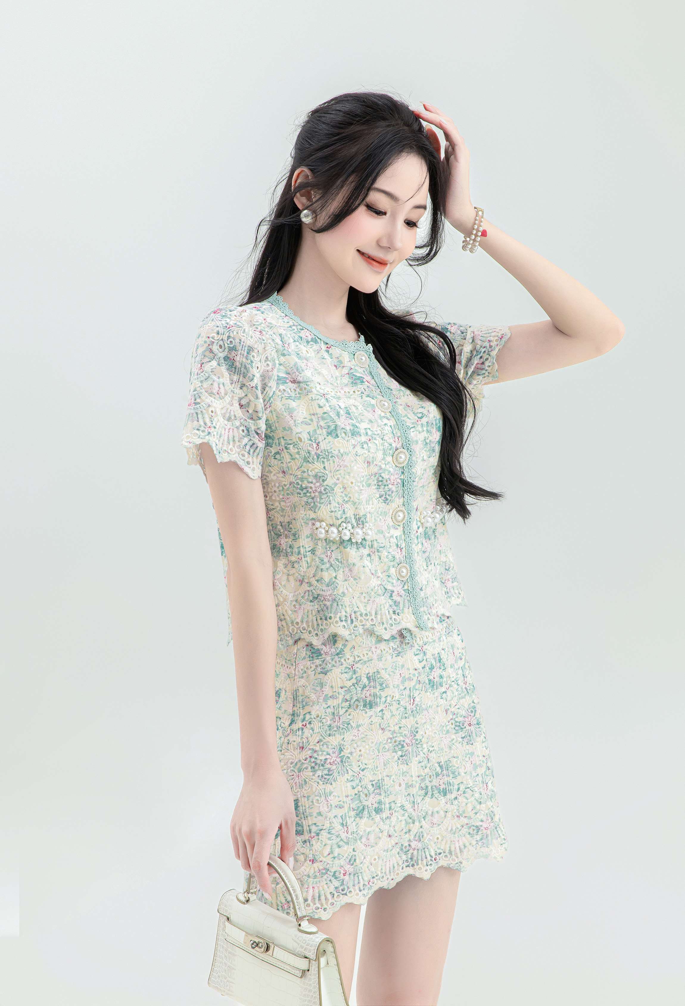 【非质量问题不支持退换】张心子【花间集】宫廷风刺绣水溶蕾丝套装女2023夏季小香风两件套 U2307001