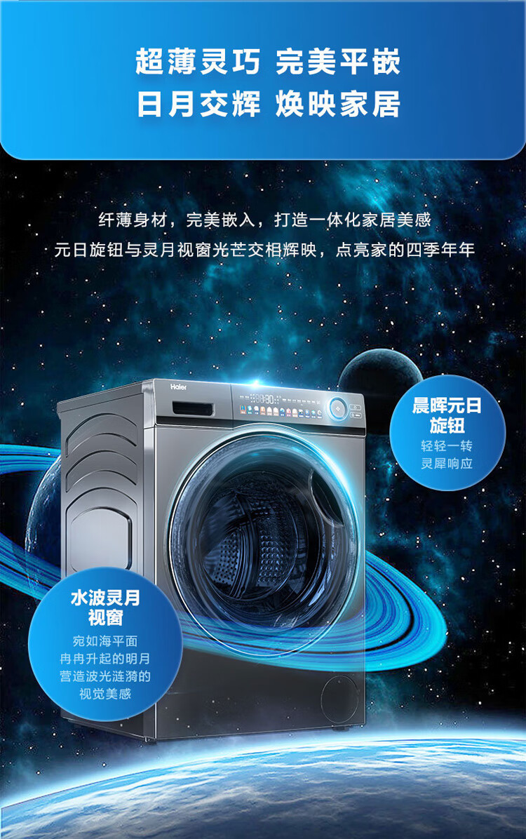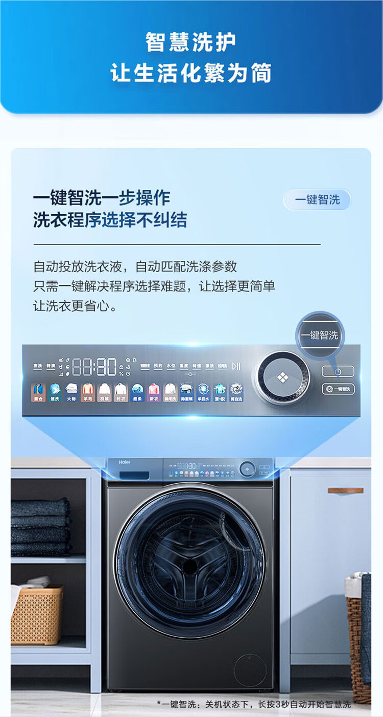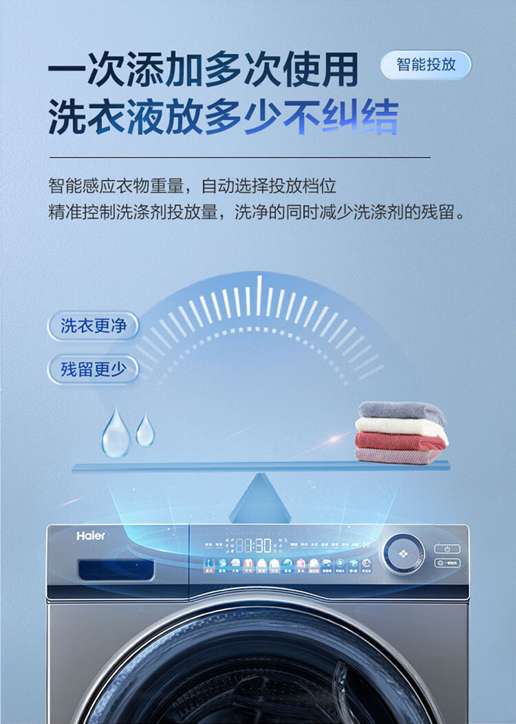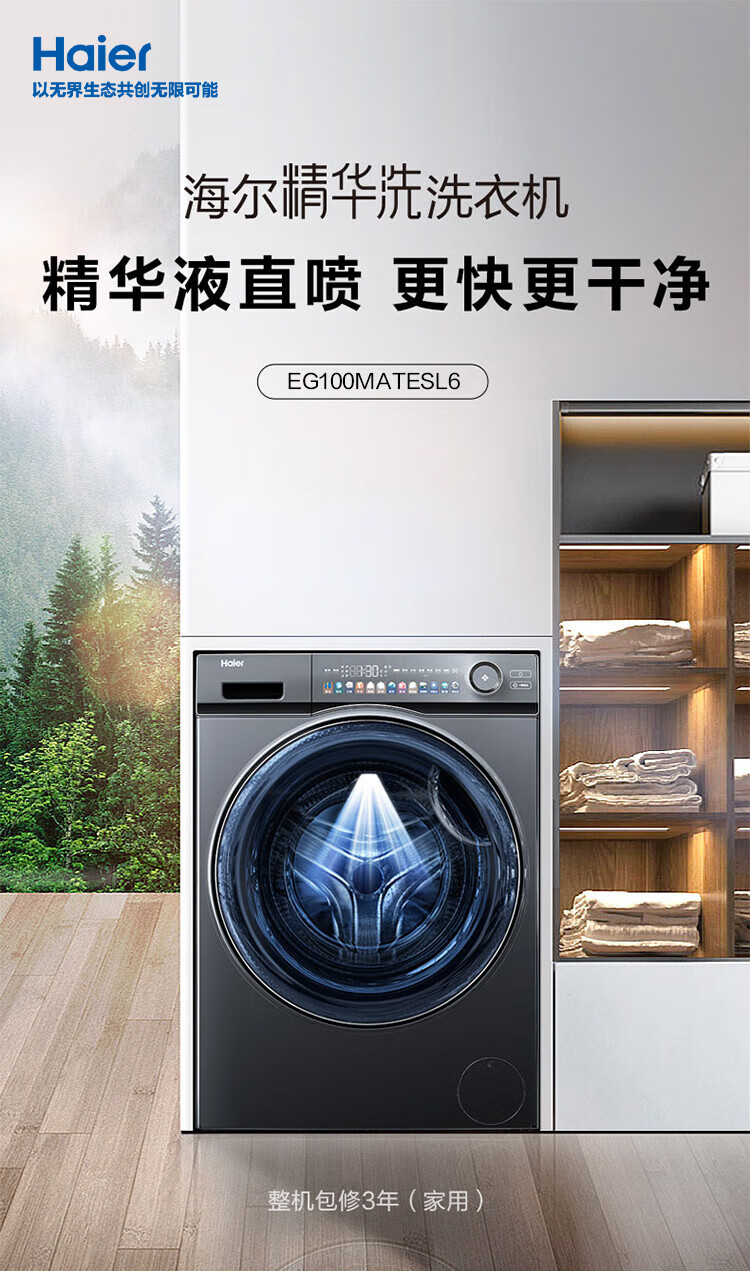 海尔(Haier)10KG 滚筒洗衣机 全自动 智能 投放 晶彩大屏 除毛洗 一键智洗 525大桶径 超薄平嵌 EG100MATESL6