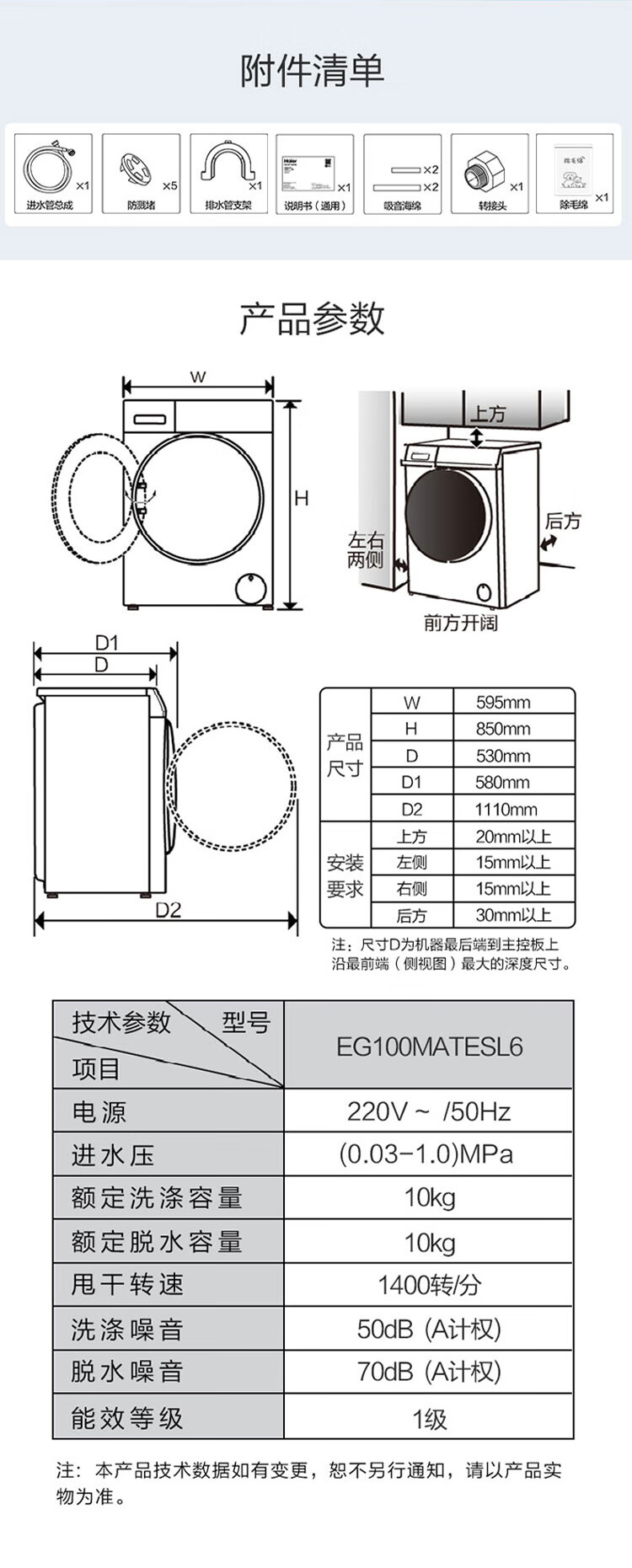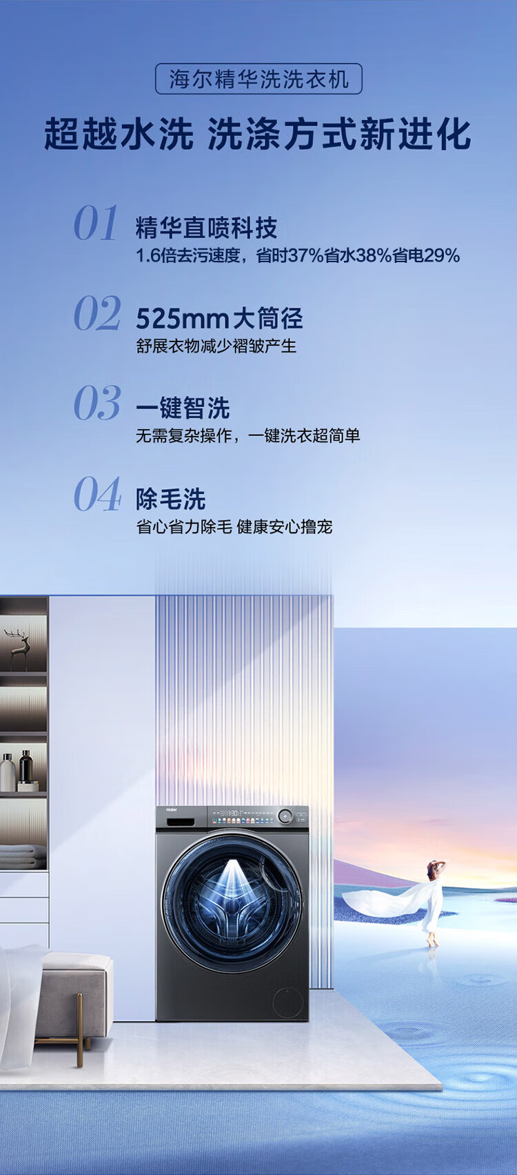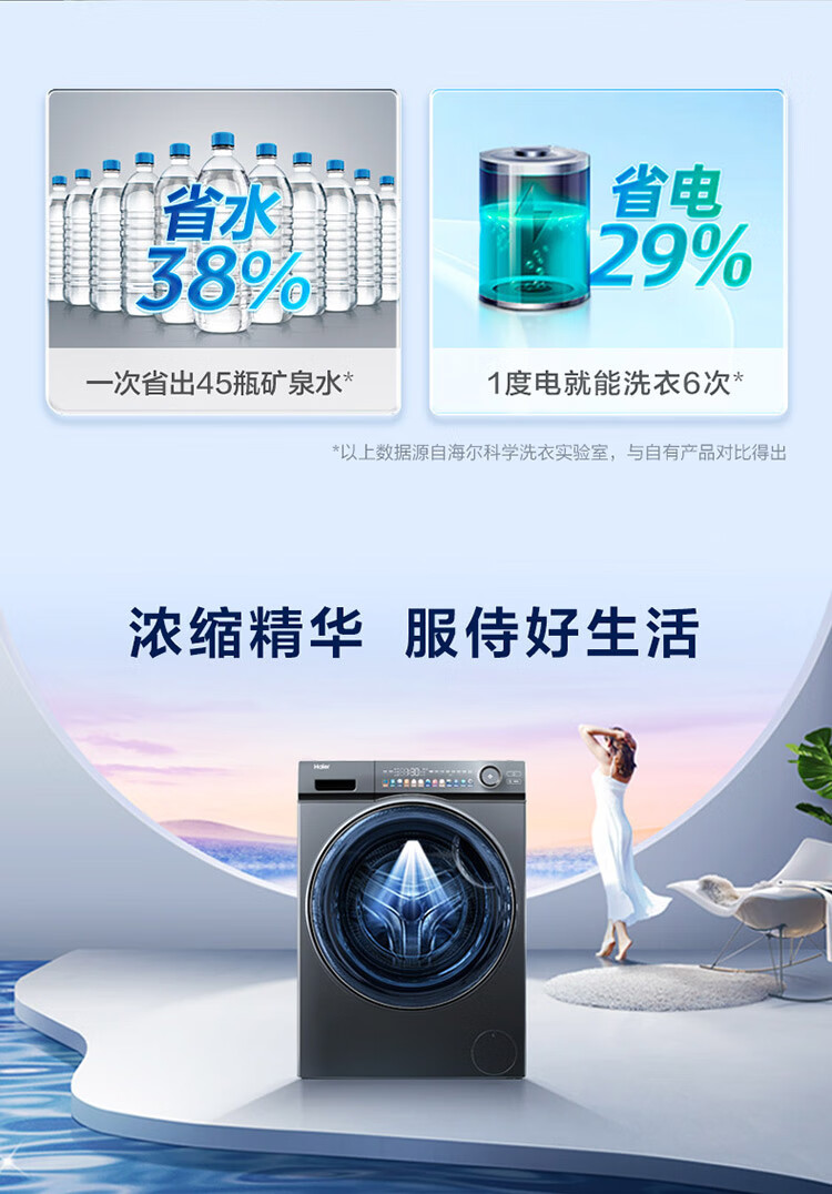 海尔(Haier)10KG 滚筒洗衣机 全自动 智能 投放 晶彩大屏 除毛洗 一键智洗 525大桶径 超薄平嵌 EG100MATESL6