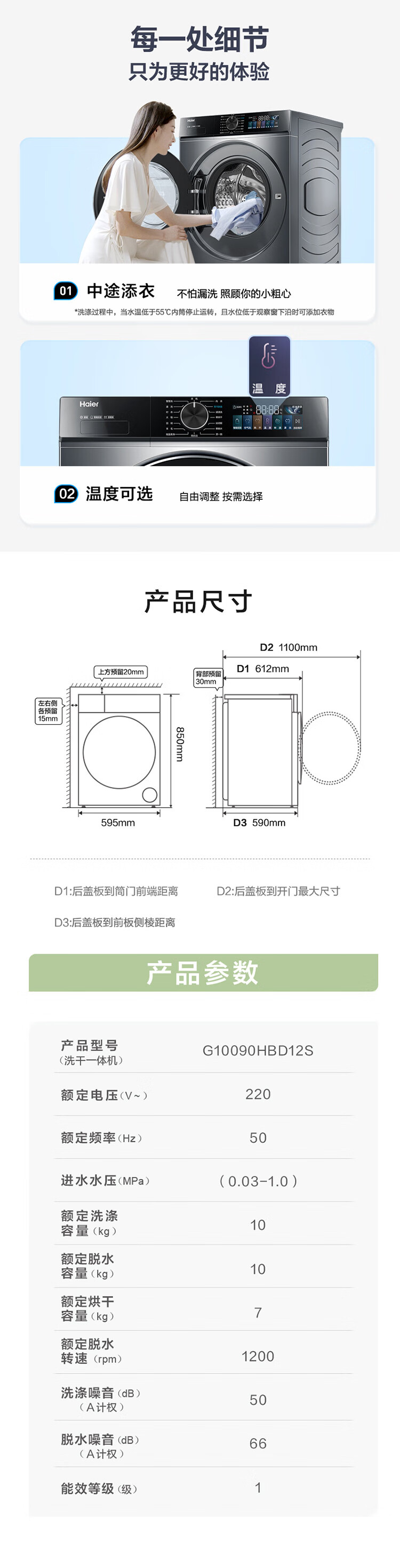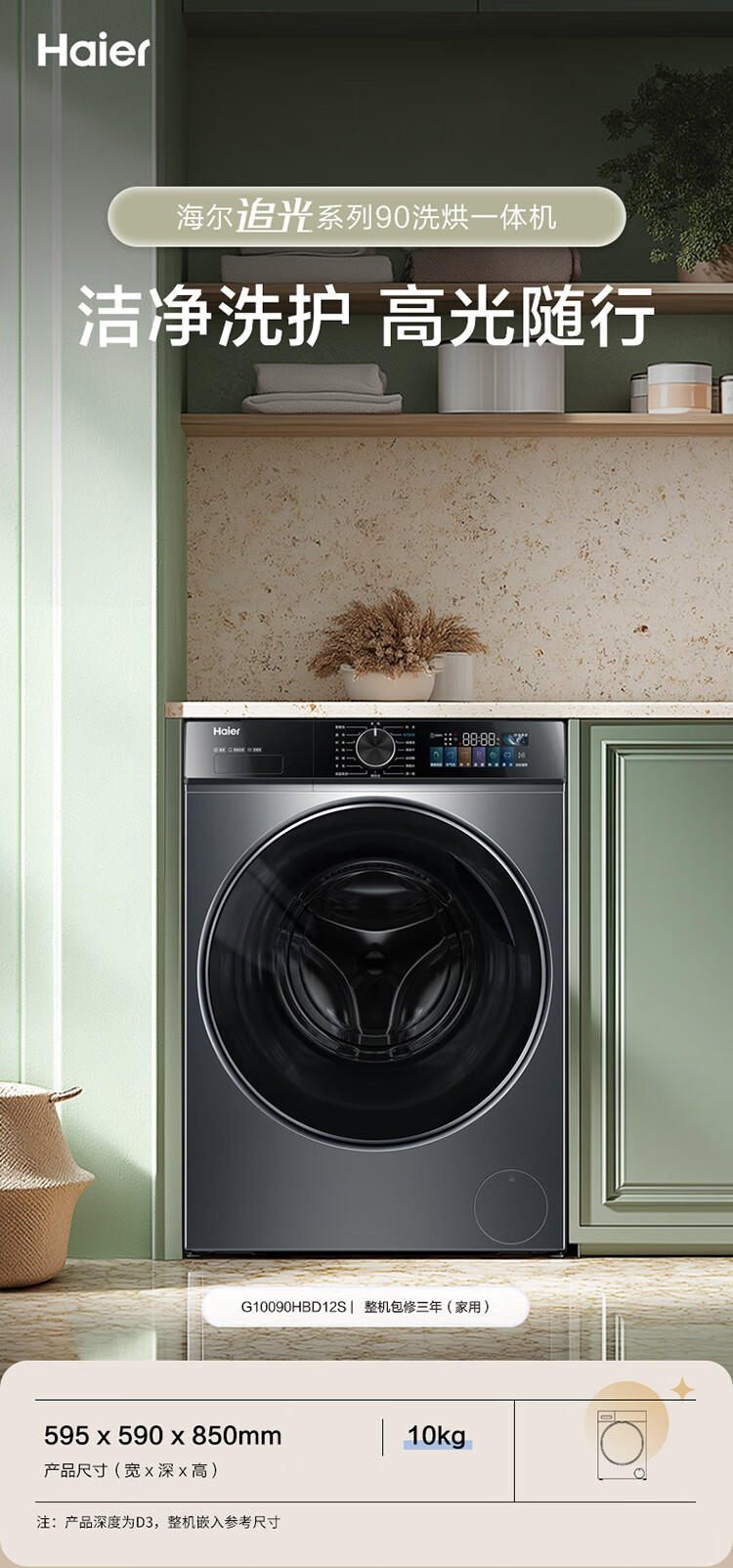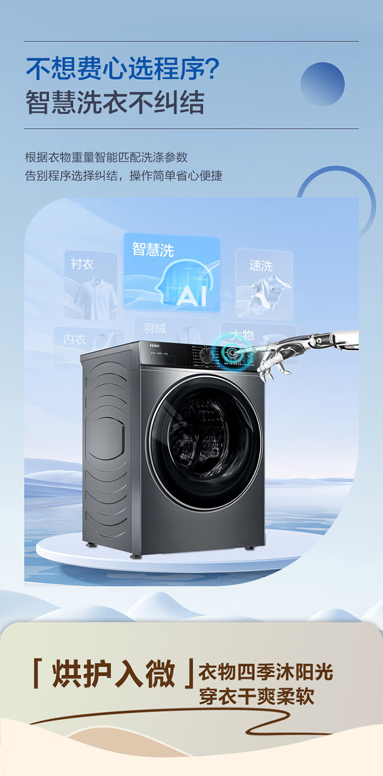 海尔全自动滚筒洗衣机10公斤直驱变频大容量除菌除螨智能投放洗烘一体洗衣机G10090HBD12S