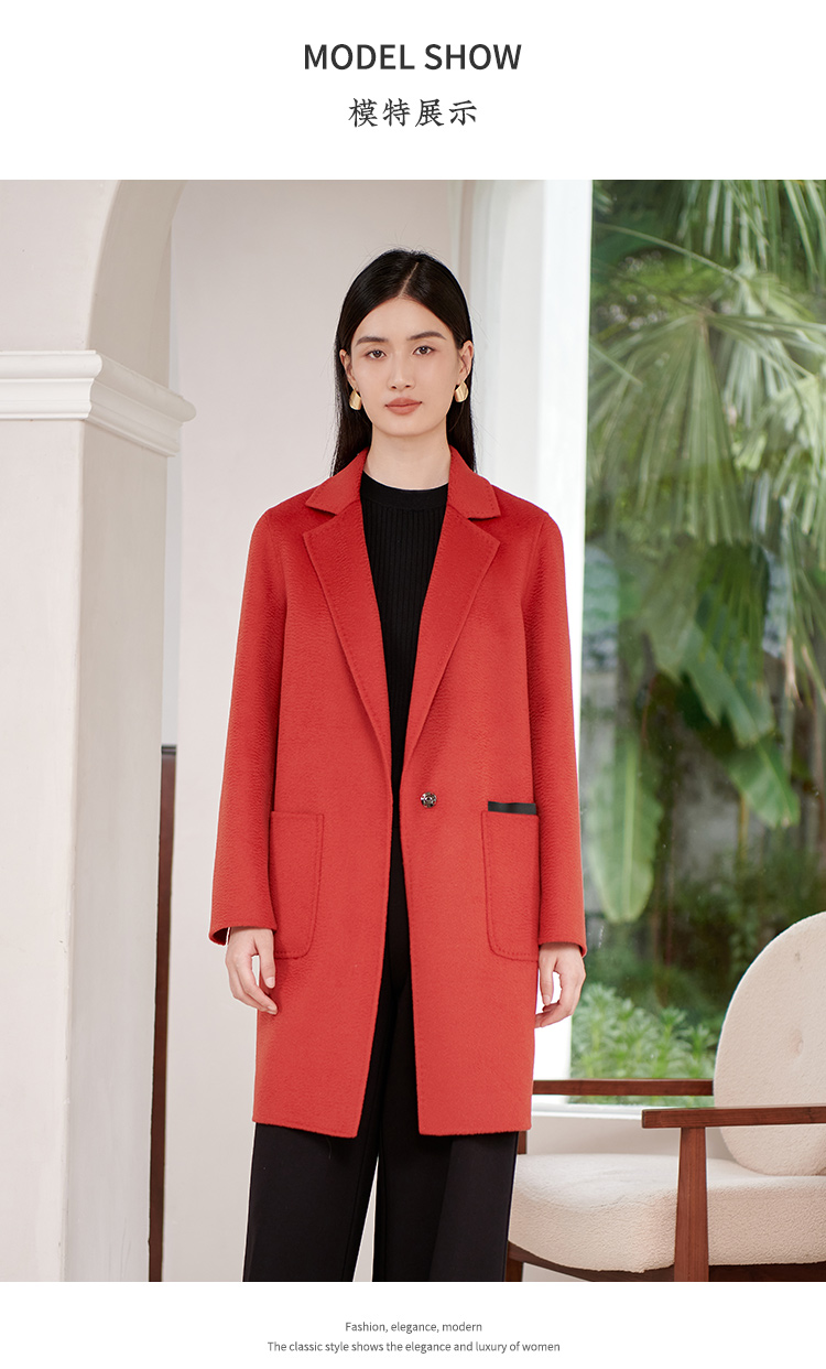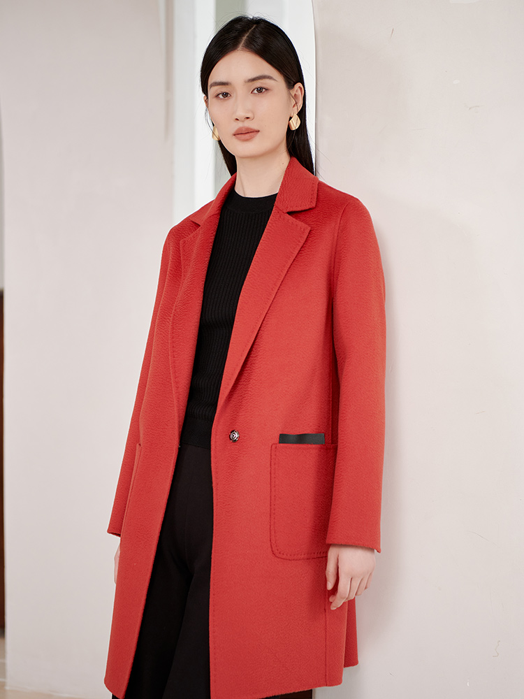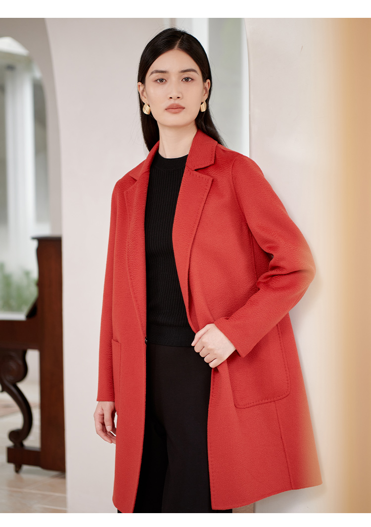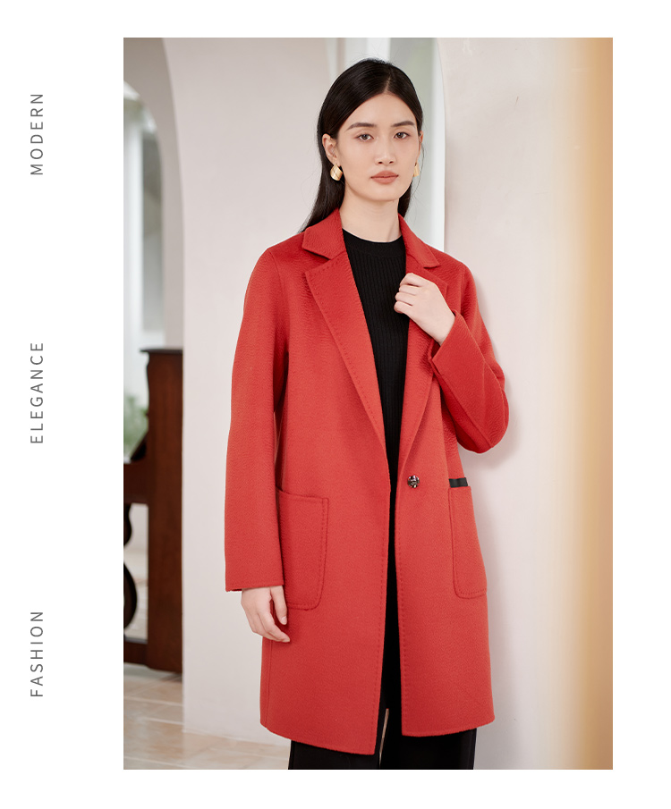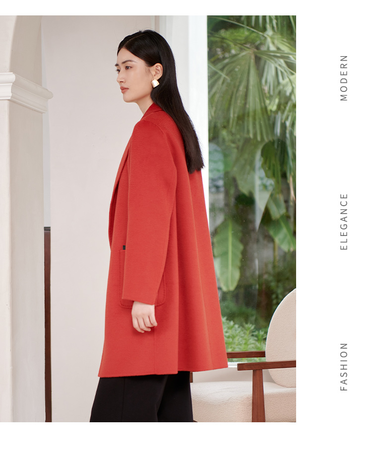 佐尔美冬季女款时尚毛呢外套大衣女单排扣直筒羊毛外套E64ZD23