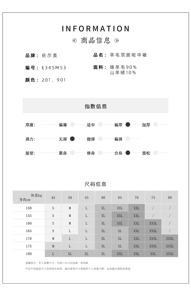 佐尔美冬季新款 气质经典90%羊毛双面呢大衣女E34SM53