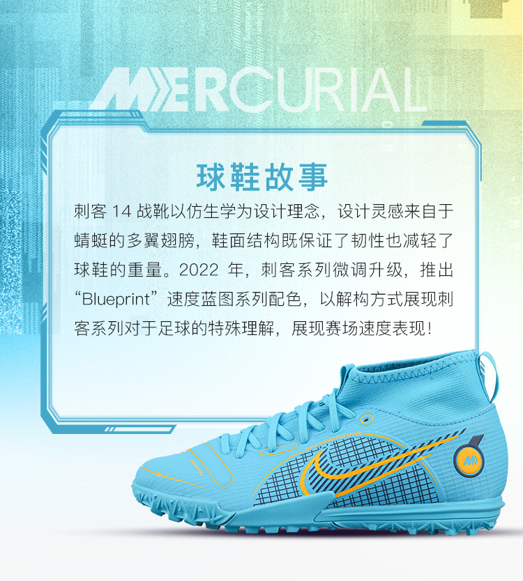 NIKE/耐克 刺客14儿童款高帮中端TF碎钉青少年足球鞋DJ2864-484