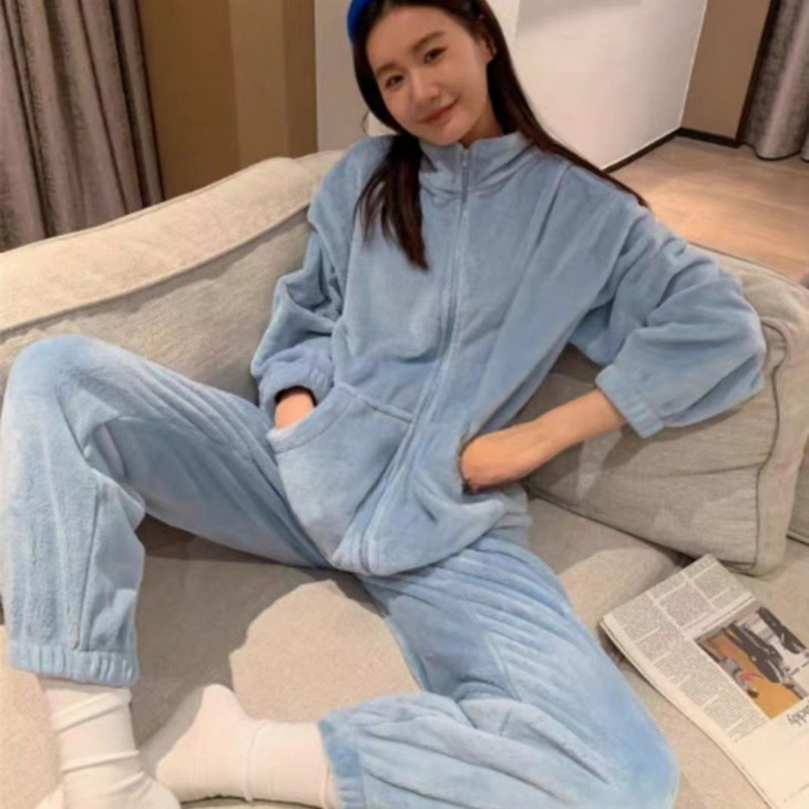 【升级款拉链开衫睡衣家居服套装】可外穿女加厚保暖舒适休闲两件套装