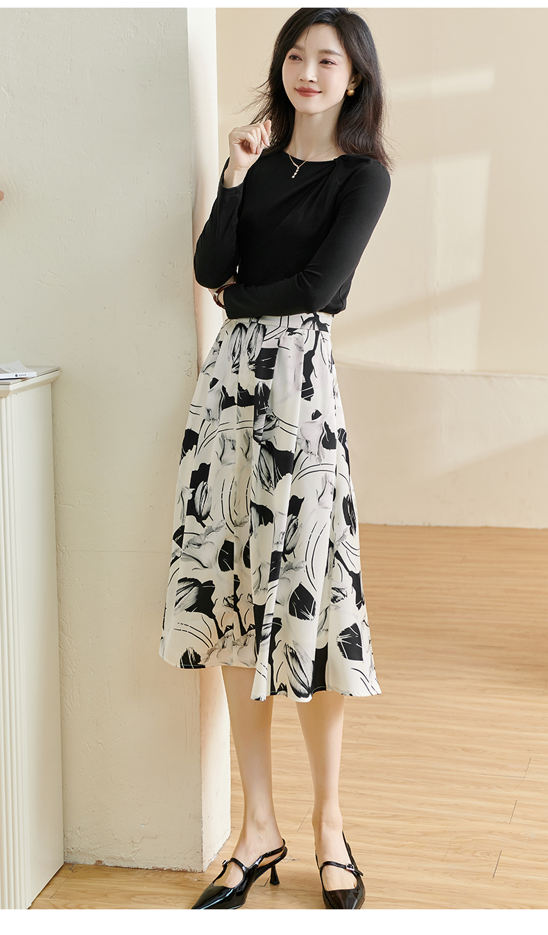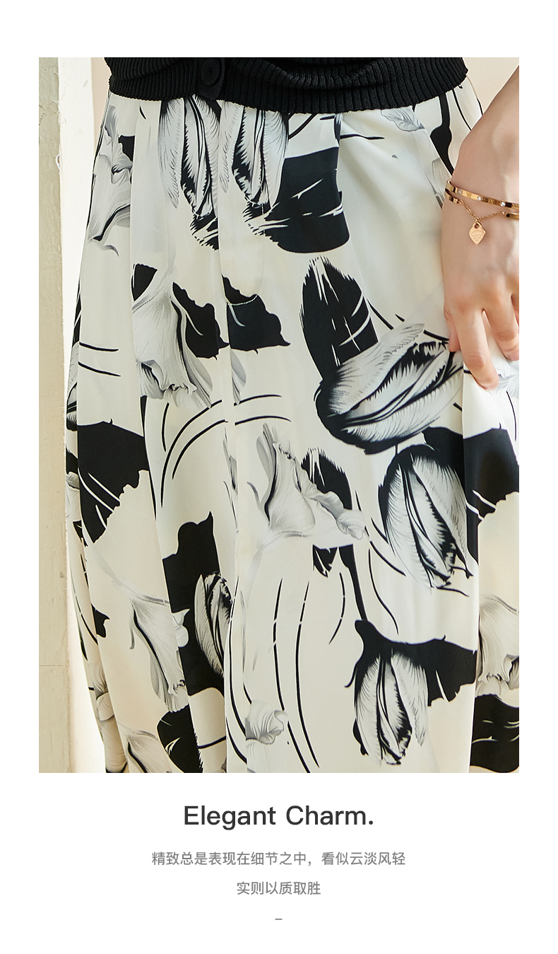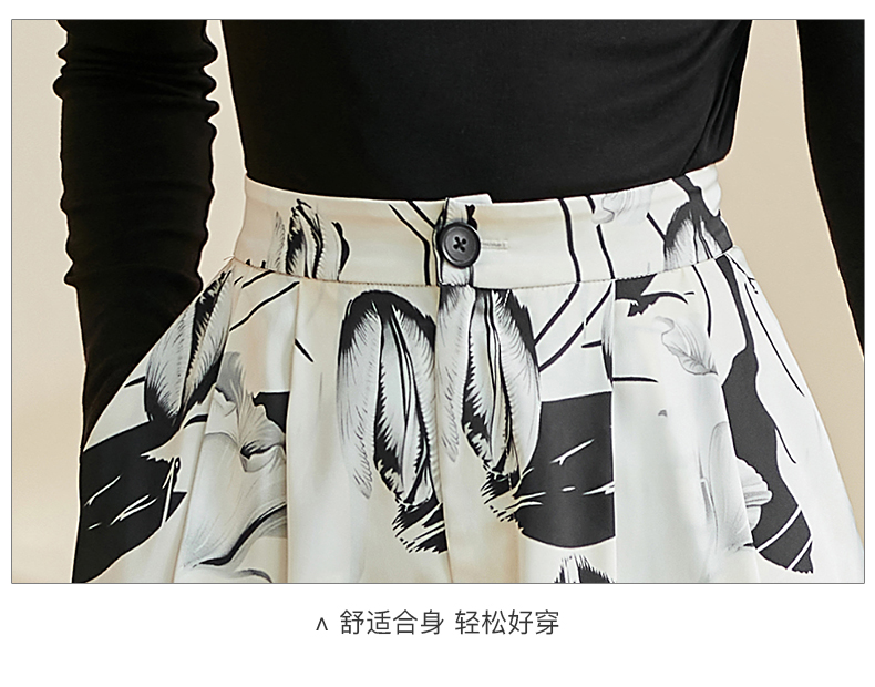 剩S/M 米思阳2024秋季新款百搭复古印花大摆裙修身显瘦纽扣半身裙女2523