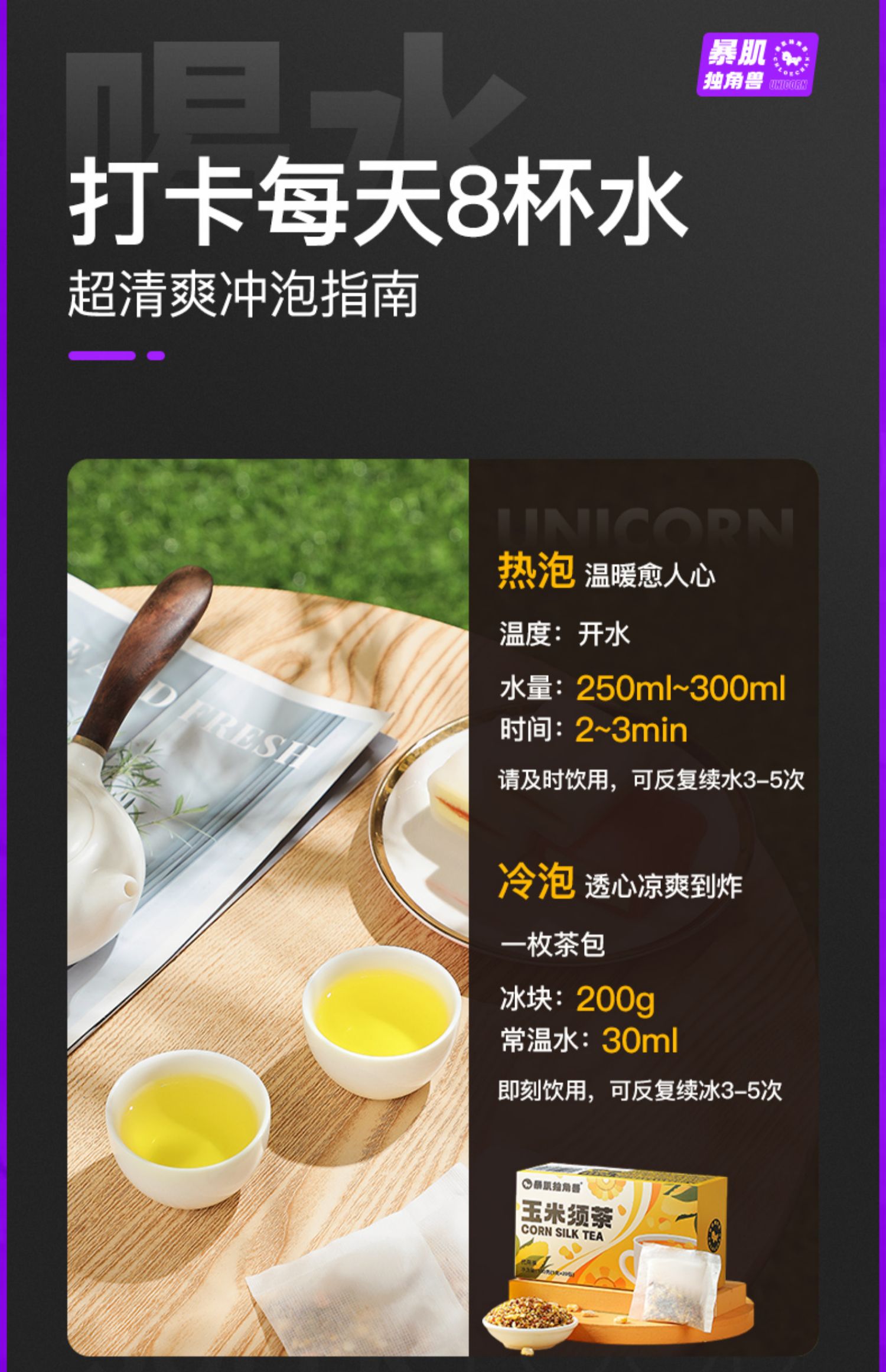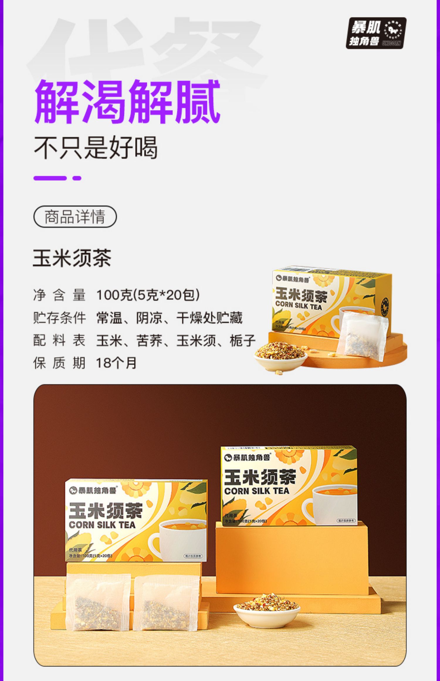 暴肌独角兽玉米须茶减苦荞麦肥熬夜利水茶袋0蔗糖养生茶孕妇