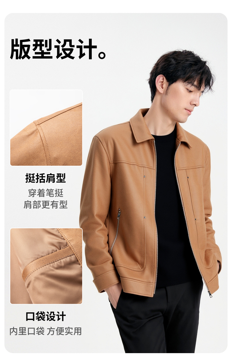 【仿麂皮】圣得西男士翻领夹克2025年秋季新款耐磨易打理工装外套