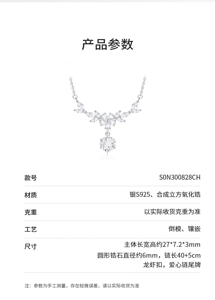 周大生紫藤花纯银925项链女轻奢锁骨链高级感设计七夕礼物送女友