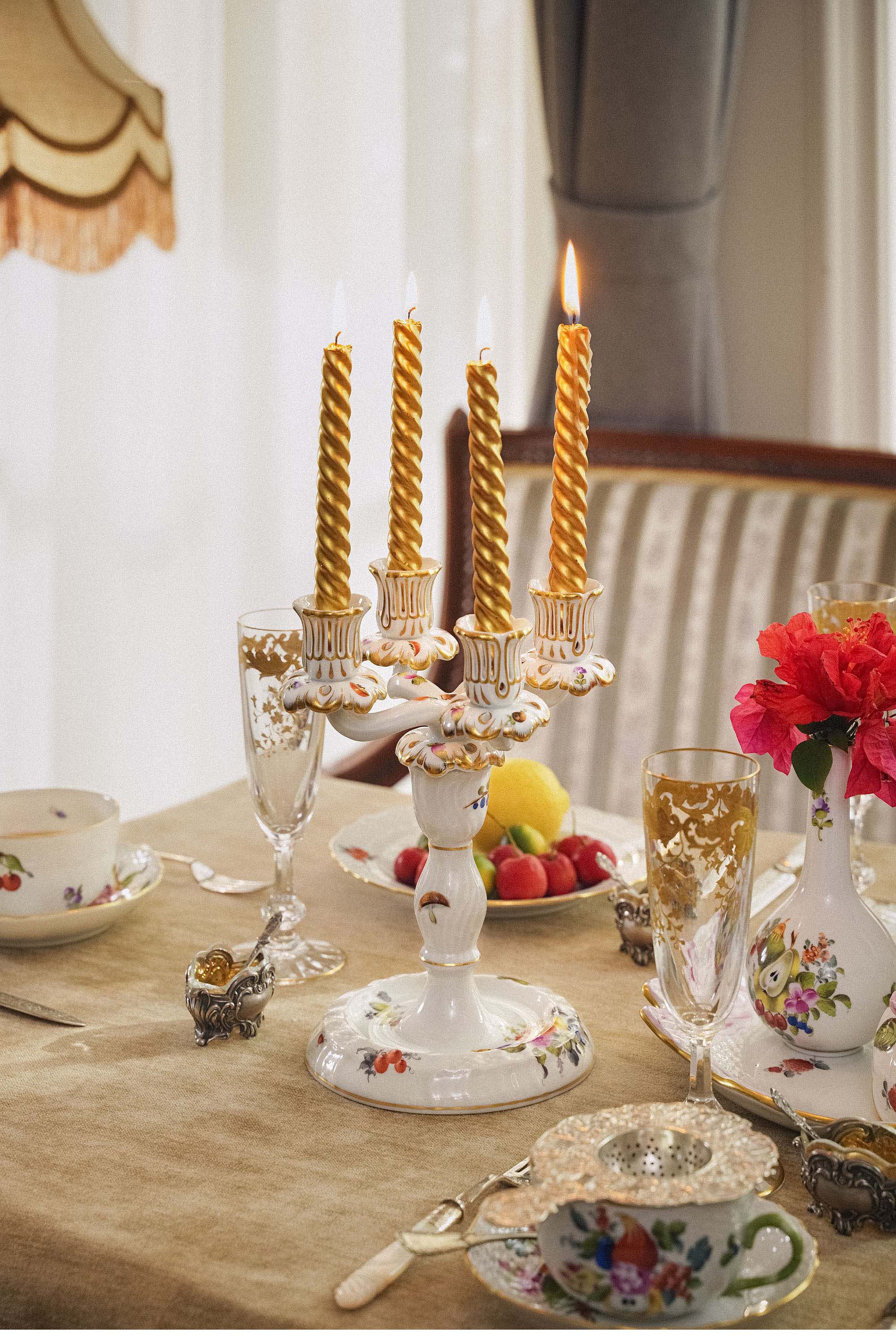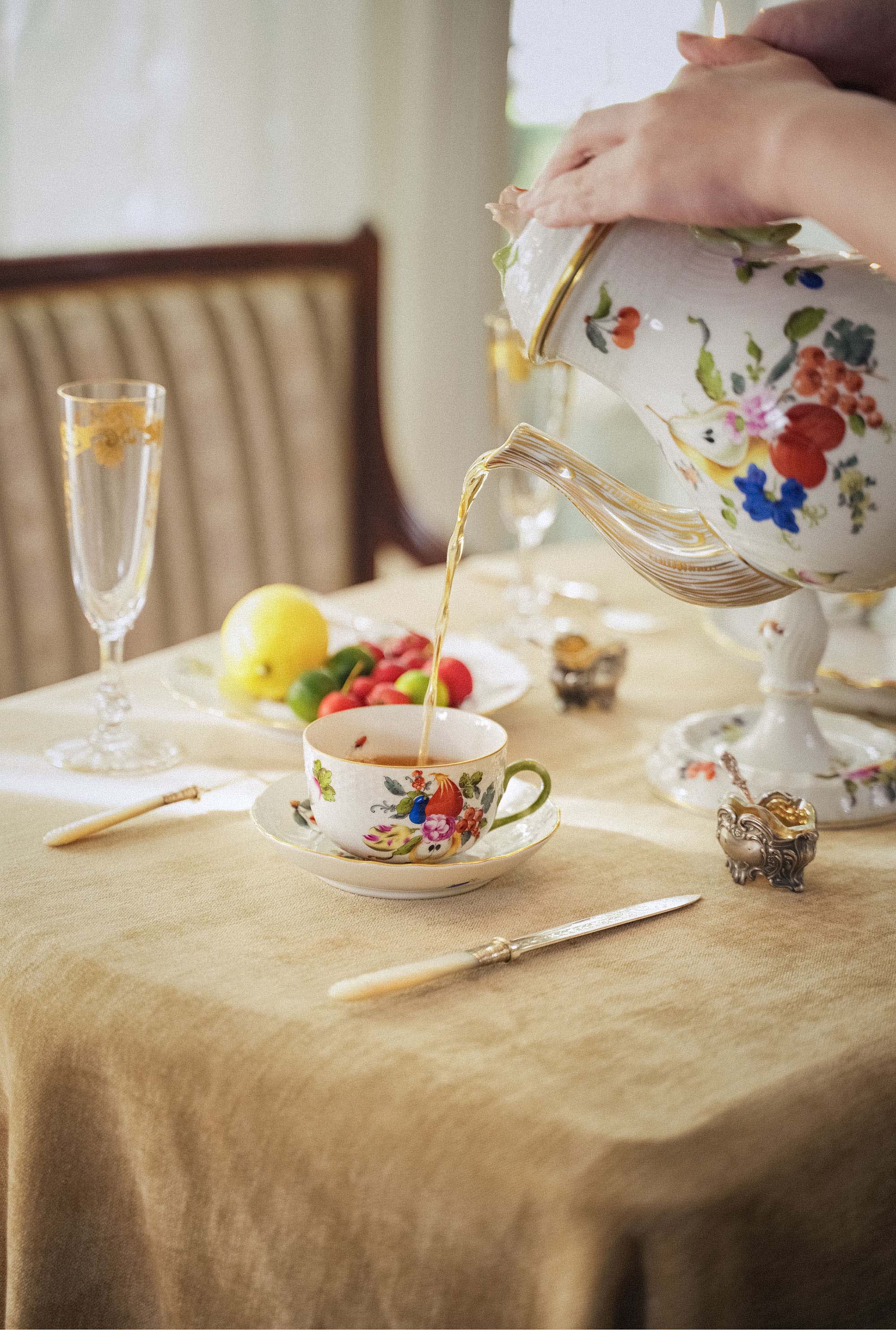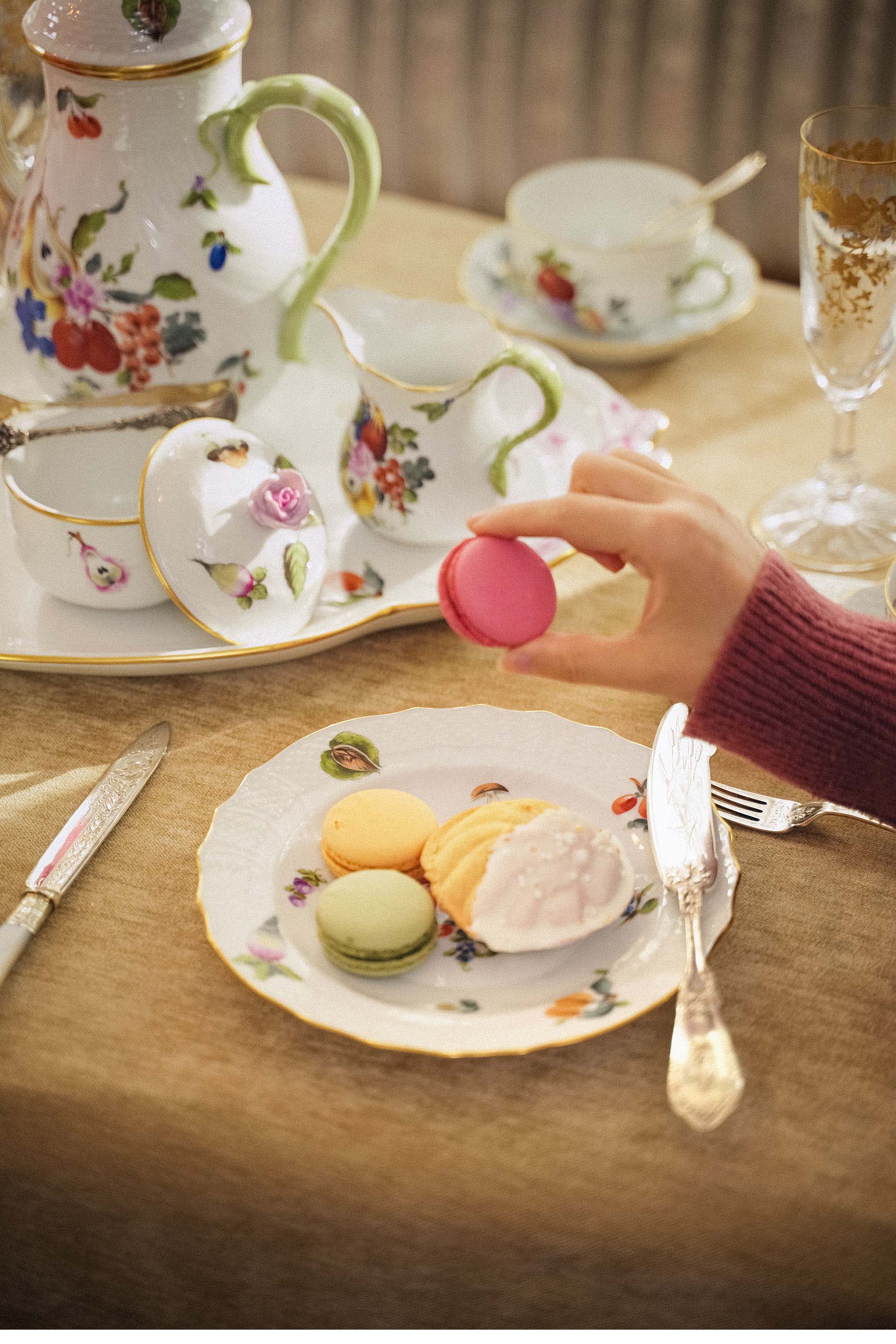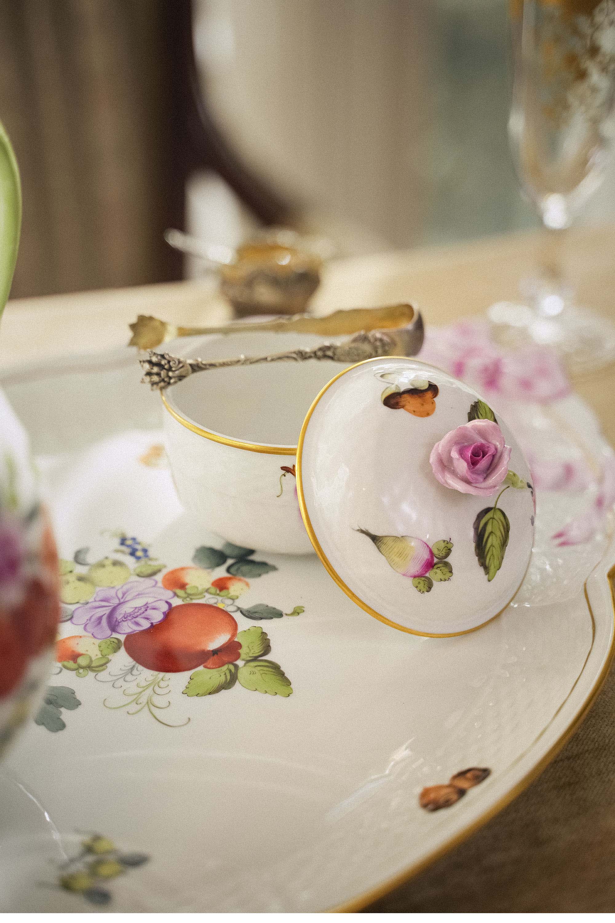 20世纪匈牙利赫伦瓷窑出品水果花束系列主题手绘描金装饰四人下午茶瓷器套件