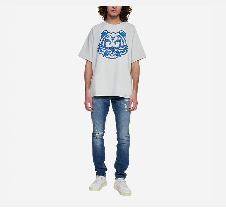 【二】KENZO 高田贤三 男士棉质抽象大虎头印花圆领短袖T恤 灰色 FC55 TS252 4SB 93