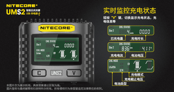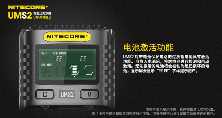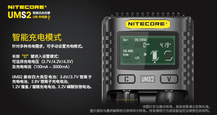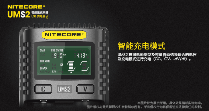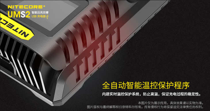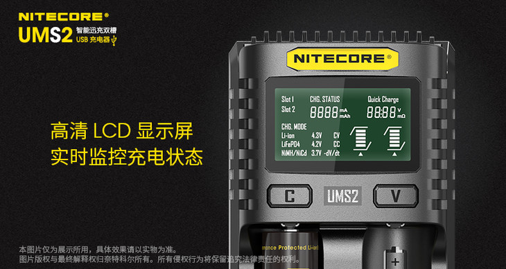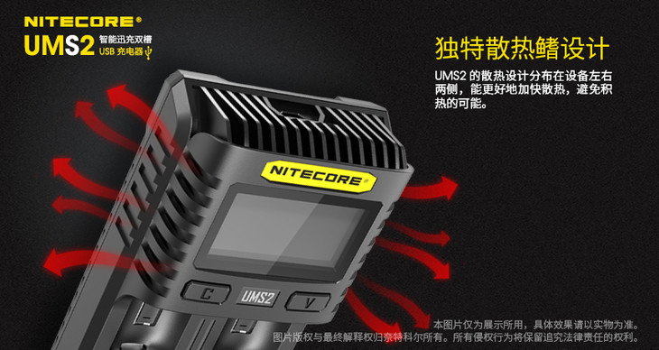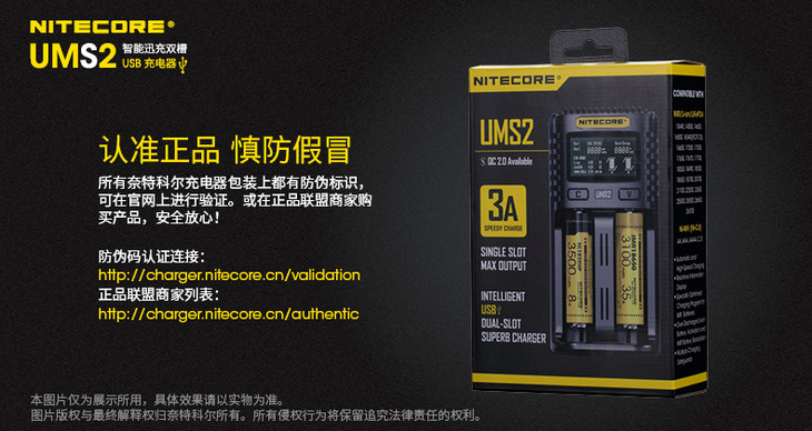 NITECORE奈特科尔UMS2智能快充USB双槽QC高电流18650充电器