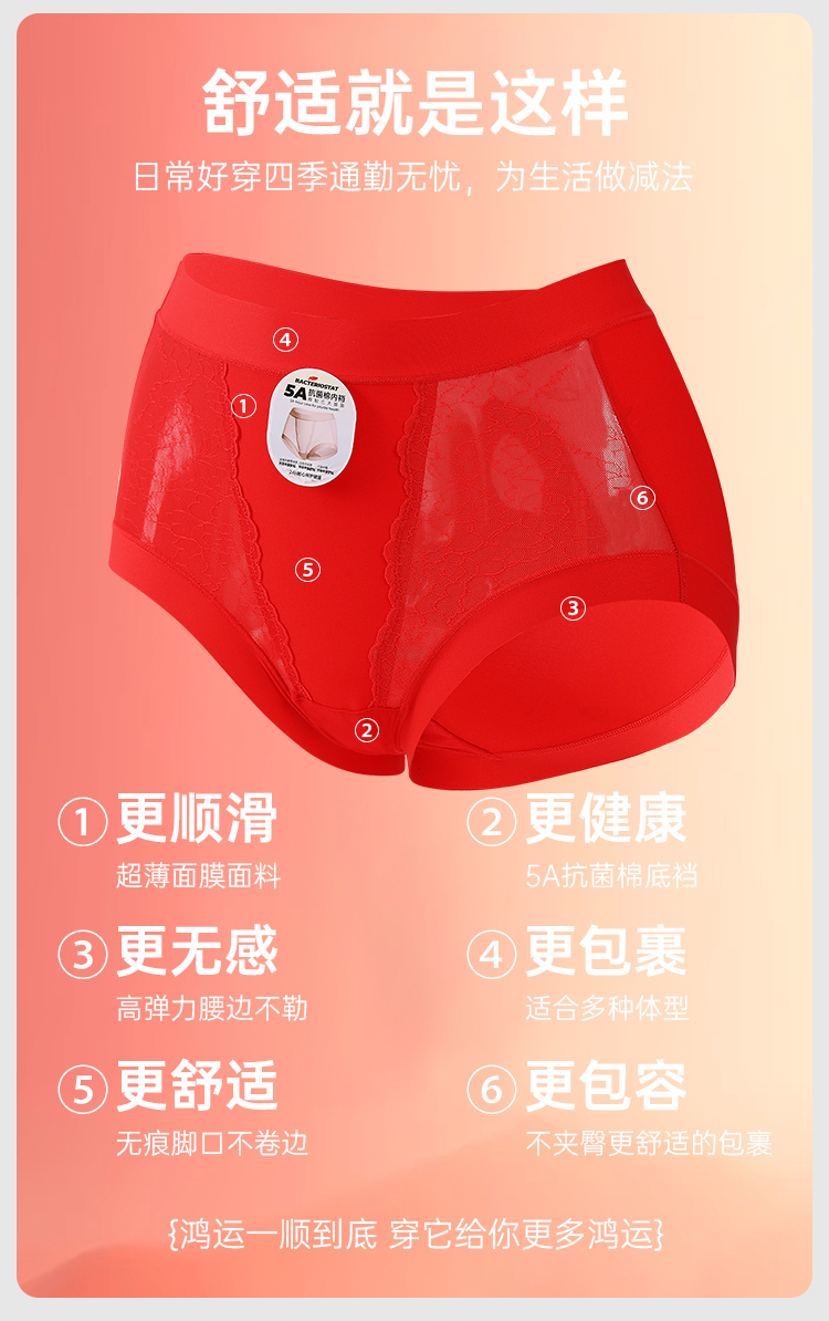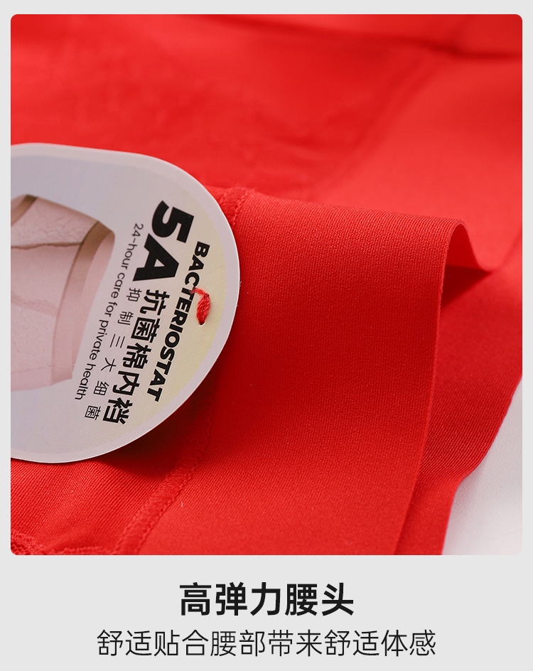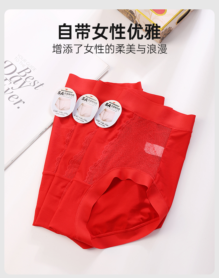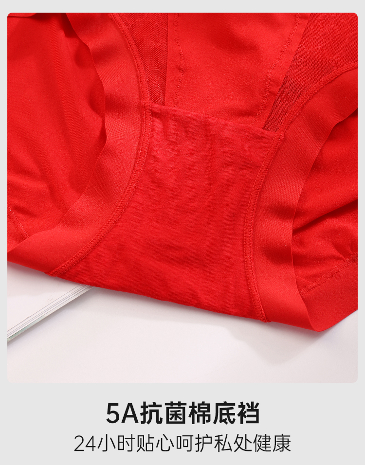 美奈川红色超薄面膜5A抗菌女内裤3条装均码dk15478-1