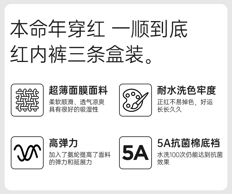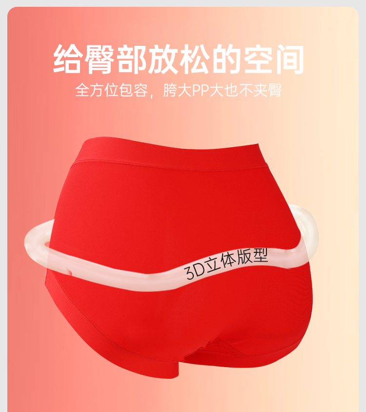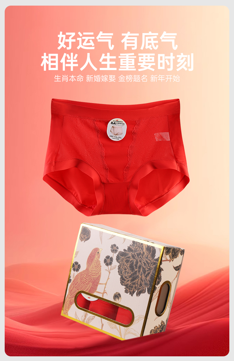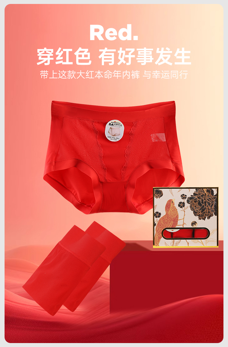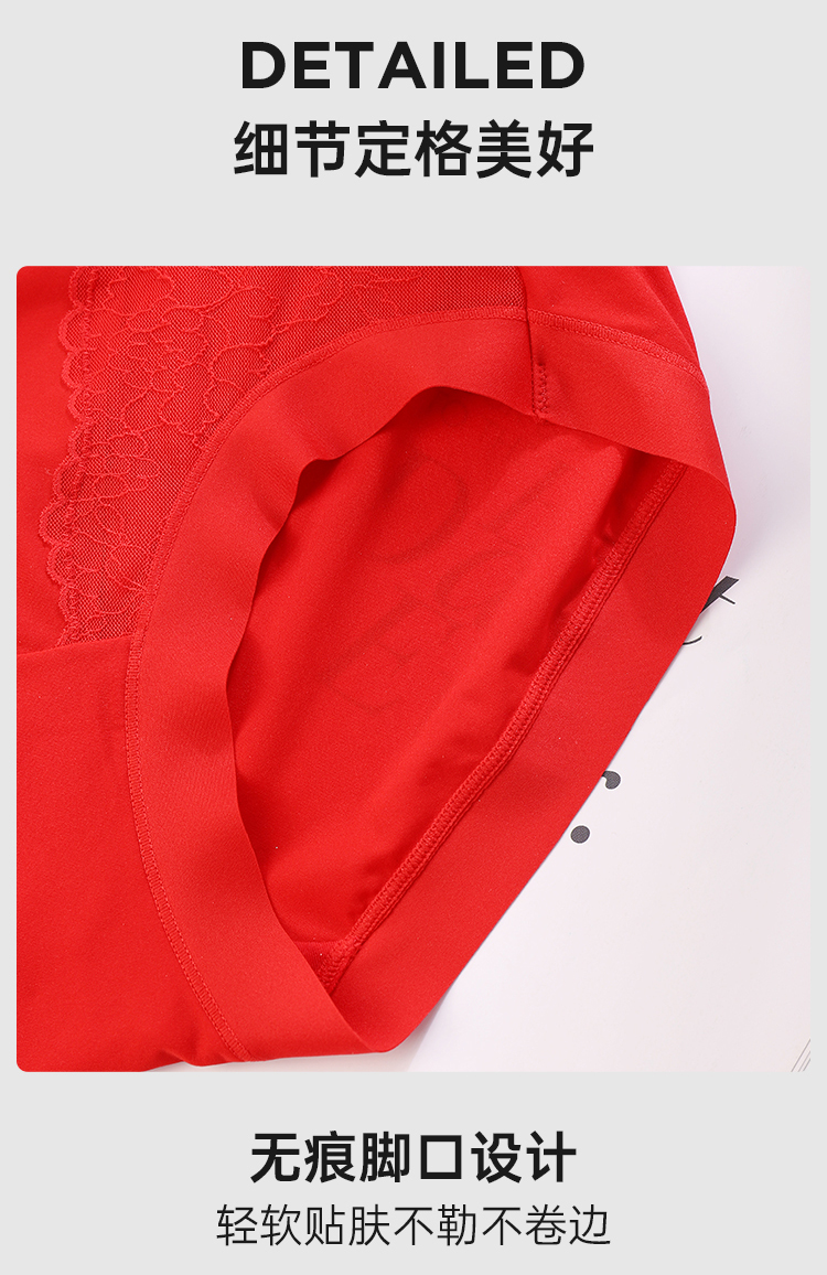 美奈川红色超薄面膜5A抗菌女内裤3条装均码dk15478-1