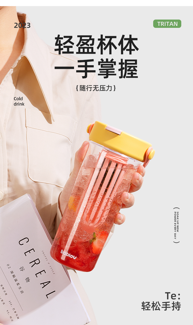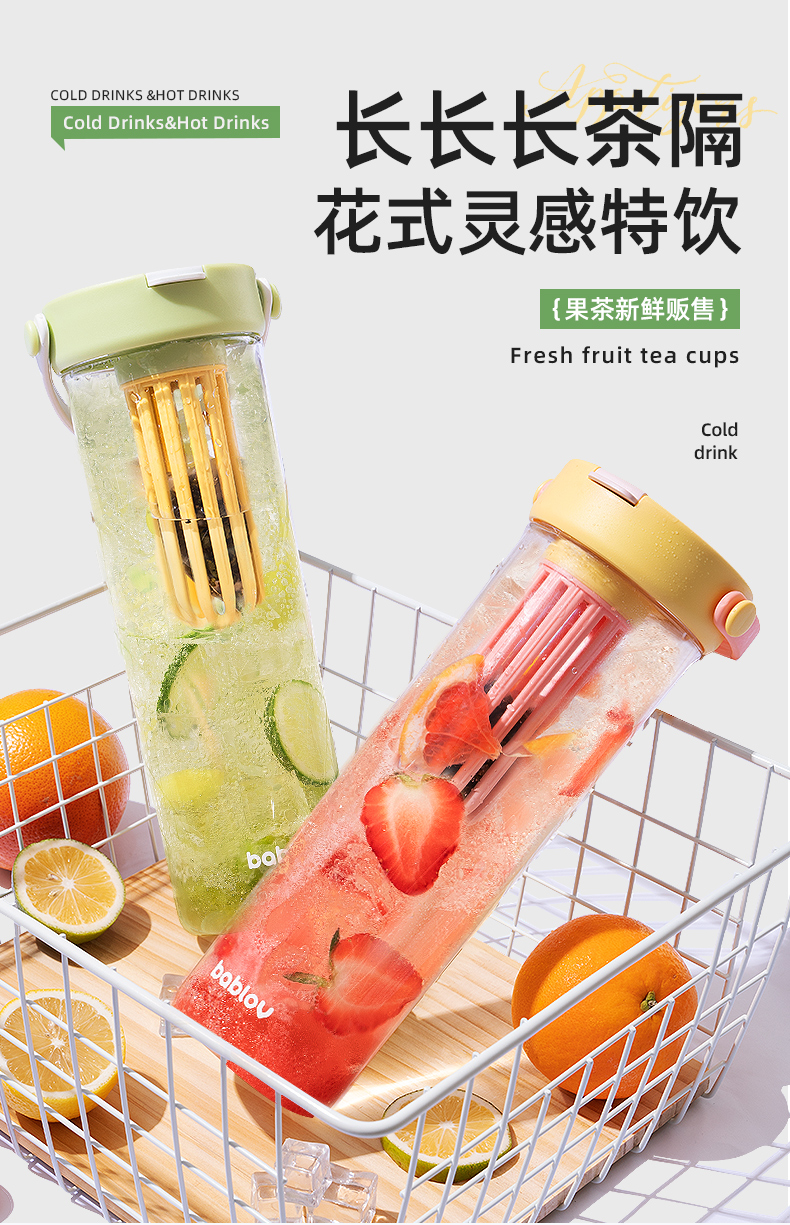 bablov花伴森水杯大容量女生便携吸管杯高颜值茶水分离泡茶tritan杯子夏