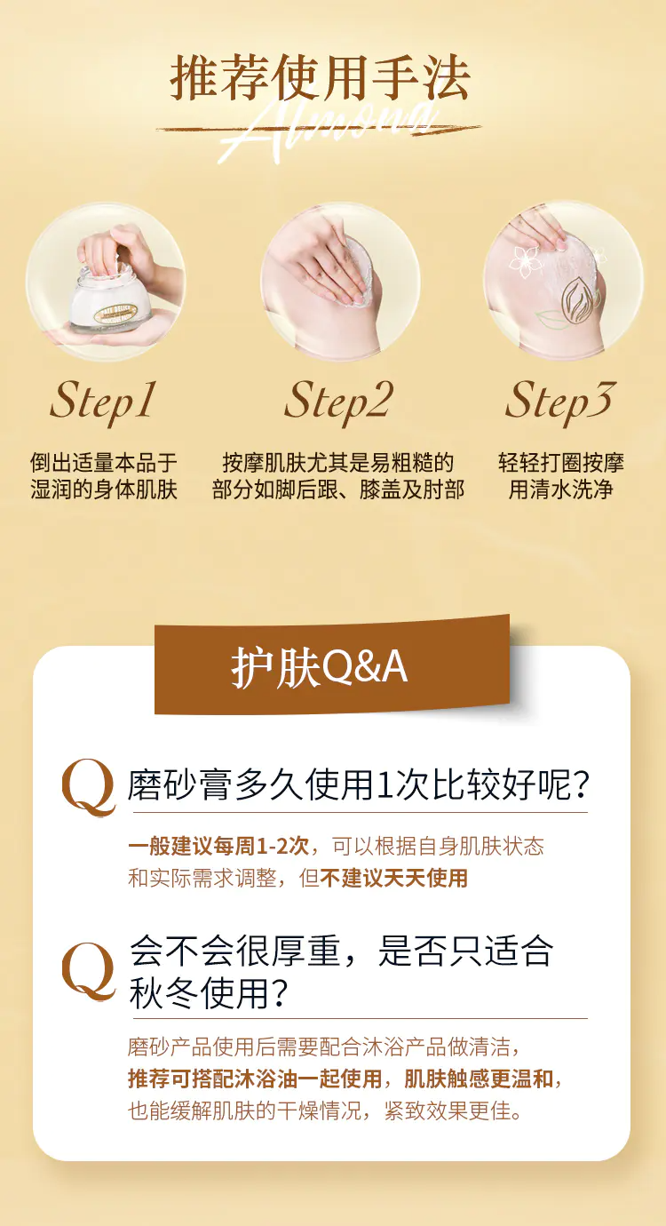 【香港直邮】欧舒丹甜扁桃杏仁紧致磨砂膏200ml 温和清洁保湿滋润去角质