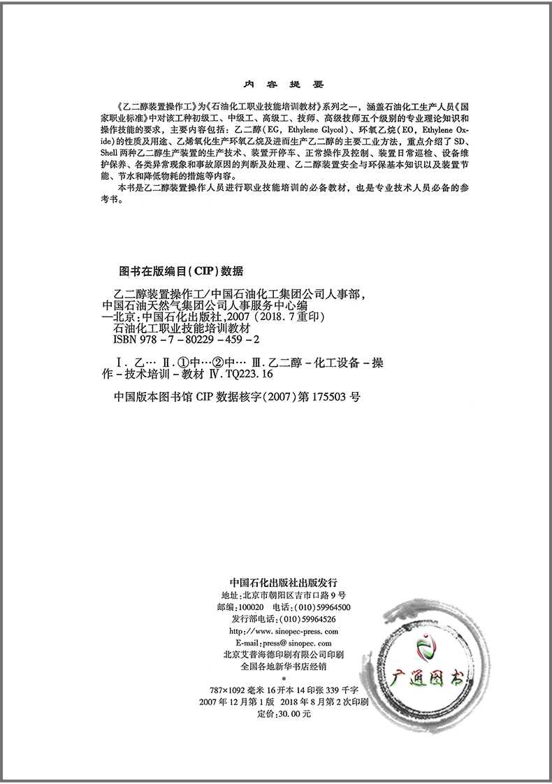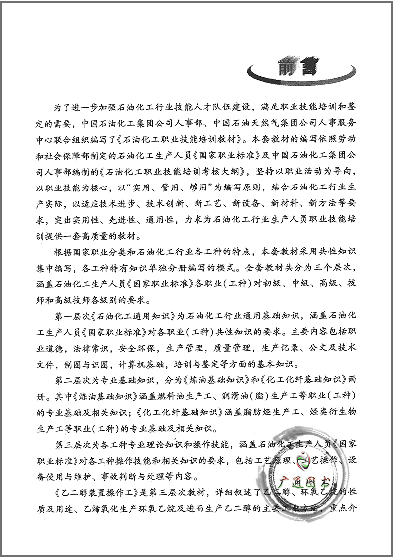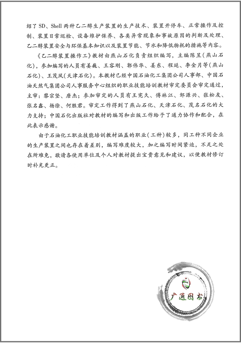 乙二醇装置操作工 石油化工职业技能培训教材 中国石油化工集团公司人事部 中国石化出版社