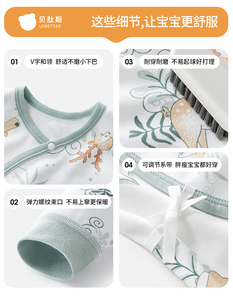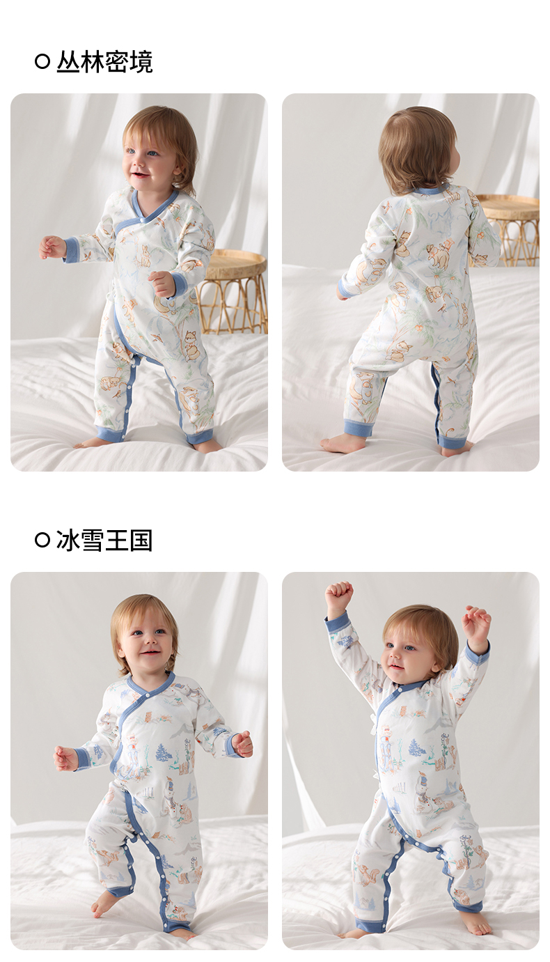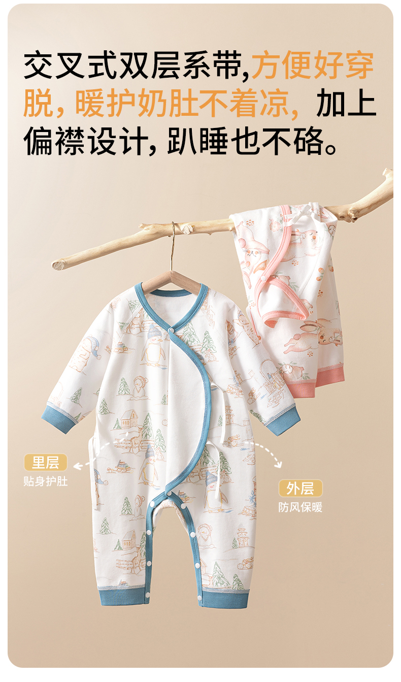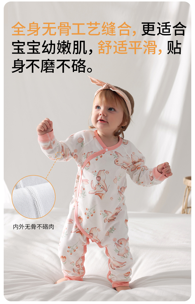 贝肽斯婴儿衣服宝宝连体衣秋装纯棉哈衣夏季薄款爬服四季长袖睡衣
