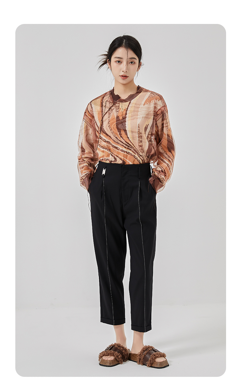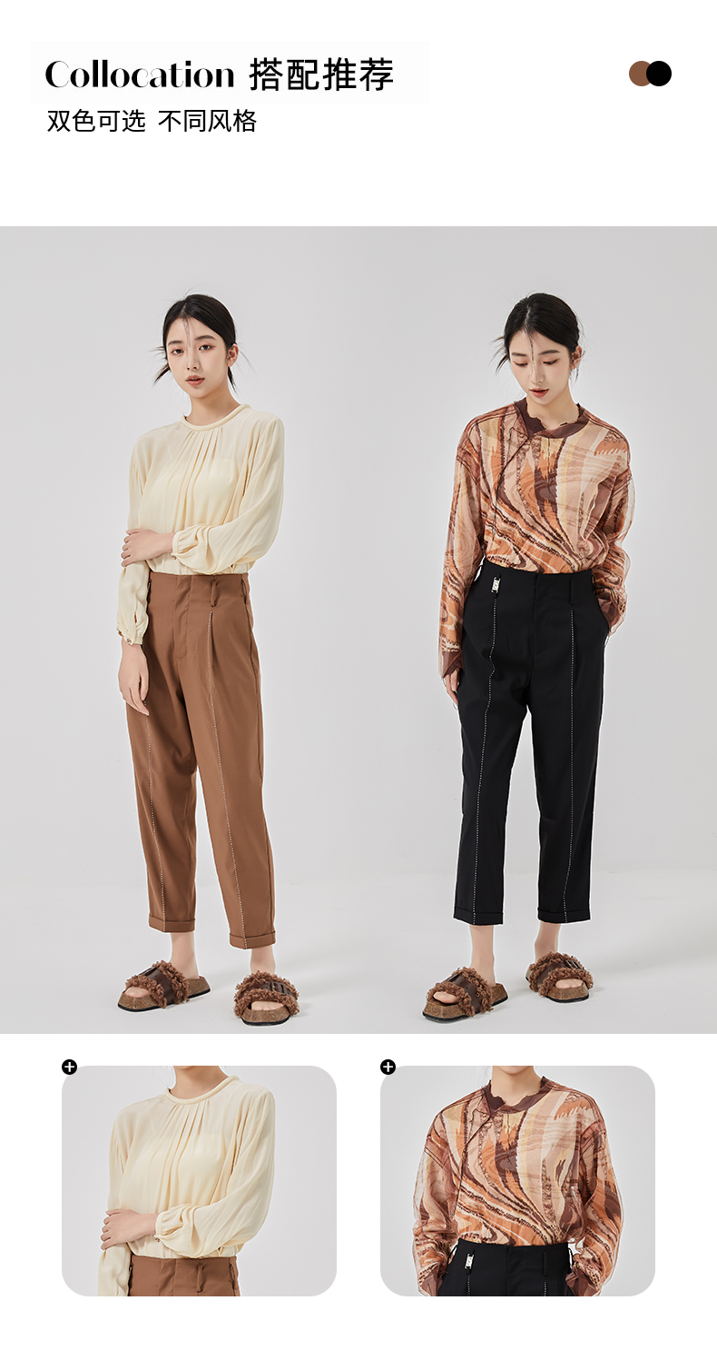 oldcolour2023春季新款复古高腰显瘦直筒九分休闲裤女O11073101