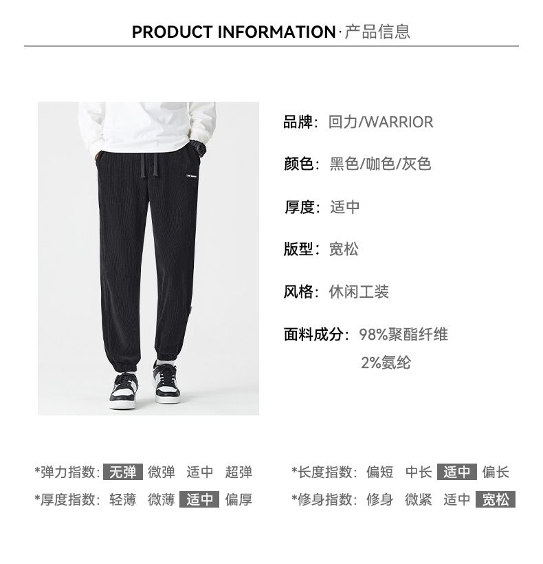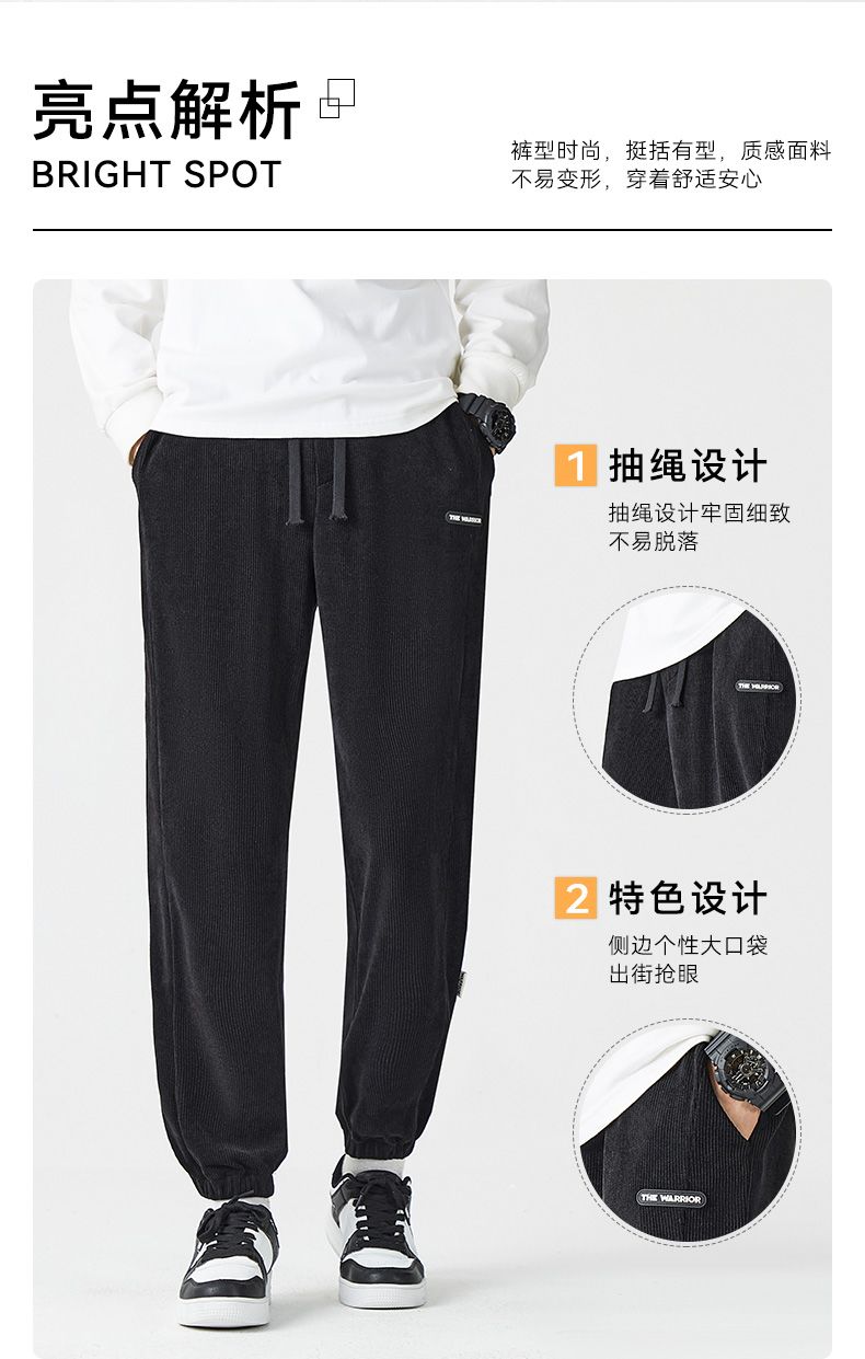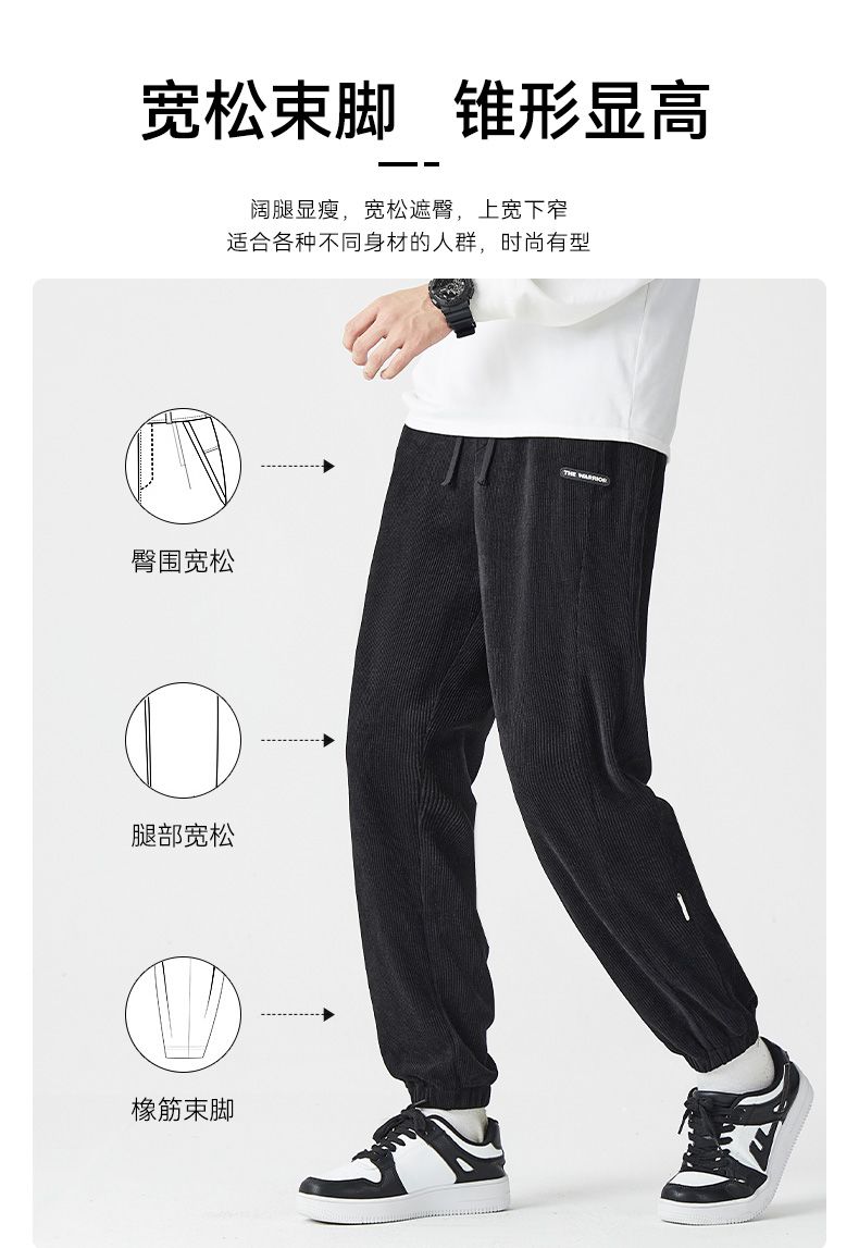 回力裤子男2025春秋新款美式灯芯绒潮流束脚运动休闲长裤