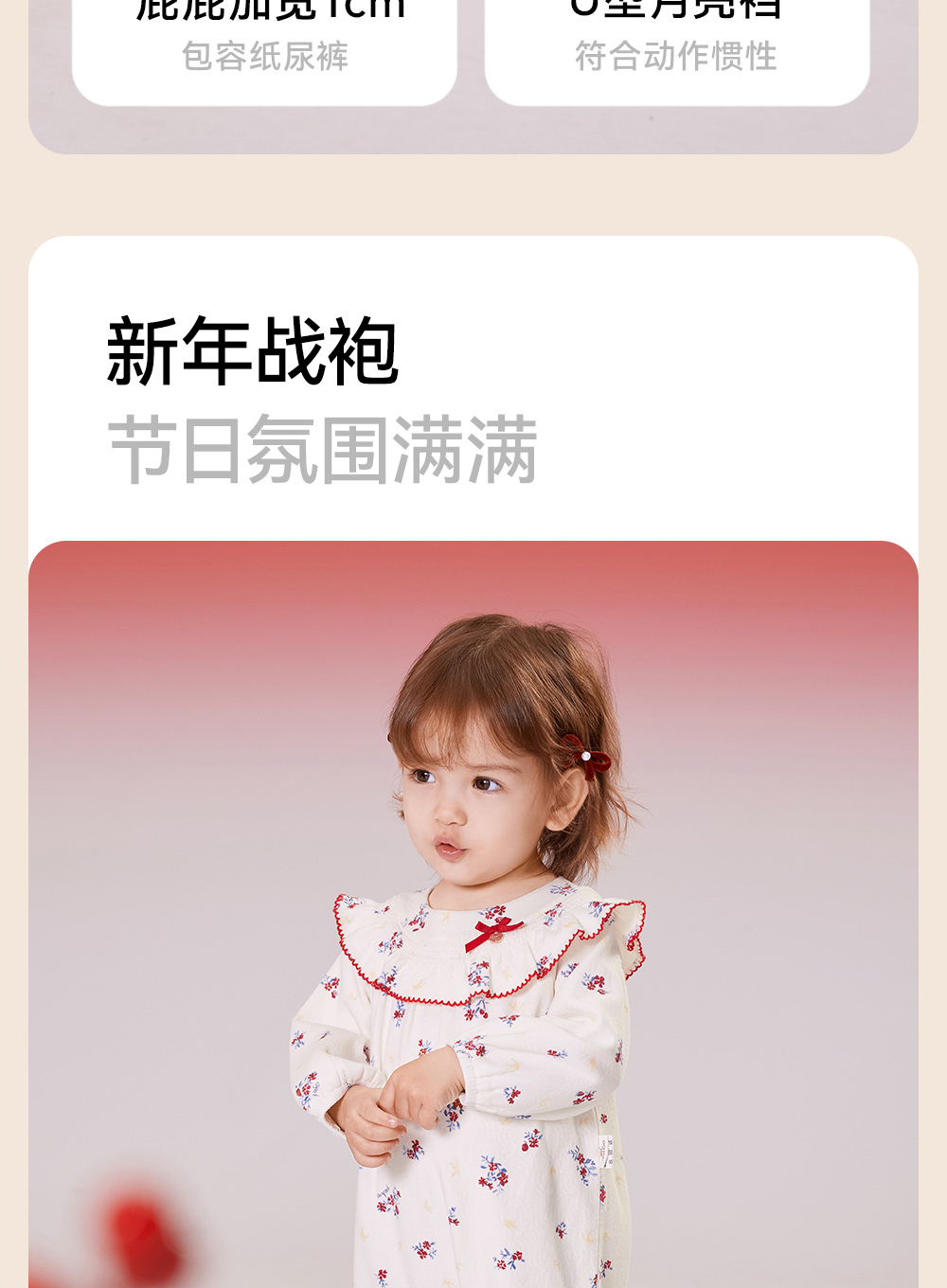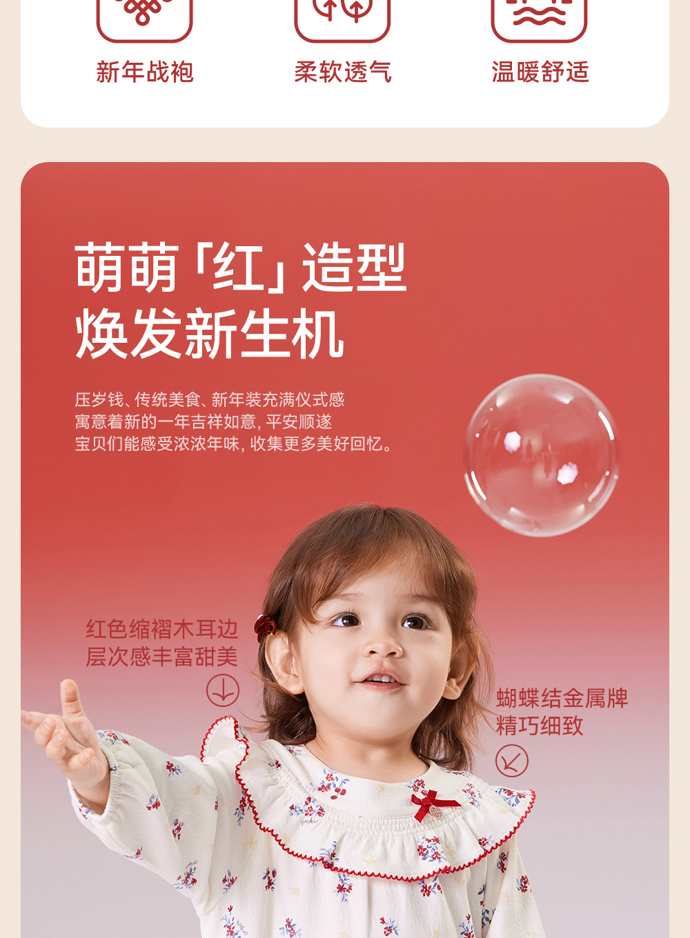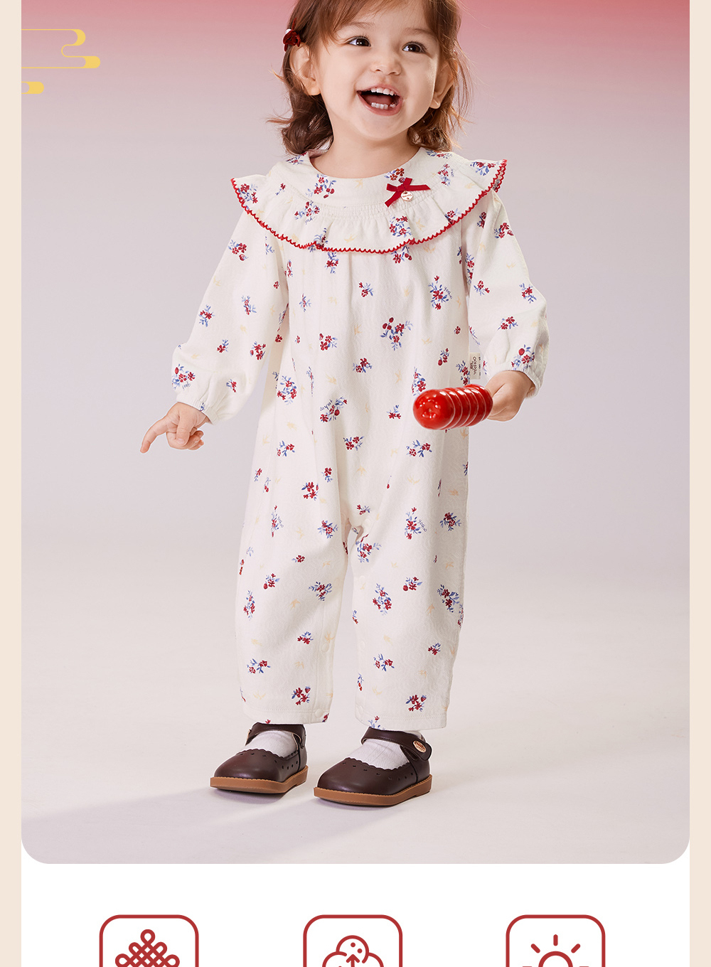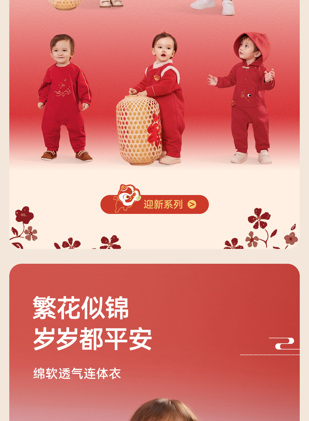 英氏女童衣服纯棉长袖新年喜庆连体衣2025新款拜年服YRHAJ1R008A
