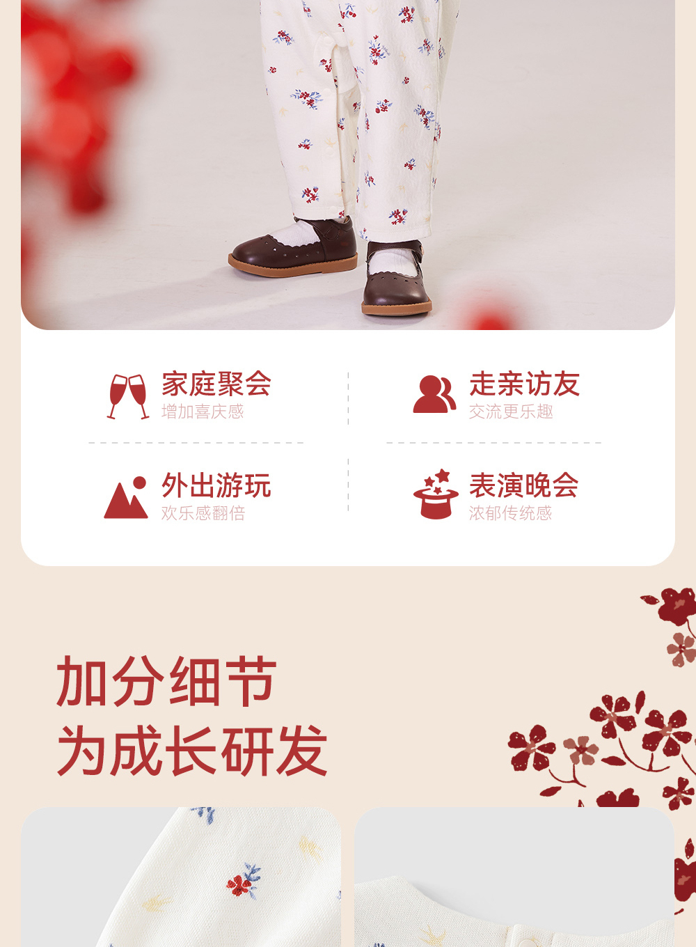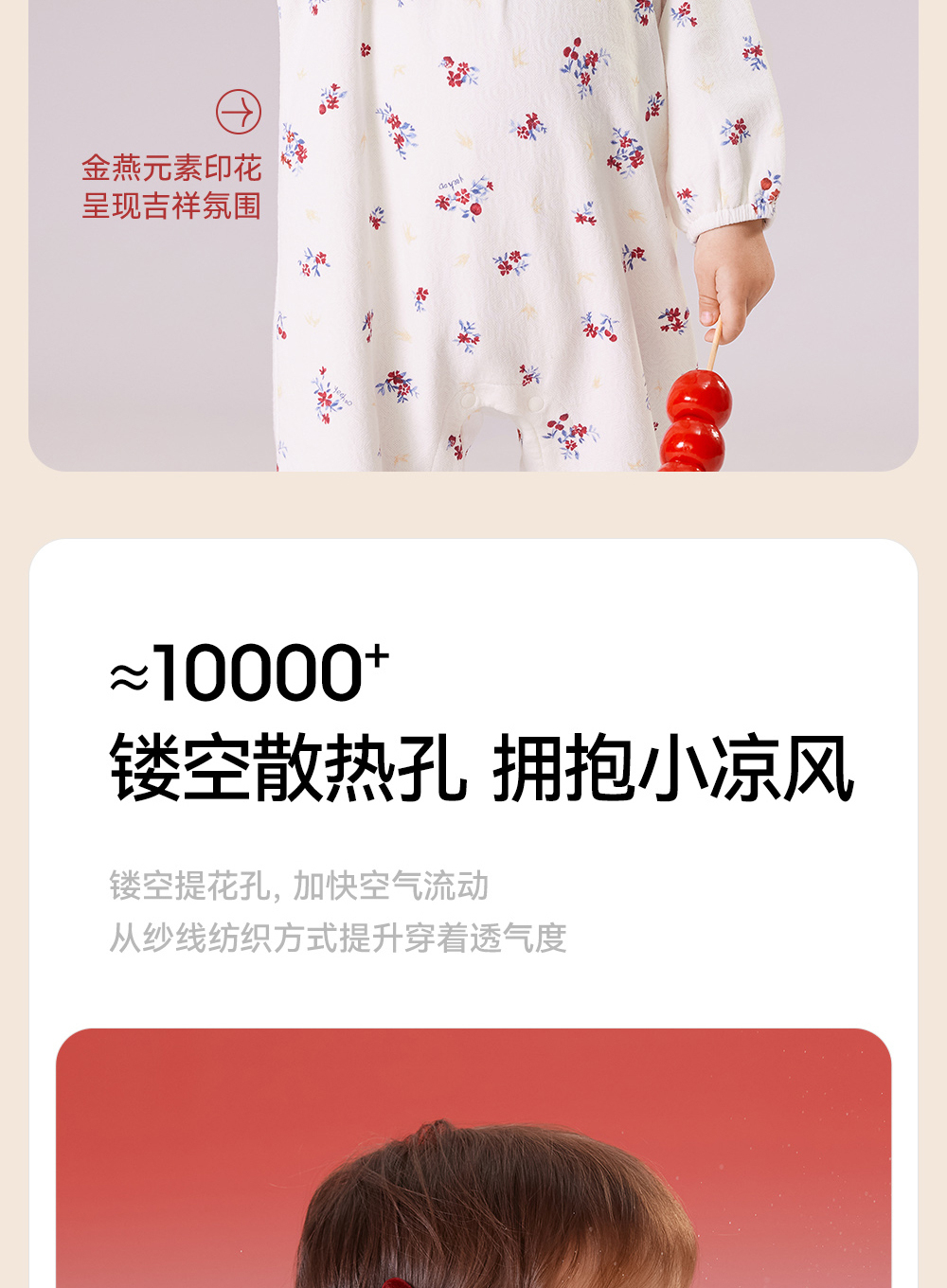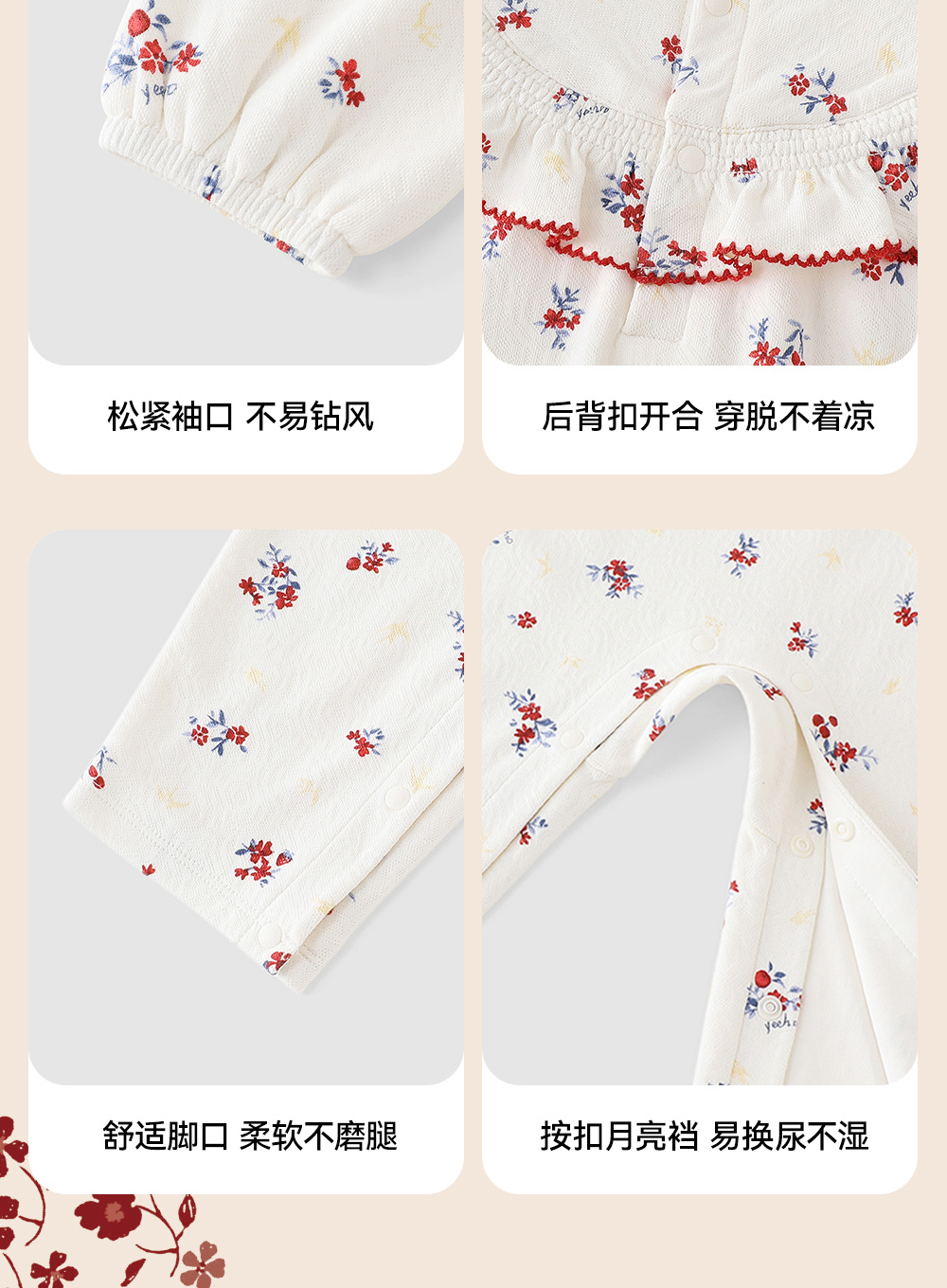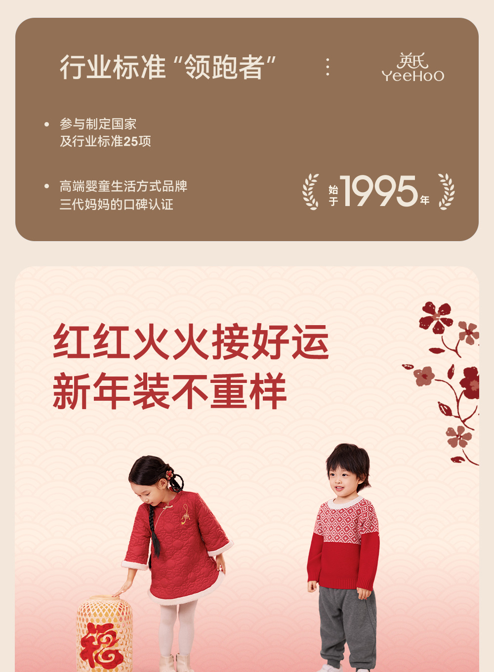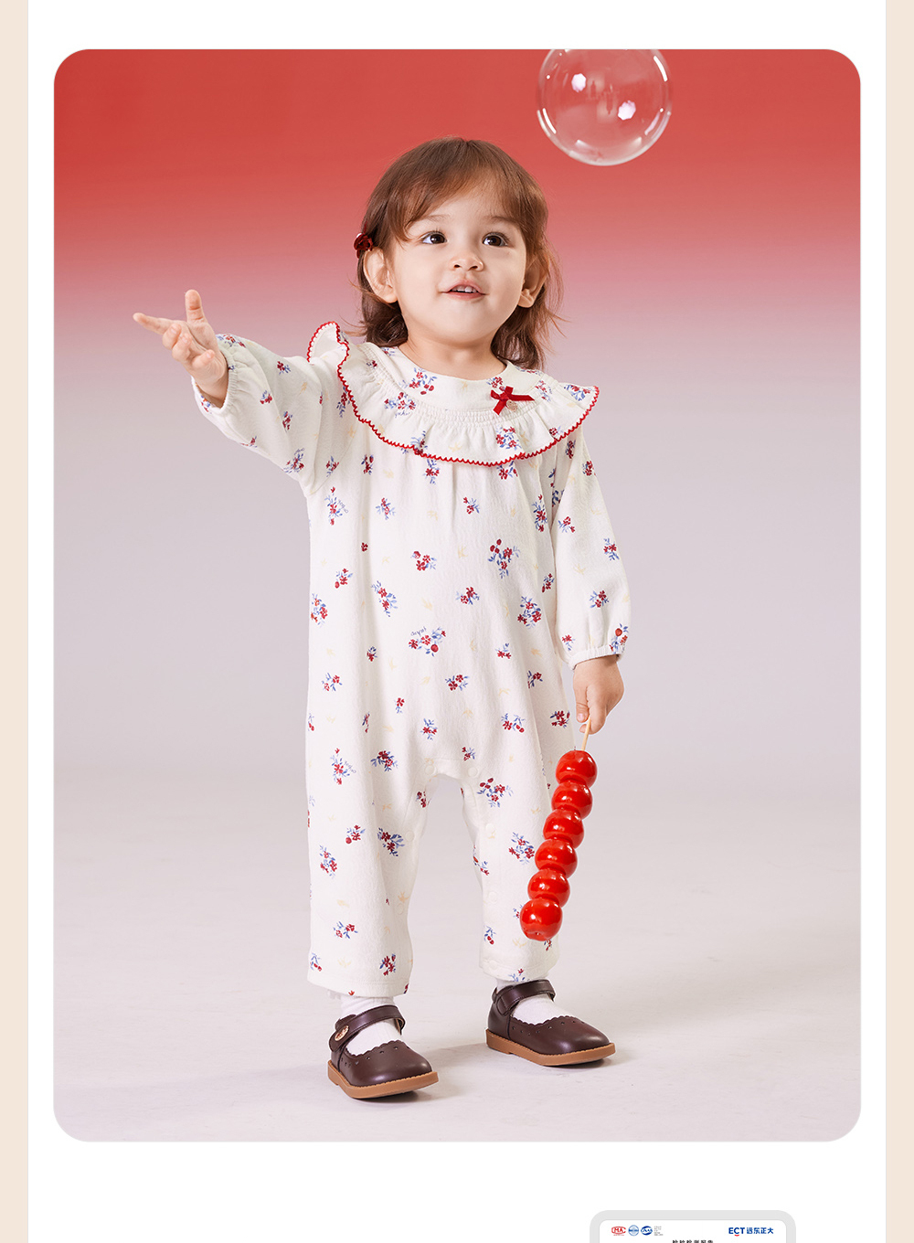 英氏女童衣服纯棉长袖新年喜庆连体衣2025新款拜年服YRHAJ1R008A
