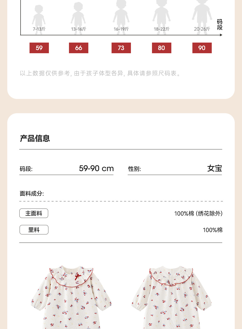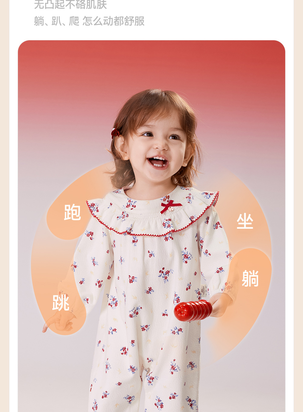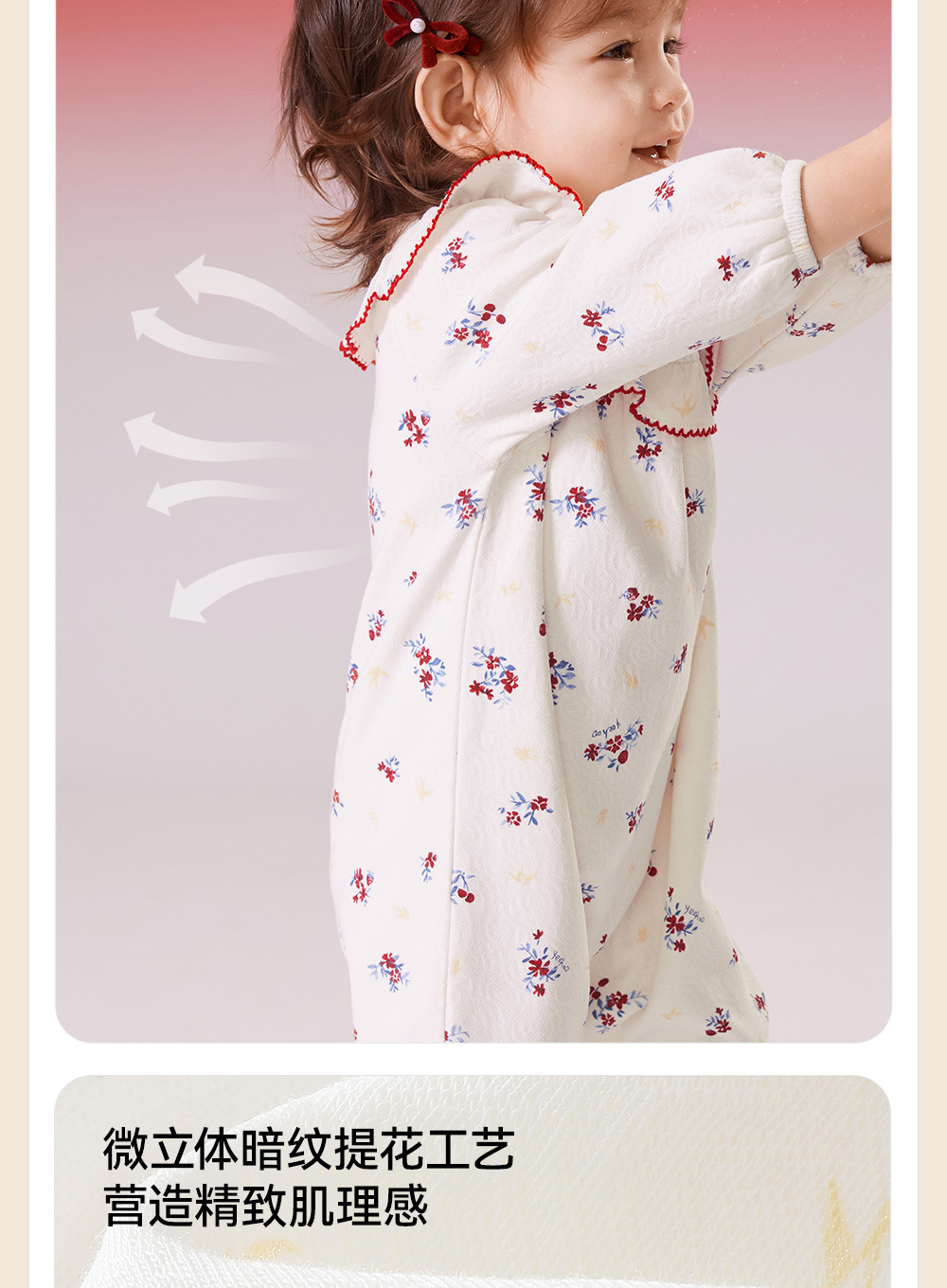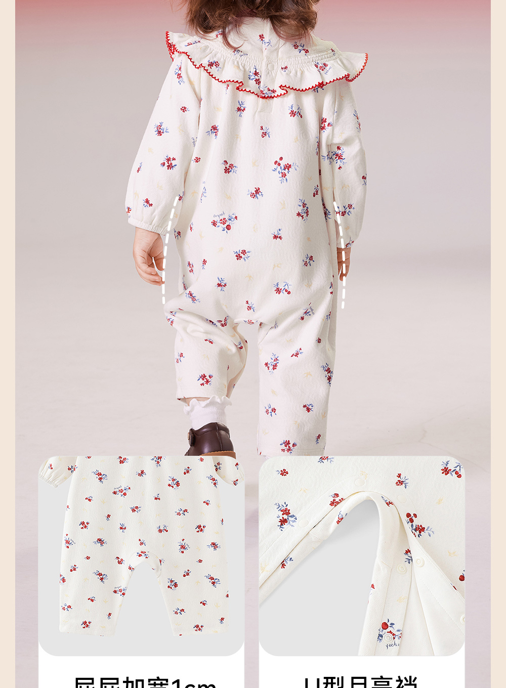 英氏女童衣服纯棉长袖新年喜庆连体衣2025新款拜年服YRHAJ1R008A