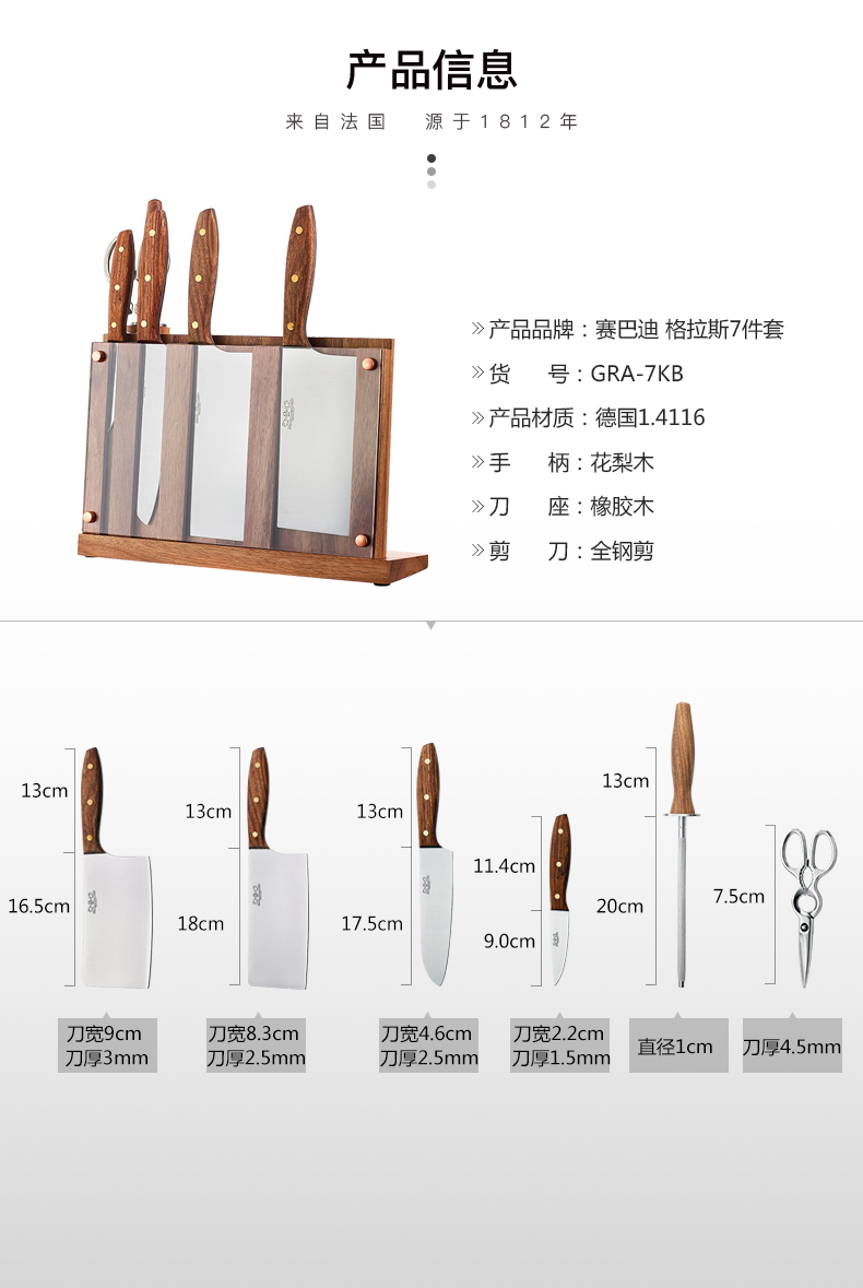 欧洲生活馆 sabatier赛巴迪 格拉斯刀具7件套,GRA-7KB