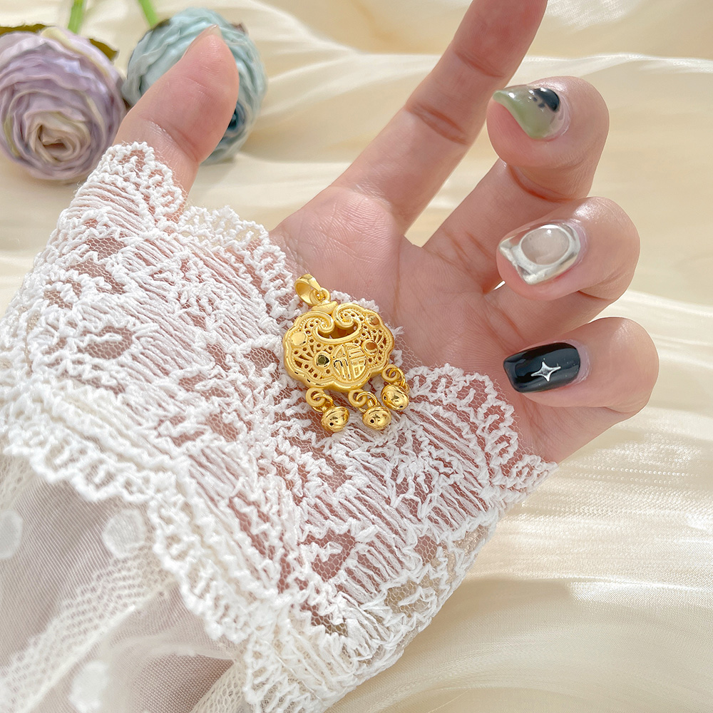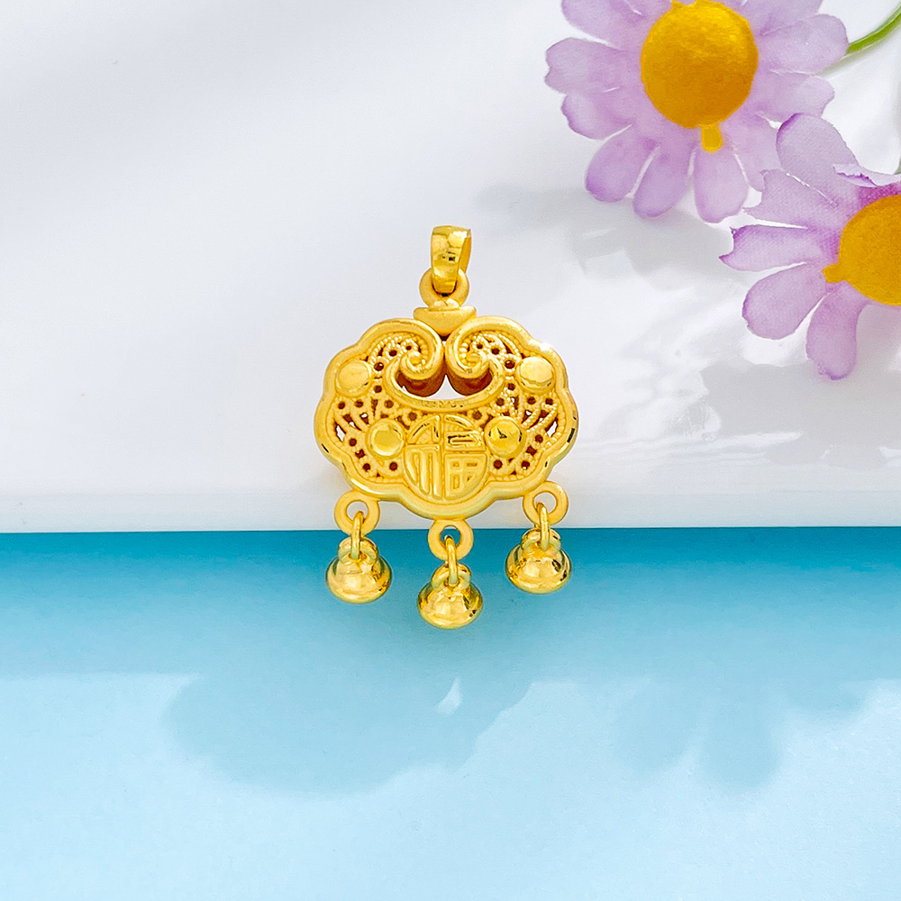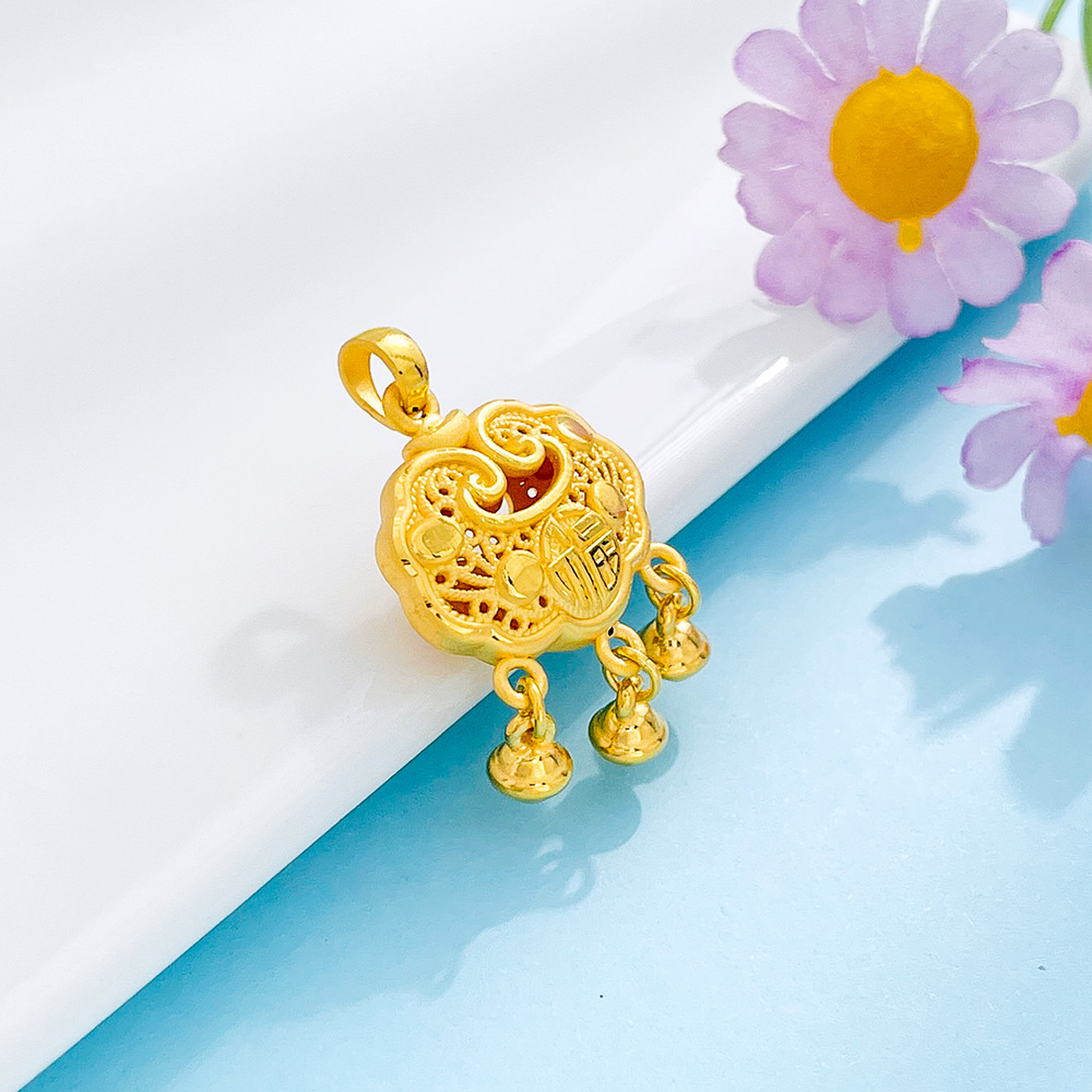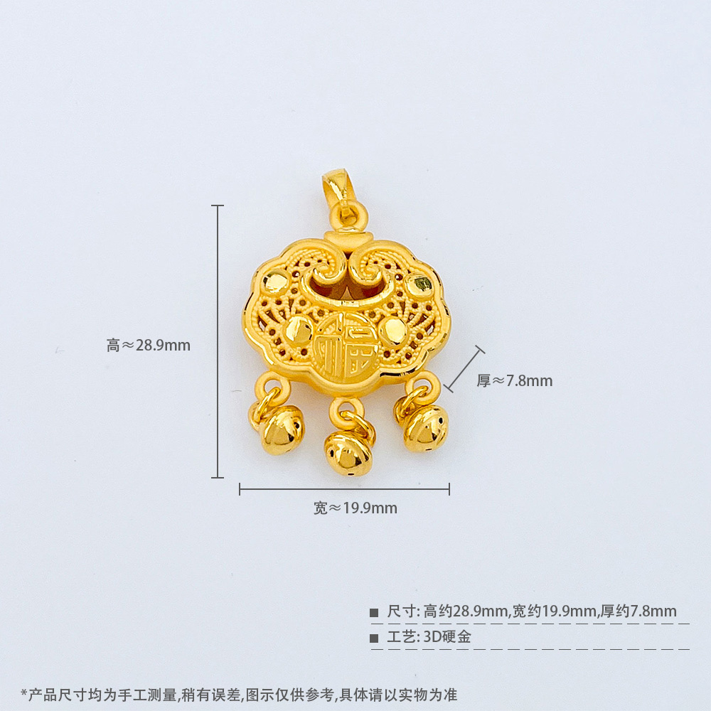 【限时克减150元】足金 #儿童/宝宝 3D硬金双面铃铛镂空如意福字锁包吊坠网红锁包吊坠(铃铛不响)(AR3DDZ00169-1)(预售产品下单后不退款不退货不换货不补差价)