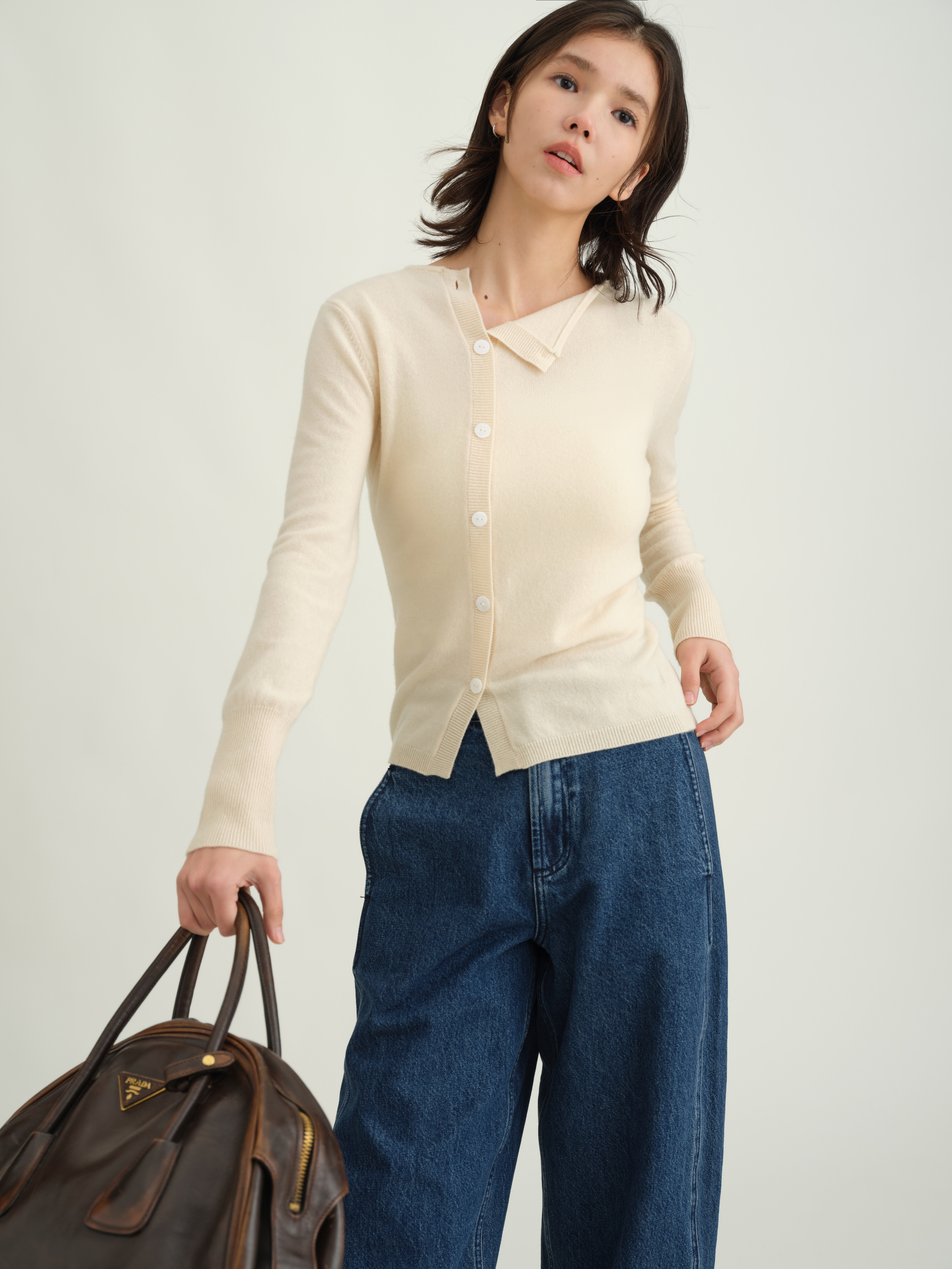 shyshystill/shy202401008/斜门襟设计羊毛一字领套头修身毛衣