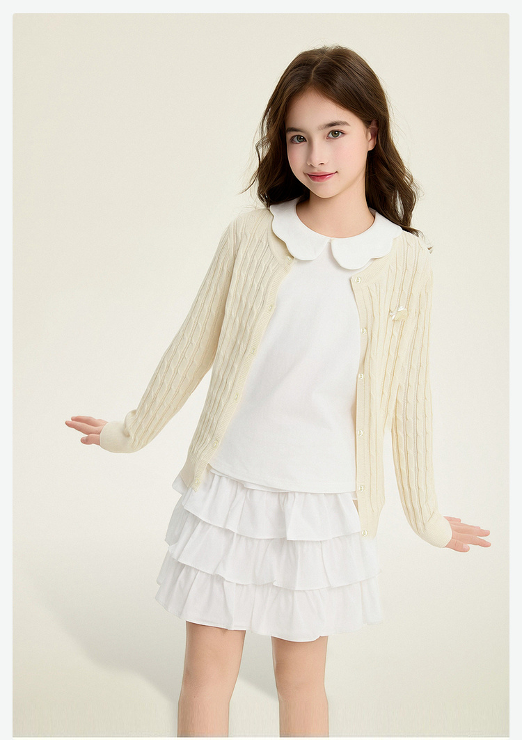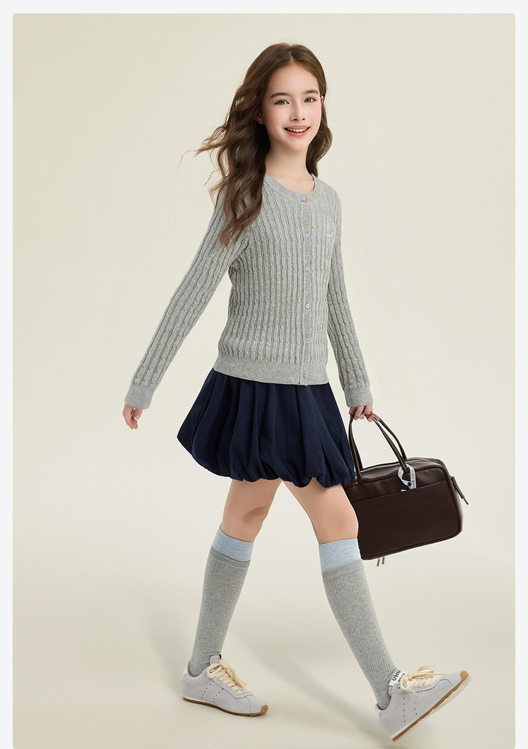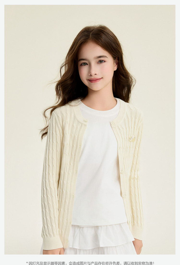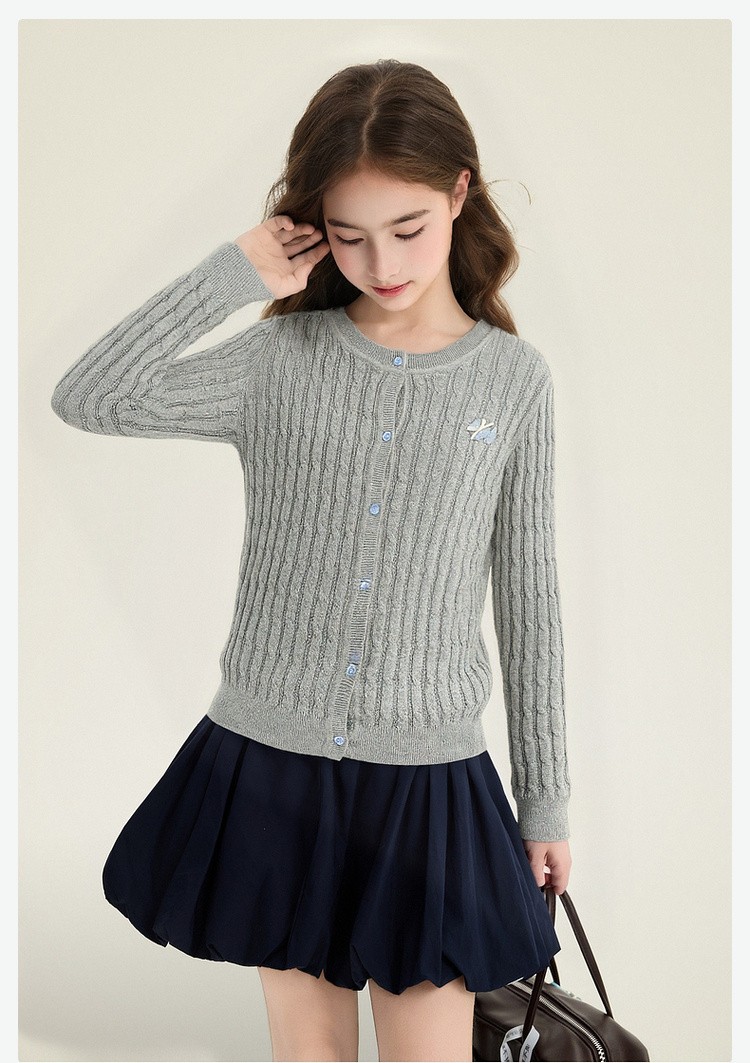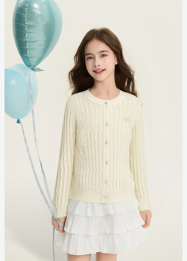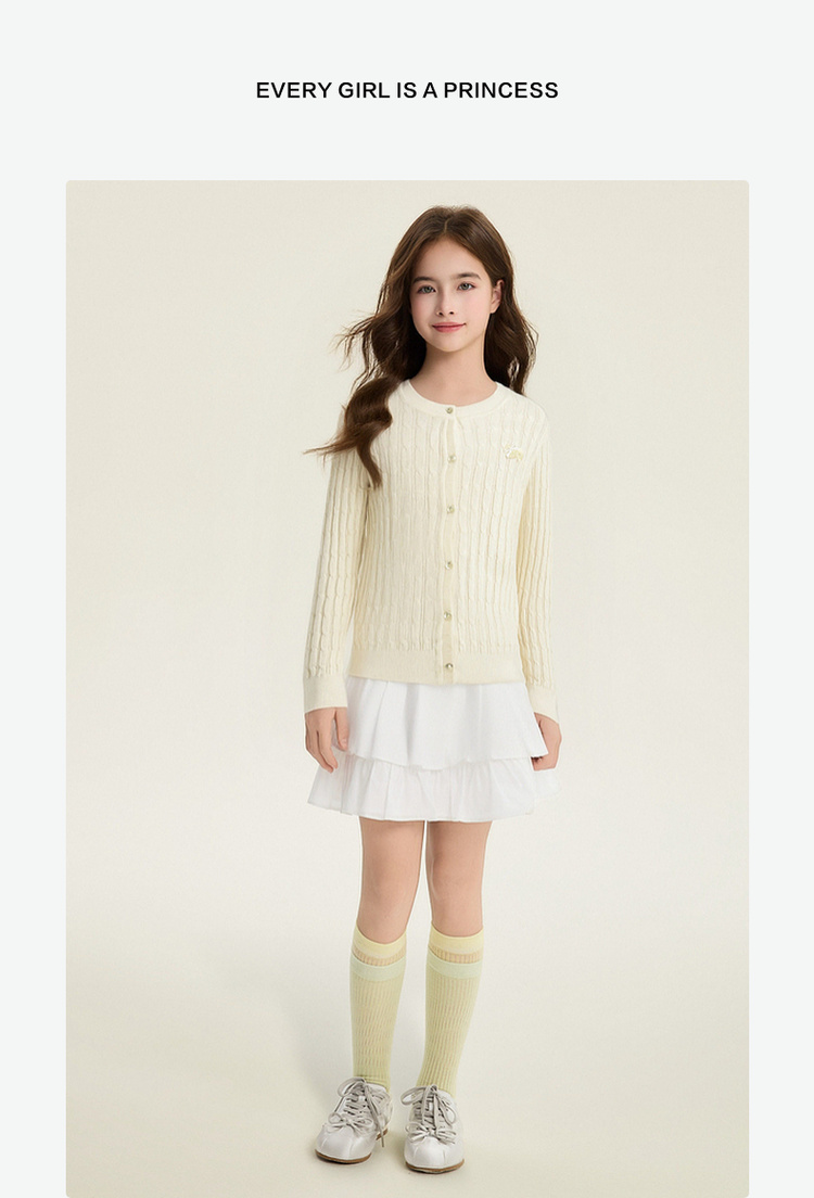 笛莎Deesha 童装女童毛衫2026春新款百搭好穿绞花针织开衫