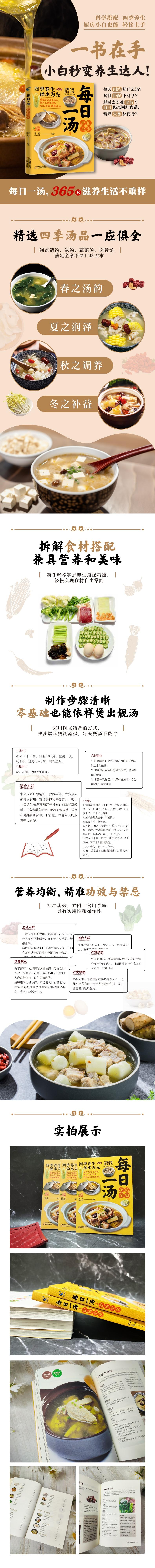 本书立意新颖,富有情感,旨在强调汤品在家庭健康和幸福中的重要性。文案整体结构清晰,语言流畅,具有一定的吸引力和感染力。本书提供了多种汤谱,从调理功效到适合人群都作了具体说明,通俗易懂,让人们根据自身感受对汤书从了解再到应用,通过饮汤以达到调理身体,增强体质的目的。煲汤类图书在市场上的情况可以说是比较丰富和多样的。煲汤不仅在中国传统食疗中占有重要地位,也因其营养丰富、易于消化吸收而受到全球范围内的关注。
