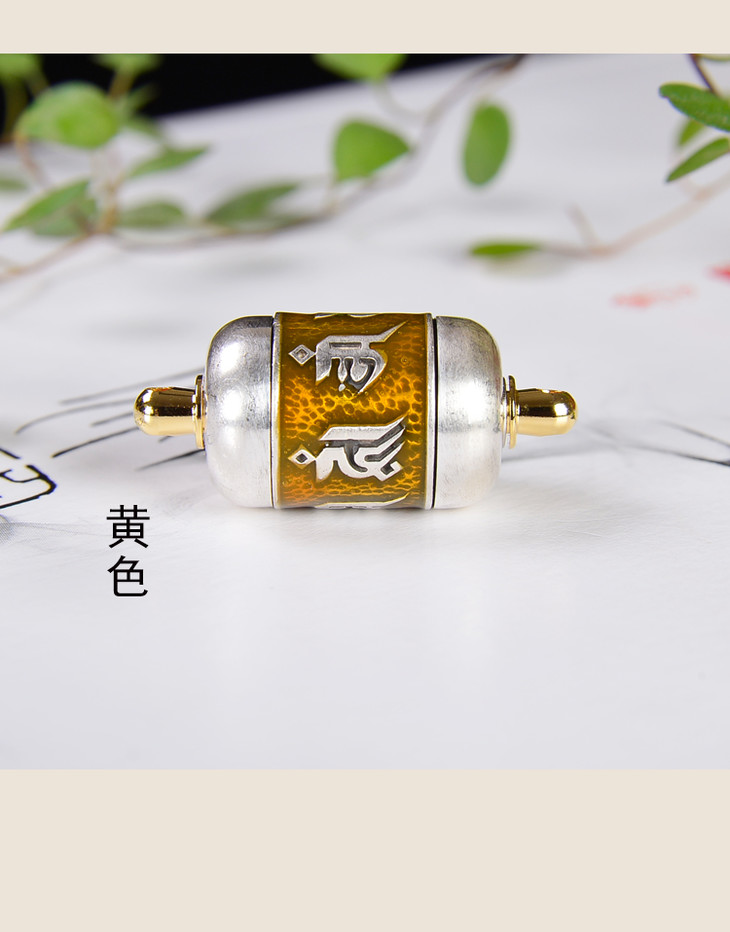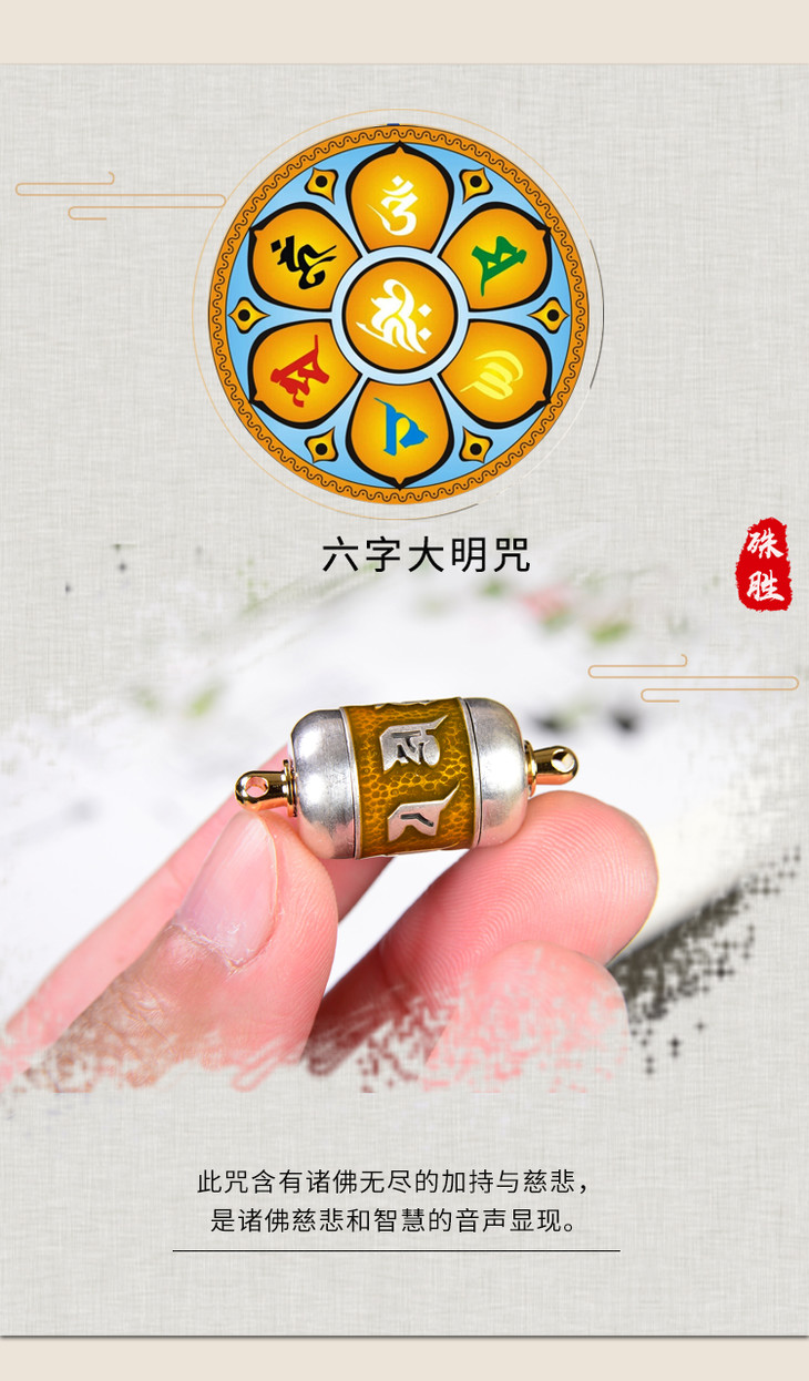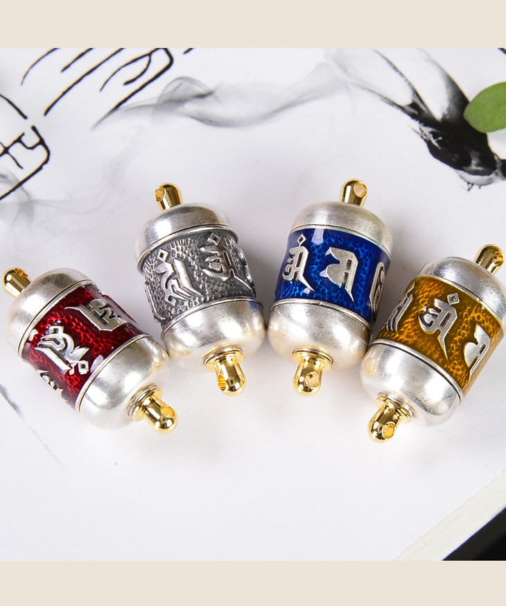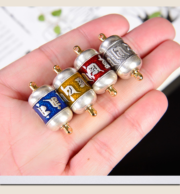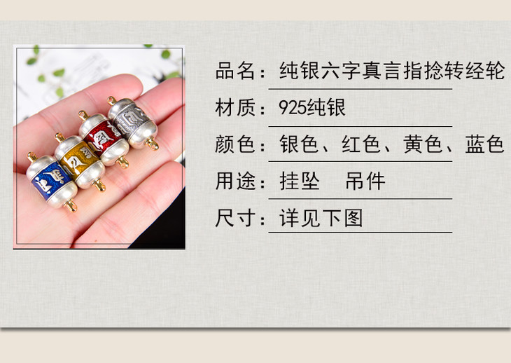 银吊坠佛堂供品宗用品辟邪护身六字真言吊坠随身转经轮吊坠四款颜色