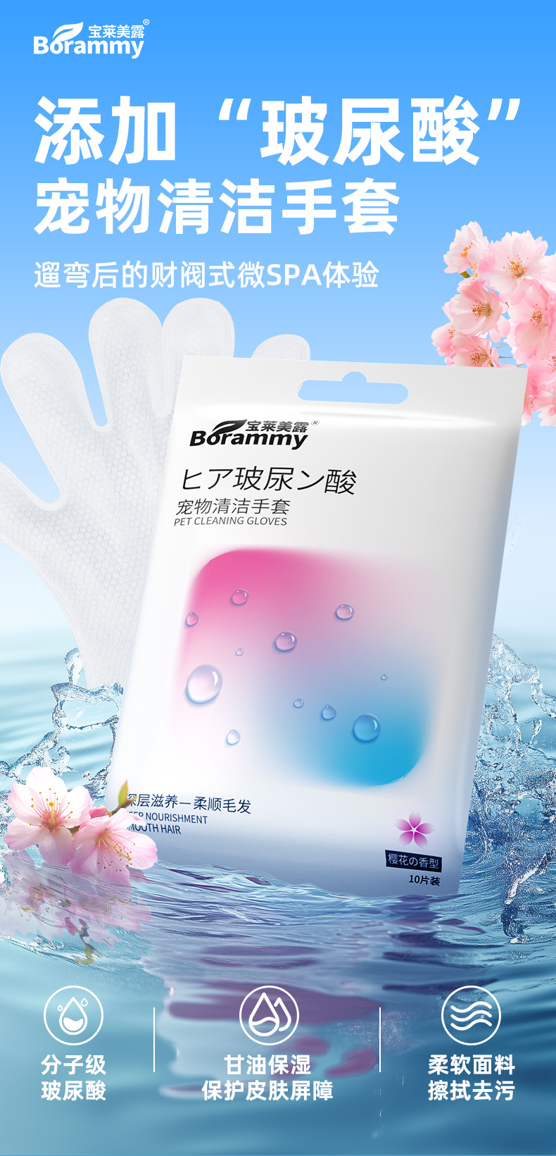 宝莱美露免洗手套10片装 加大加厚 可舔舐 宠物清洁工具批发