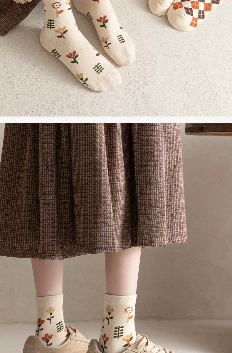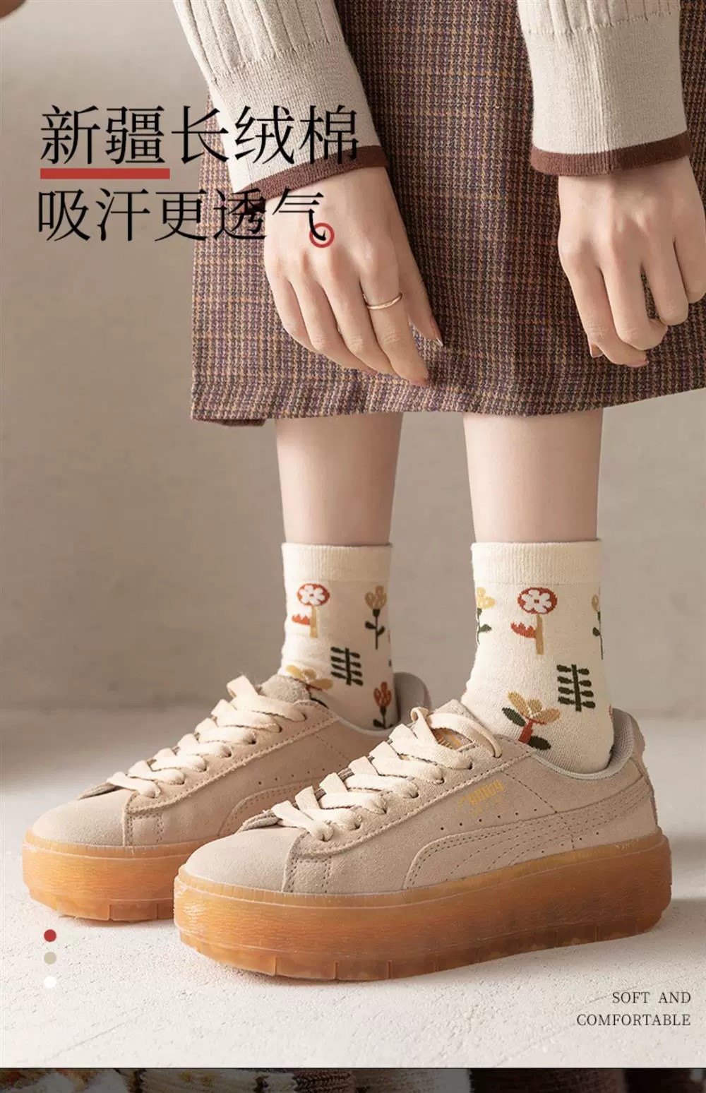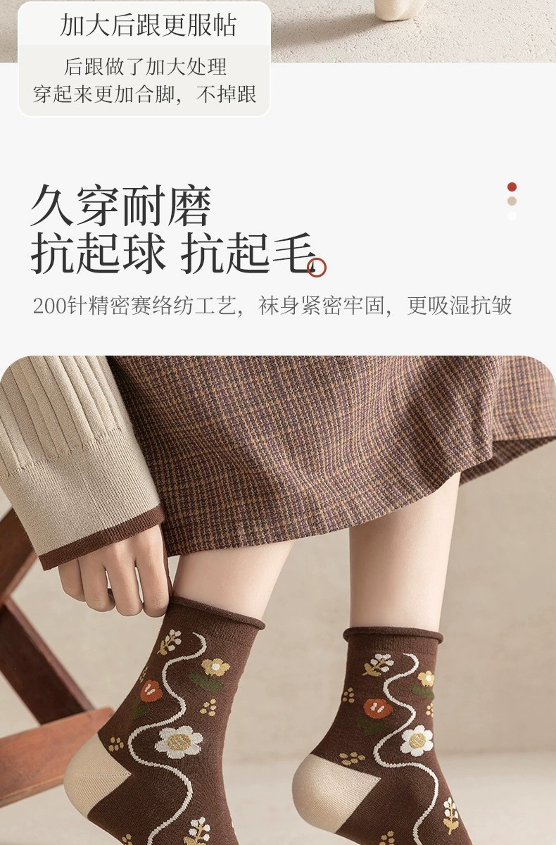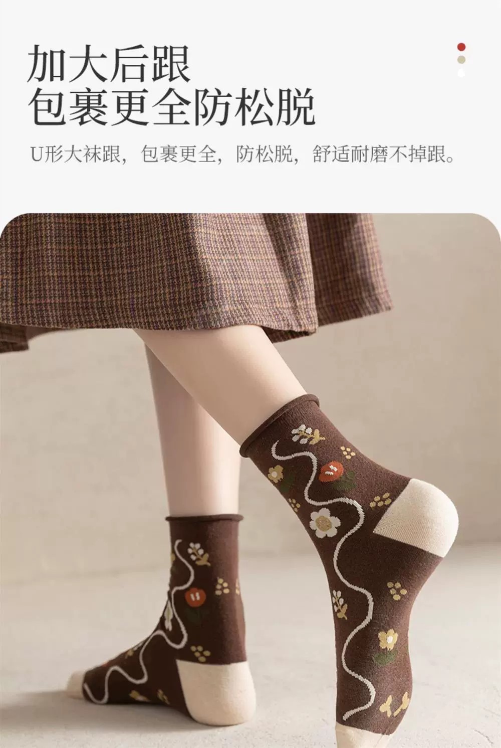 【碎花复古四季袜】袜子女秋冬中筒袜春秋棉袜吸汗袜棉袜复古四季女生袜