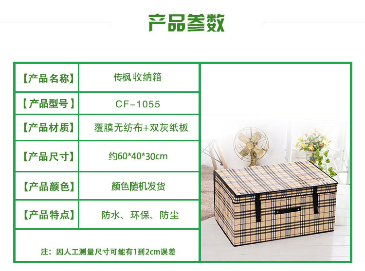 传枫 收纳盒 收纳箱大号有盖折叠衣物储物箱60X40X30(颜色随机发货) CF-2348