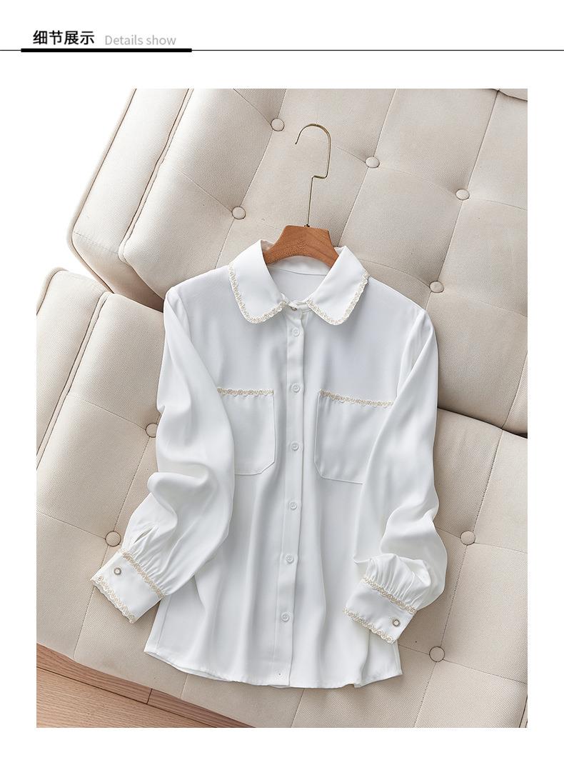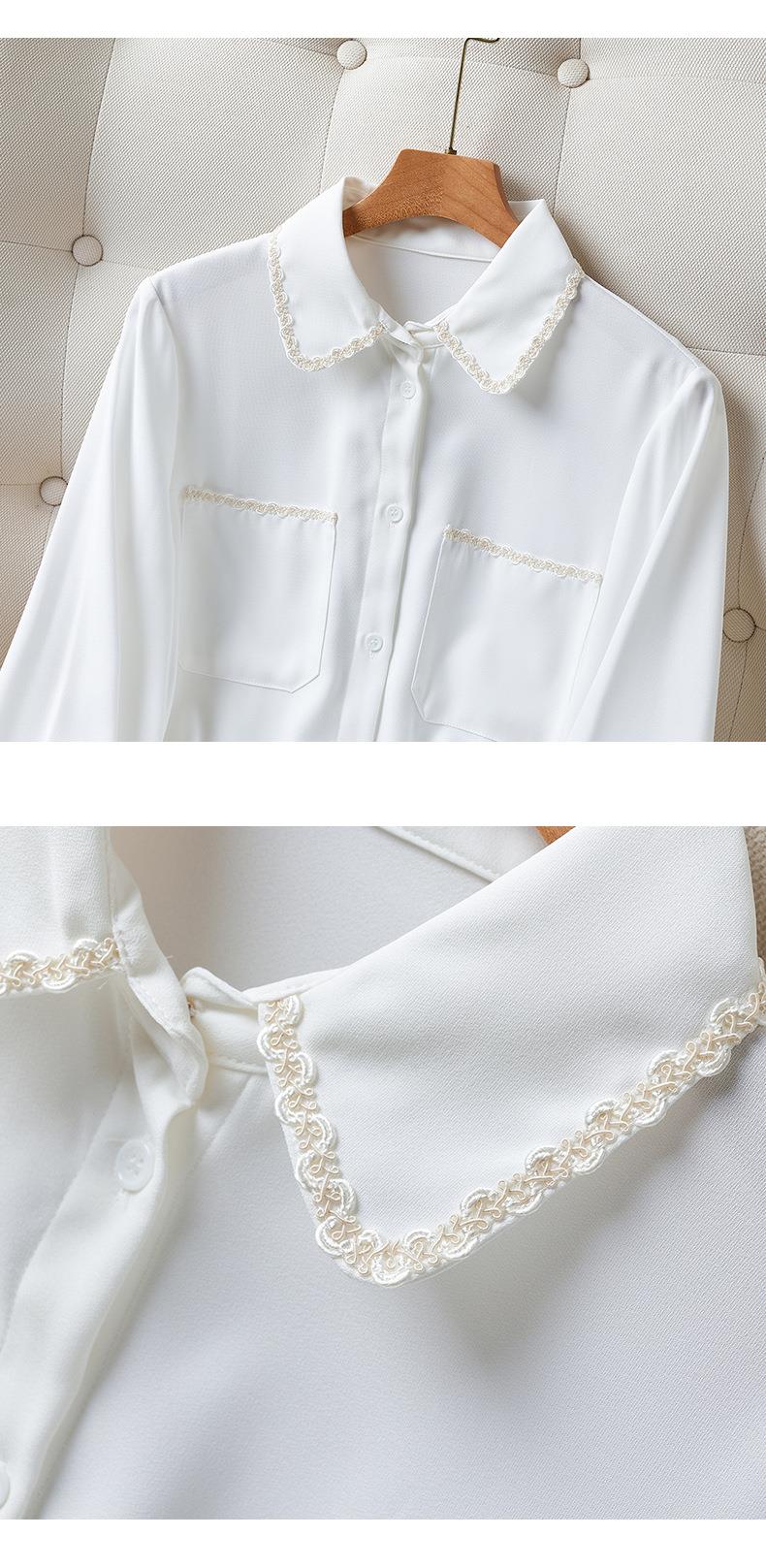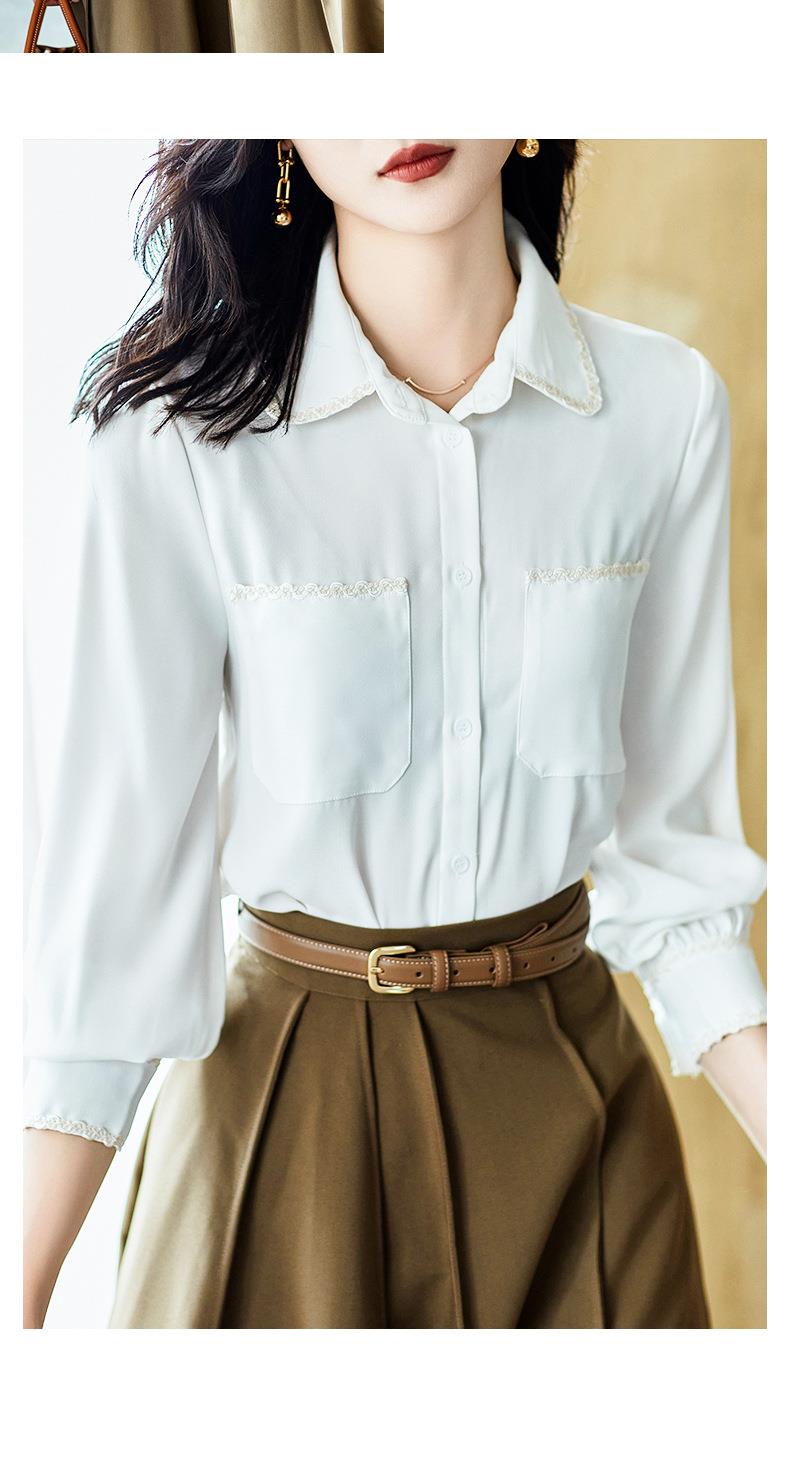2023秋装新款衬衫女长袖宽松雪纺衫白色女士衬衣A1651