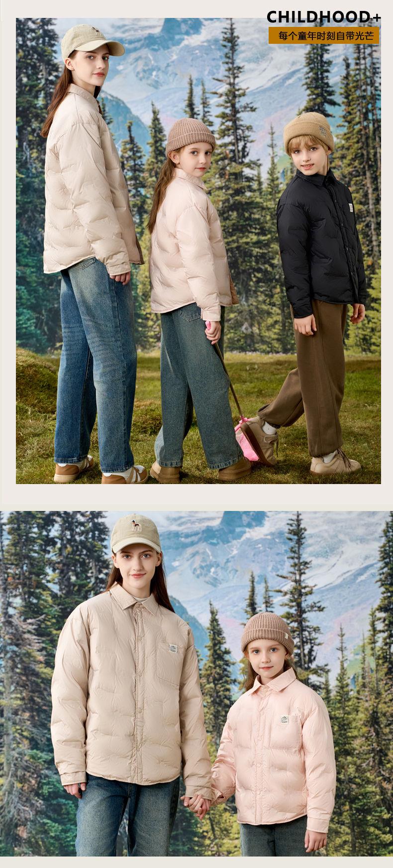 V/雅鹿儿童轻薄羽绒服男女中大童亲子保暖内穿立领外穿秋冬搭外套