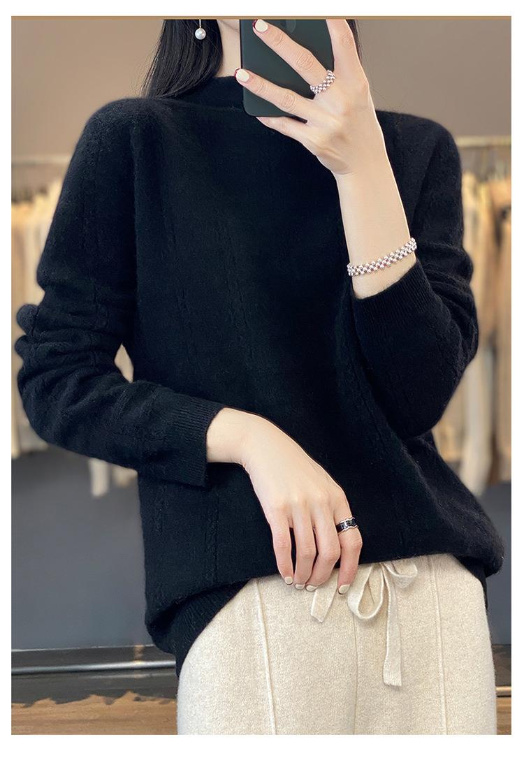 创意款2023秋季韩系风日韩休闲套头半高领常规毛衣女式羊毛衫
