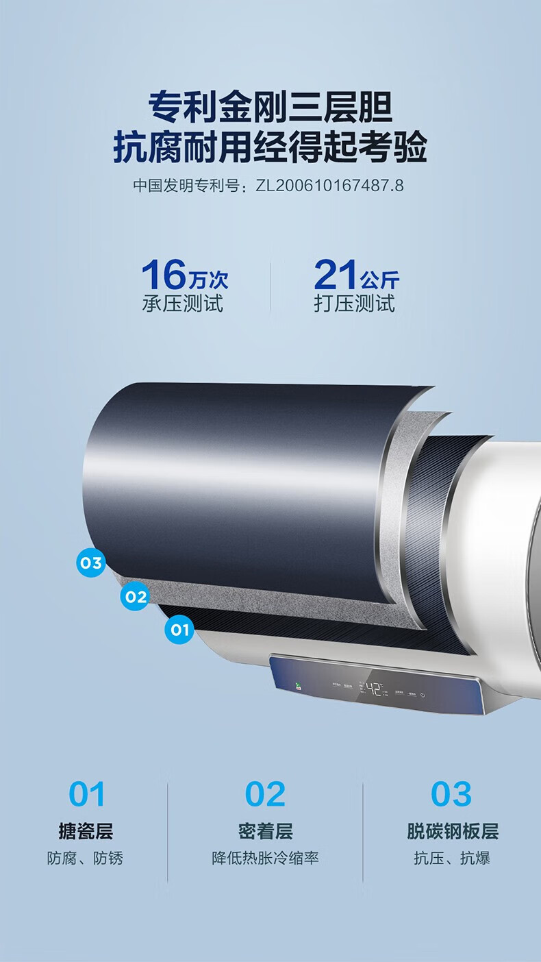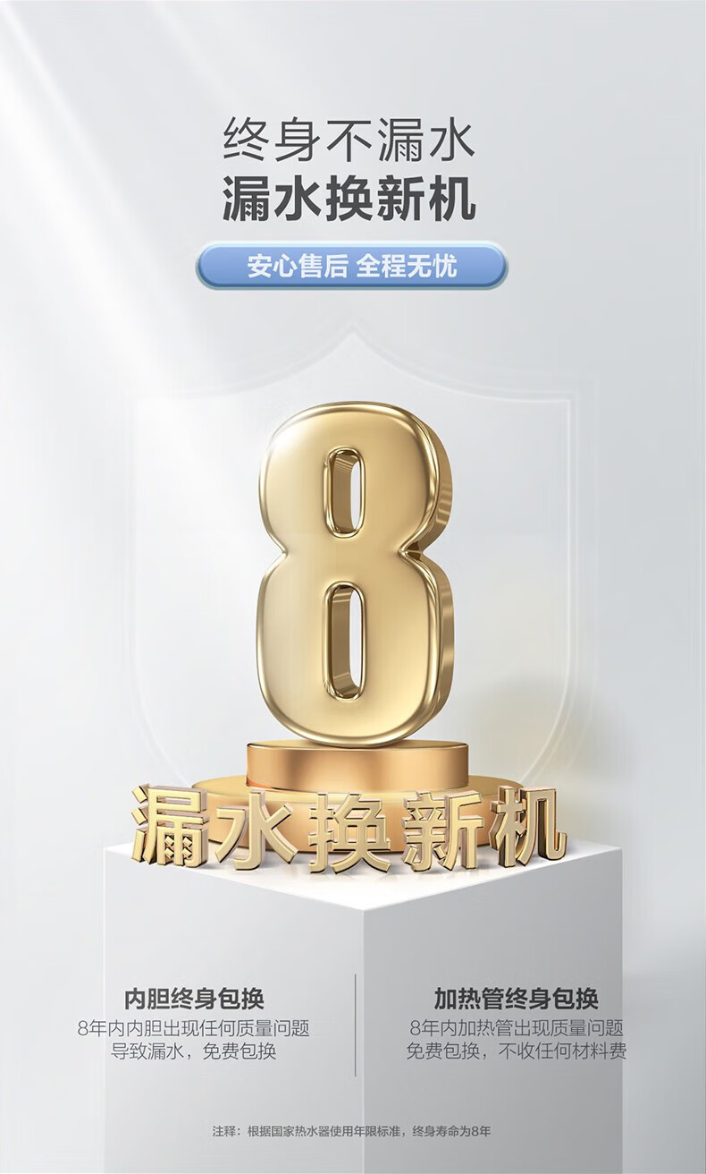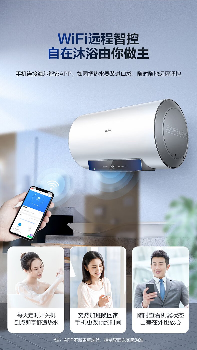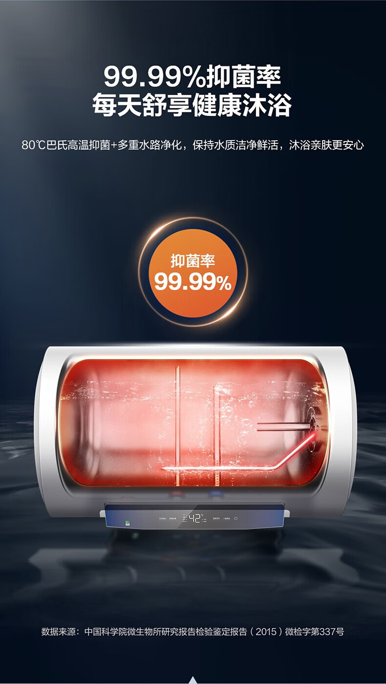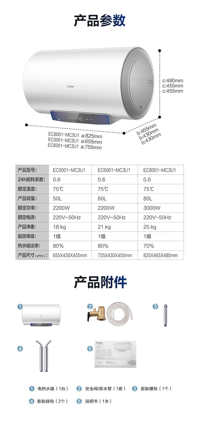 海尔(Haier)80升家用储水式电热水器镁棒免更换即热速热恒温一级能效节能省电保温智能洗澡MC3系列 80L 3000W EC8001-MC3U1