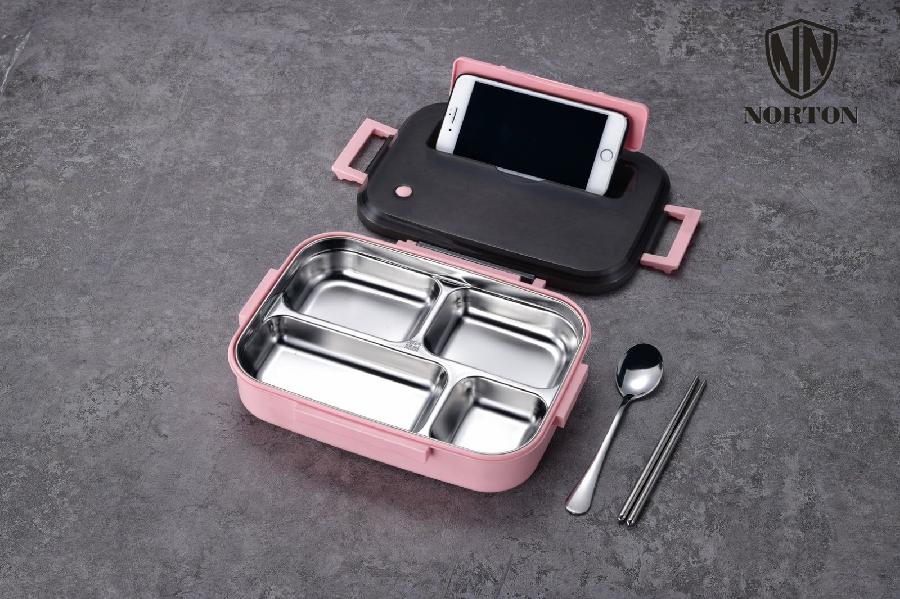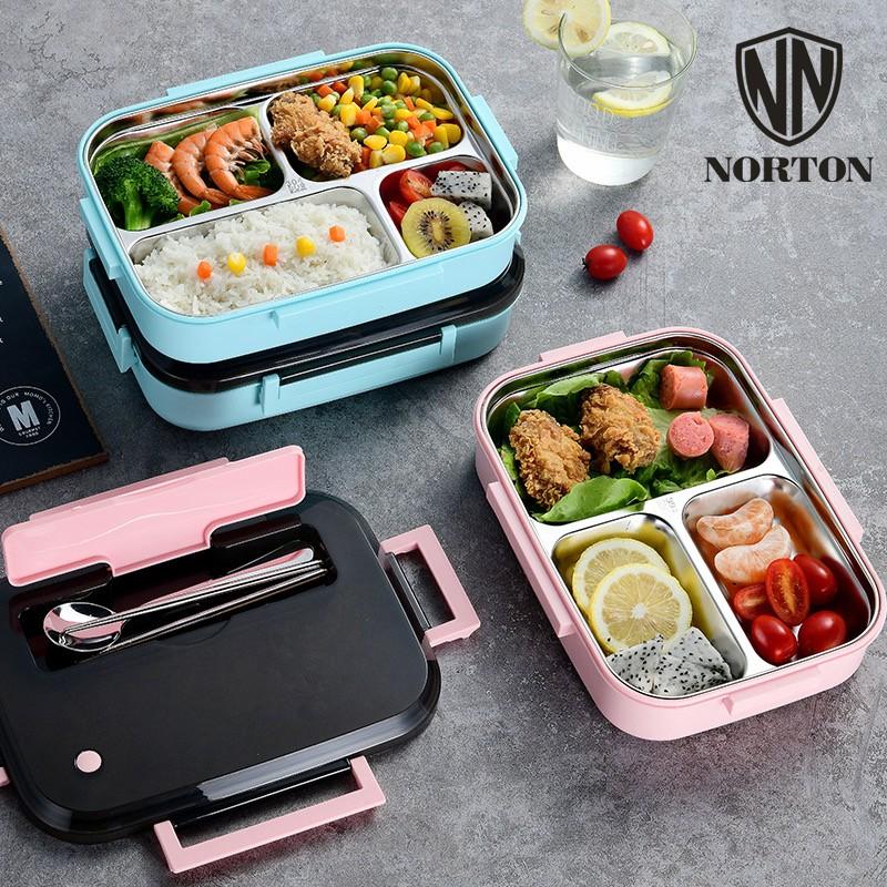 【会员价:139元】广电优选 诺顿NORTON 斯德宝便当盒1500ML分格餐盒饭盒保温加热304不锈钢内置不锈钢餐具加热保温饭菜蓝色(5GSDB1500)