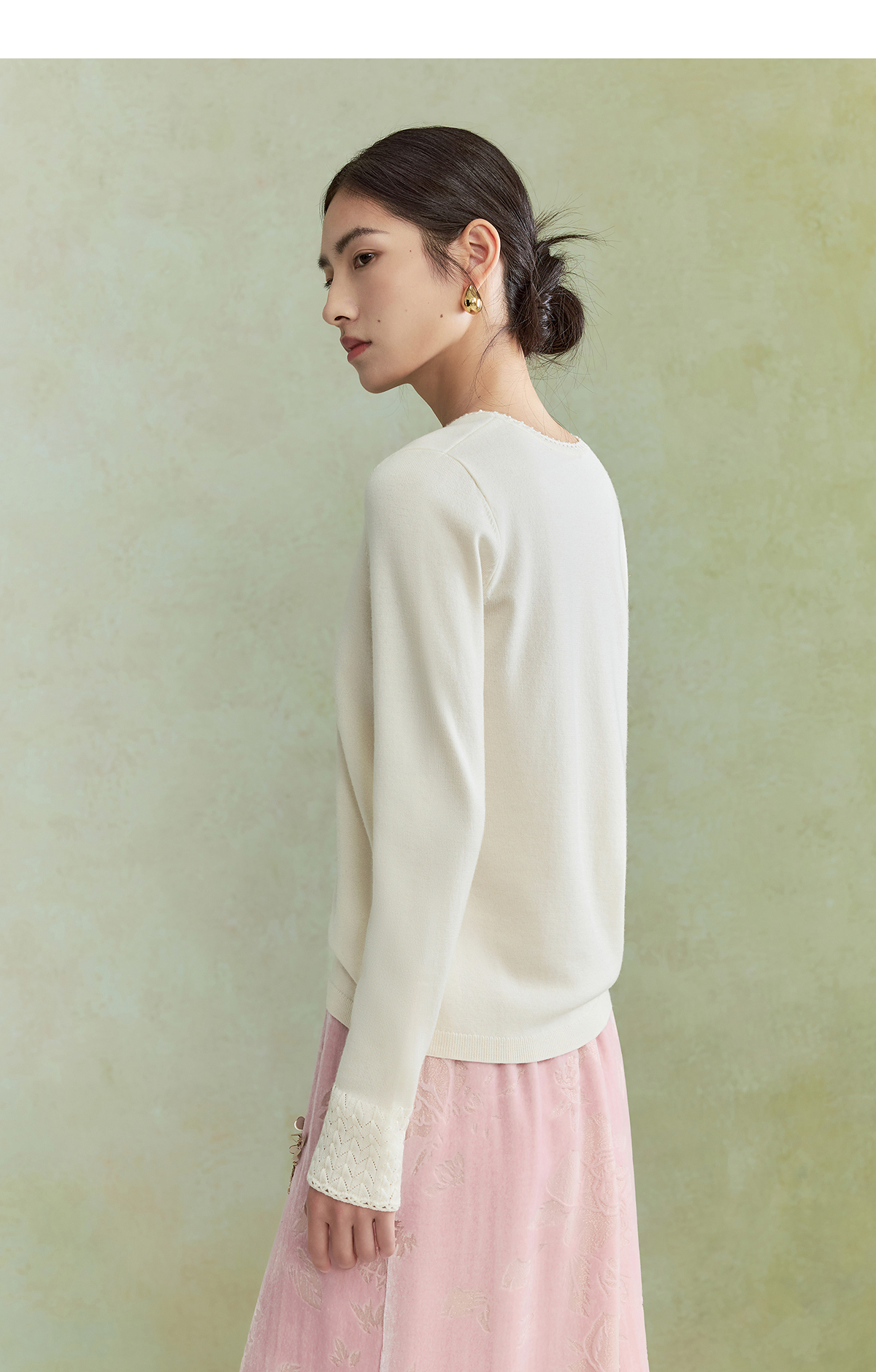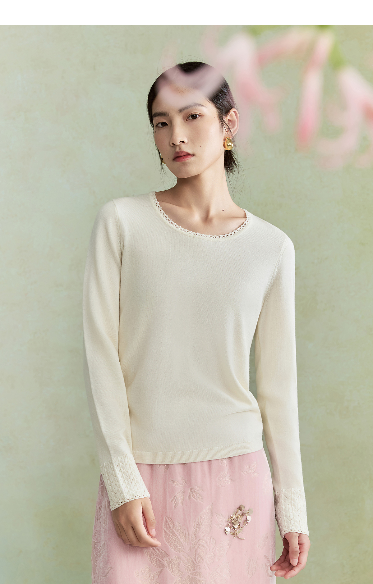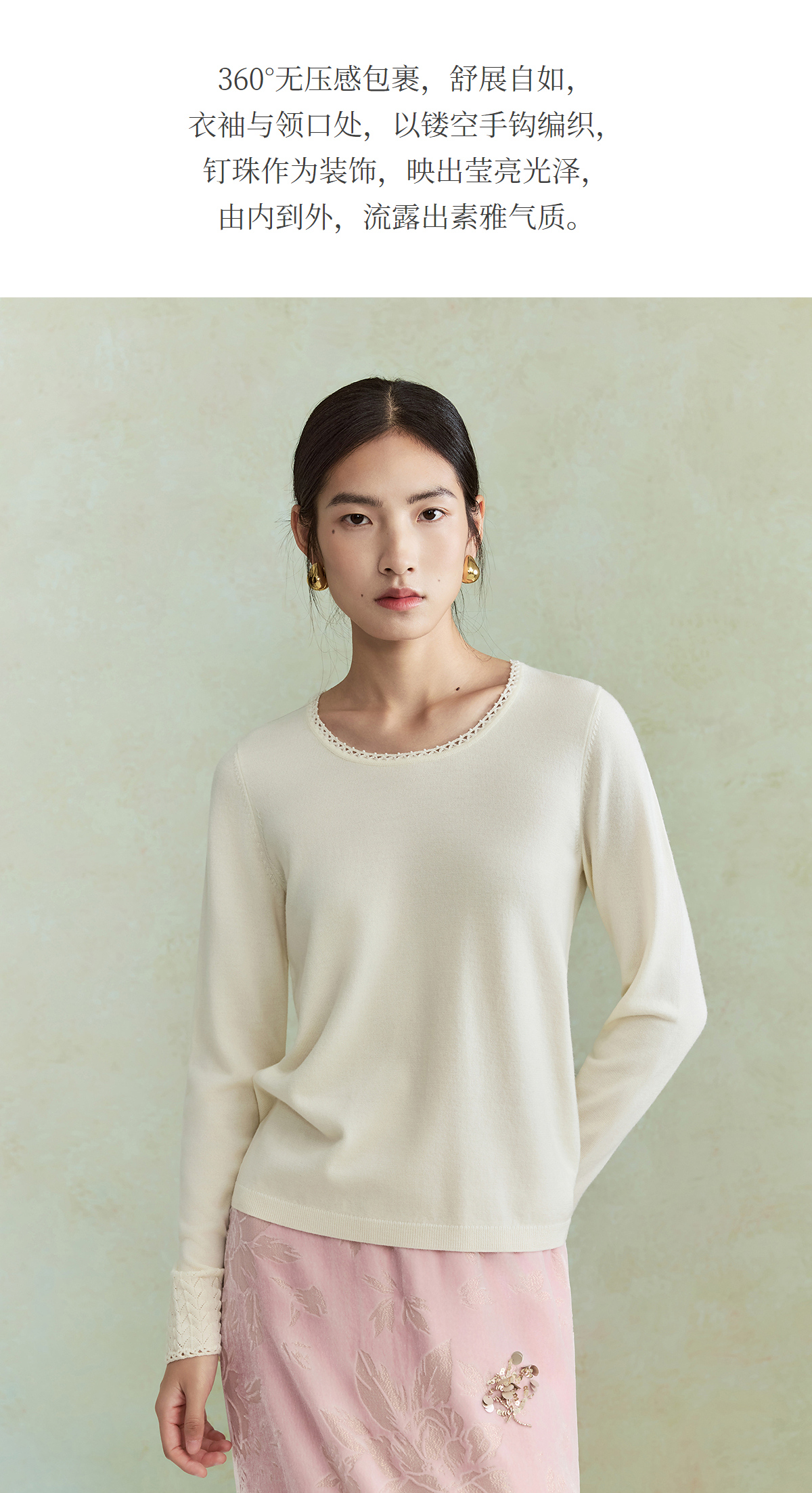 【林栖设计小店】毛织上衣钉珠镂空花边肌理优雅百搭2026早春新款针织衫女1961047