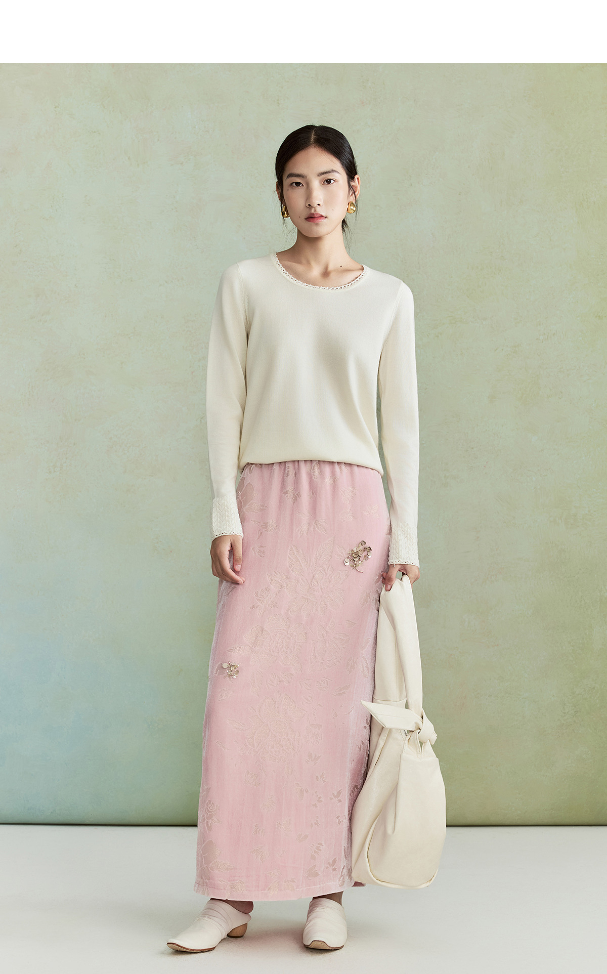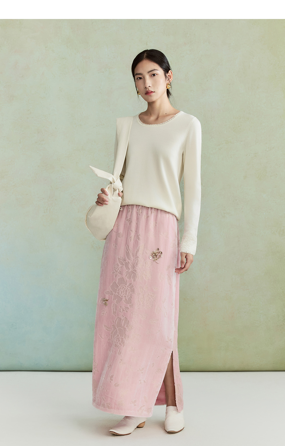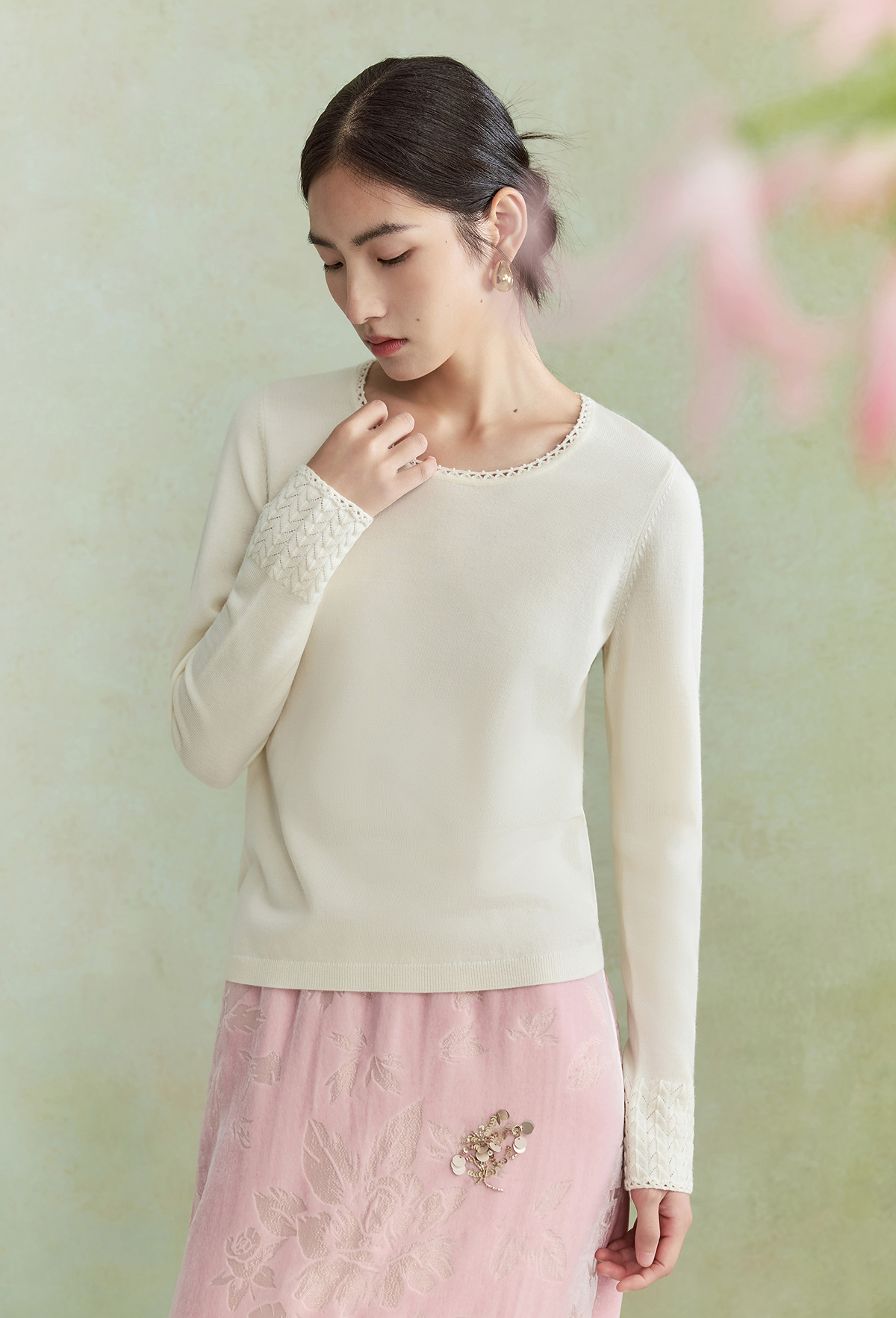 【林栖设计小店】毛织上衣钉珠镂空花边肌理优雅百搭2026早春新款针织衫女1961047