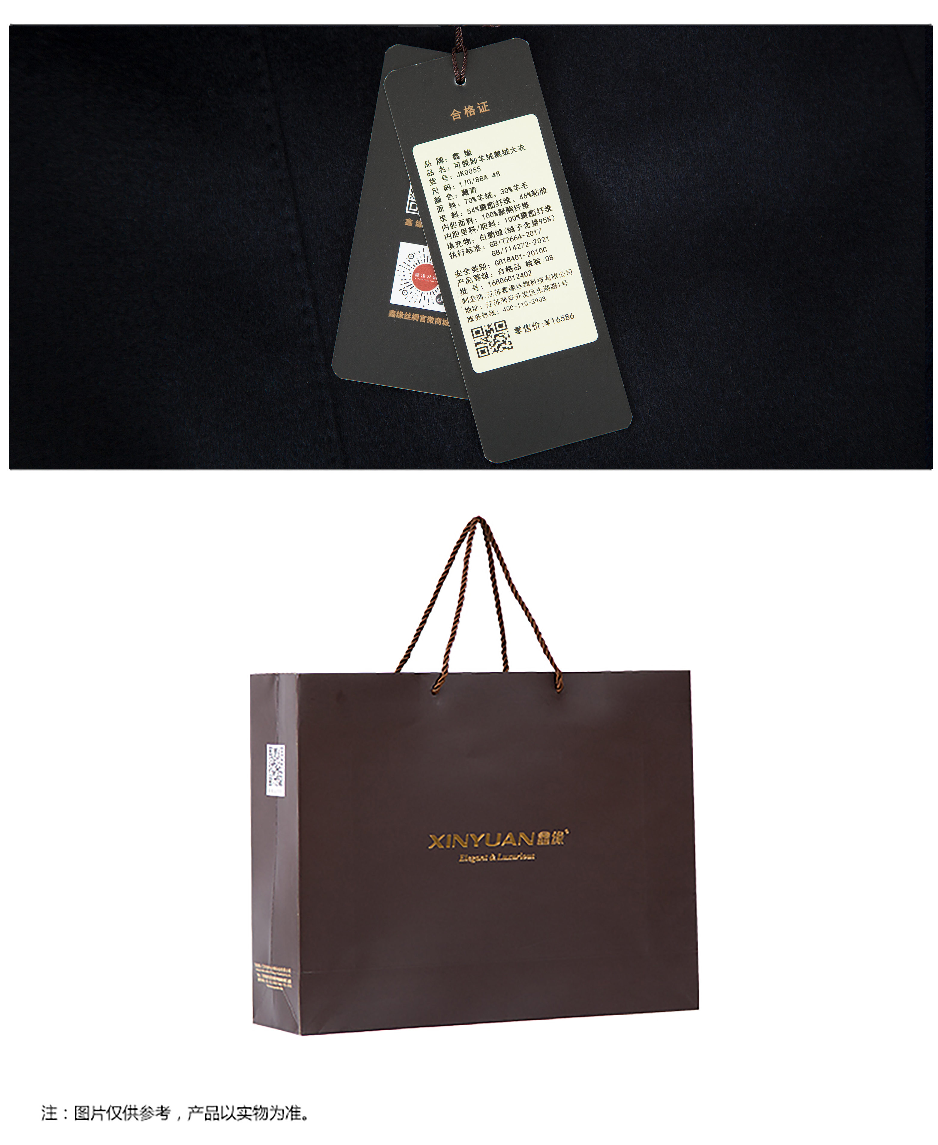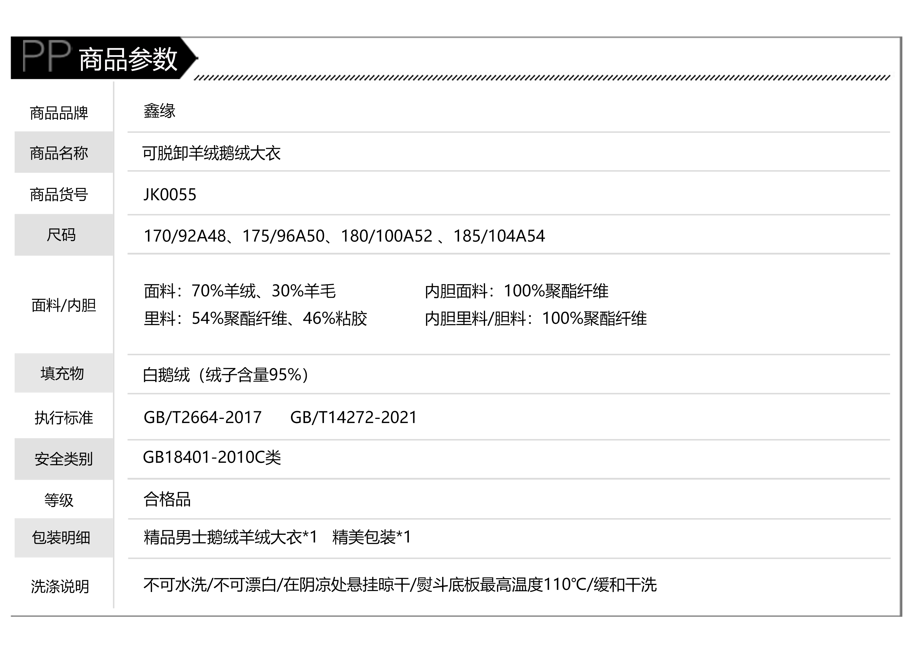 鑫缘 可脱卸羊绒鹅绒大衣 JK0055