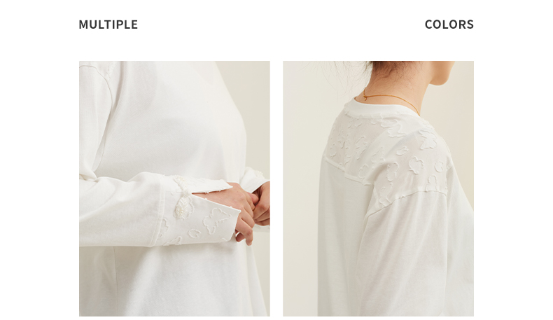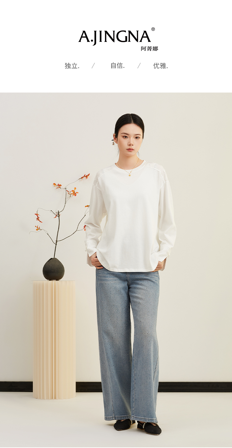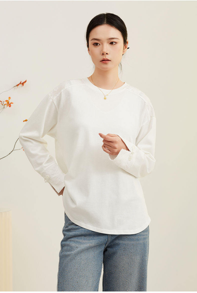 【宽松落肩款】阿菁娜春季新款设计感白T宽松落肩款蕾丝袖口诠释刚柔并济可内搭可单穿F31C301008